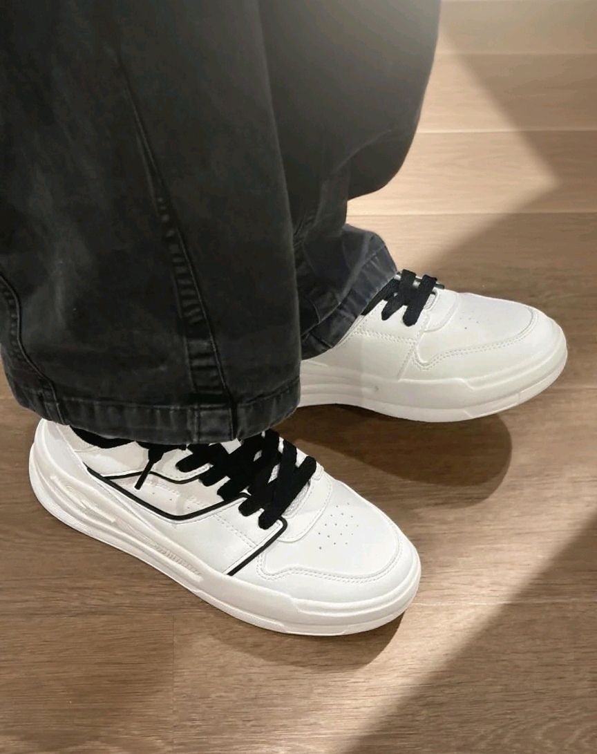上脚第一周真实反馈: ▪️鞋型比想象中修脚!白+黑极简配色超好搭衣服 ▪️皮革鞋面意外耐造,雨天穿也不怕浸水(实测!) ▪️厚底自带3cm隐形增高,但走路不笨重 ▪️重点夸鞋舌设计,完全不会磨脚踝 ⚠️注意: 新鞋前3天鞋底稍硬 建议穿厚袜子磨合 现在越穿越软弹了 上班/逛街都能穿 百元档里难得有质感的款!