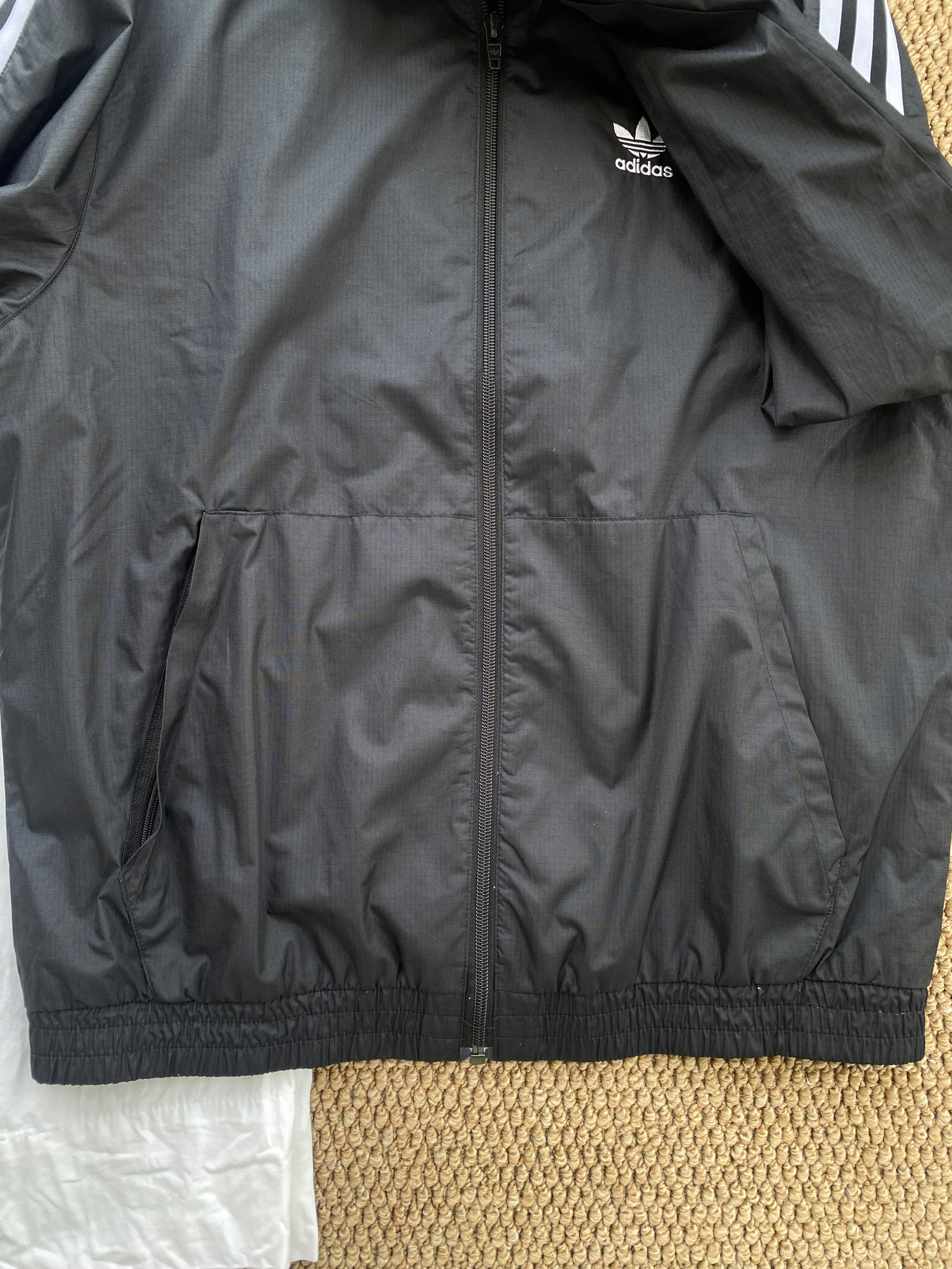 这件阿迪就是我说的买了两件的另外一件啦~这件是黑色的,logo也是做的印花设计,拉链顺滑,内里有网兜,适合春秋穿,日常很好搭配,我平时都是搭配一些牛仔裤/裙子/白色裤子,轻轻松松出门~