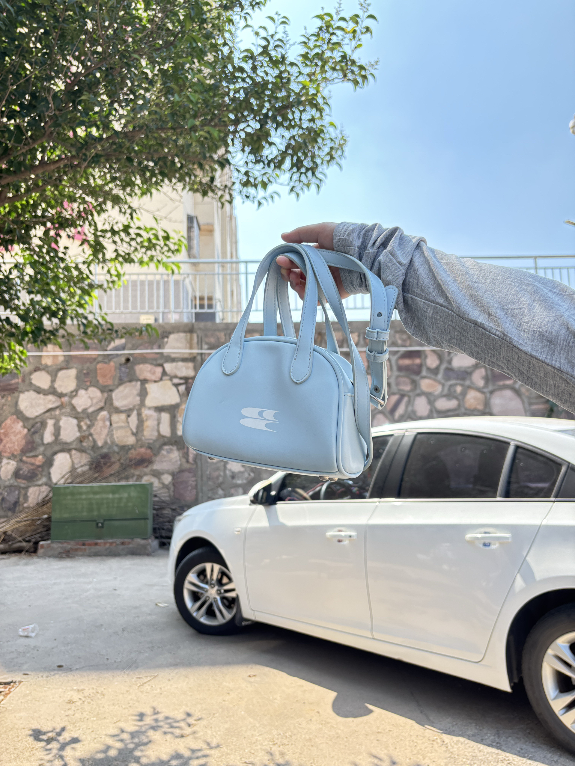 奶呼呼的蓝色我尊嘟是爱不释手 好喜欢这个颜色啊🫶 包包是皮面的脏了也很好打理 湿纸巾一擦就可以了🆗 它小小的不过还挺能装的 里面还有内兜这一点我很喜欢😌 什么都可以搭配很实用性价比还是不错的