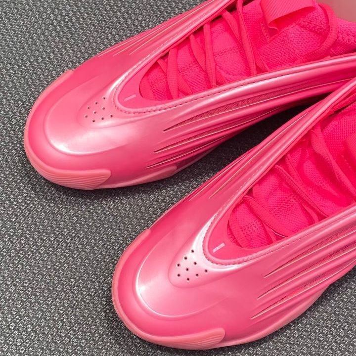 颜值很高!全掌LightBoost中底, 配合Y型抗扭片,后掌韧弹, 能提供良好缓震保护, 但前掌缓震回弹反馈相对较弱, 整体脚感均衡偏软,适合灵活型球员。 此外鞋身材料强度高,動紧鞋带后, 前中后國定紧致,后跟不掉跟。 鞋脚一体性较好,能给脚部提供稳定支撑与包裹。