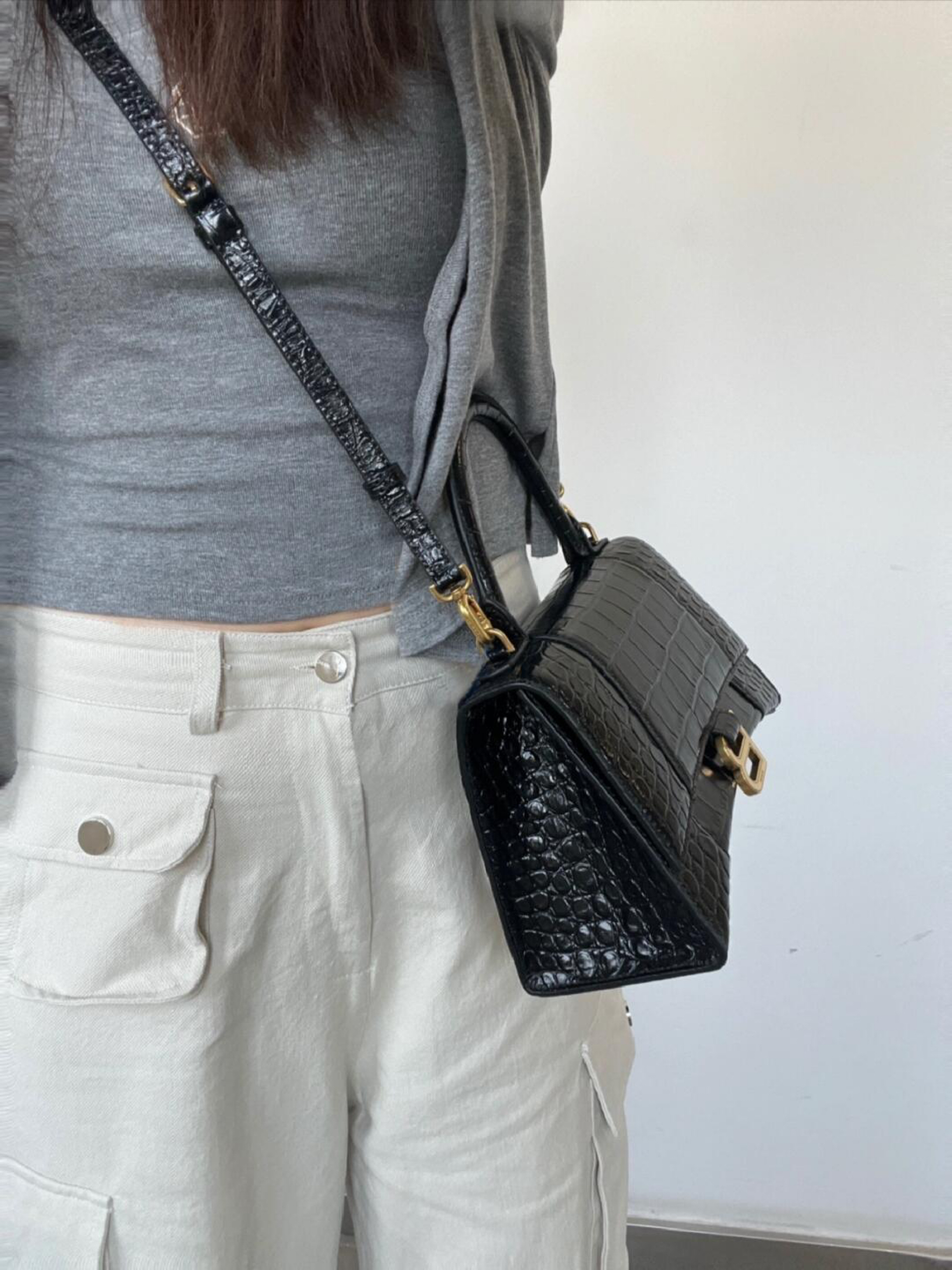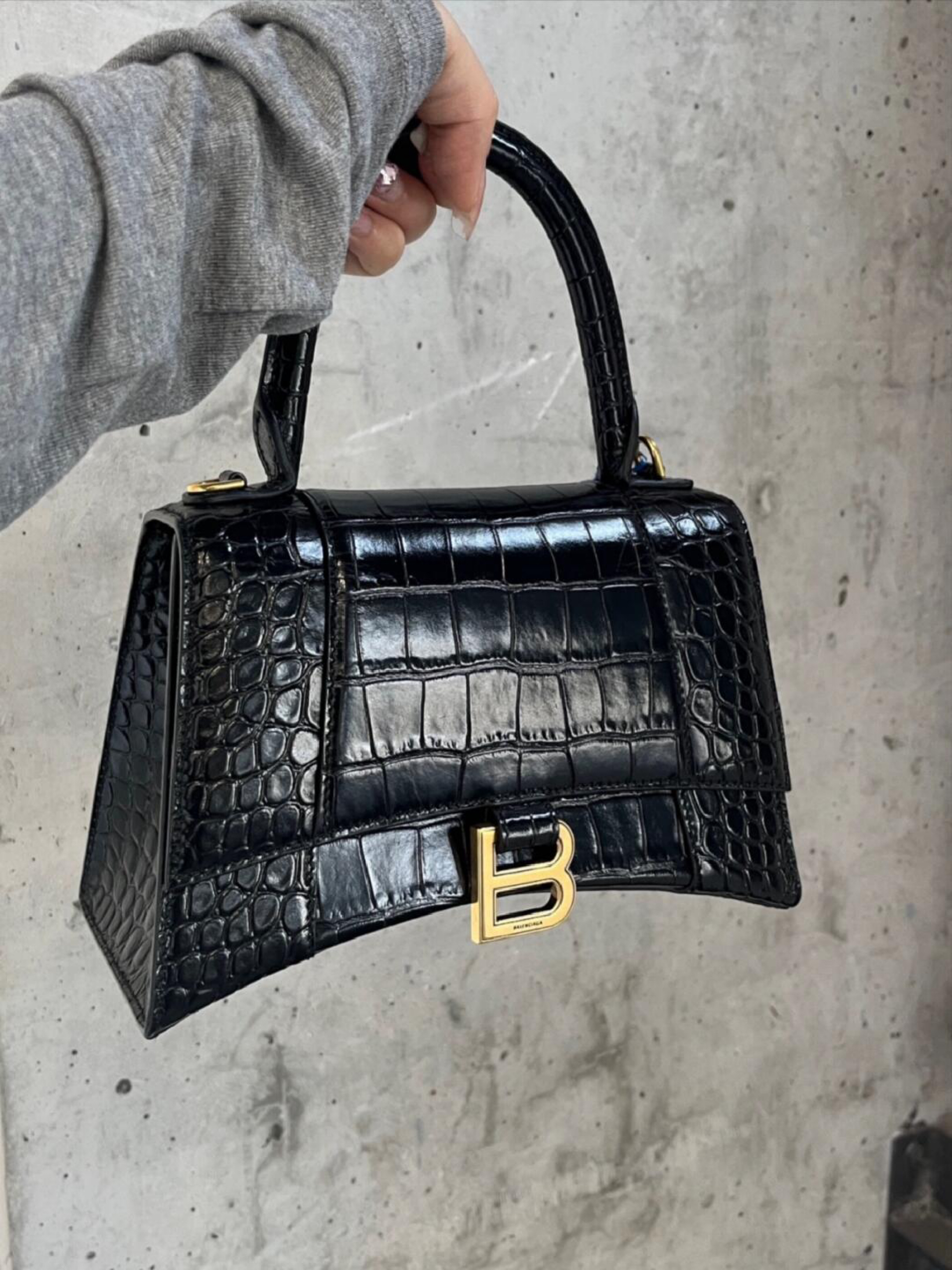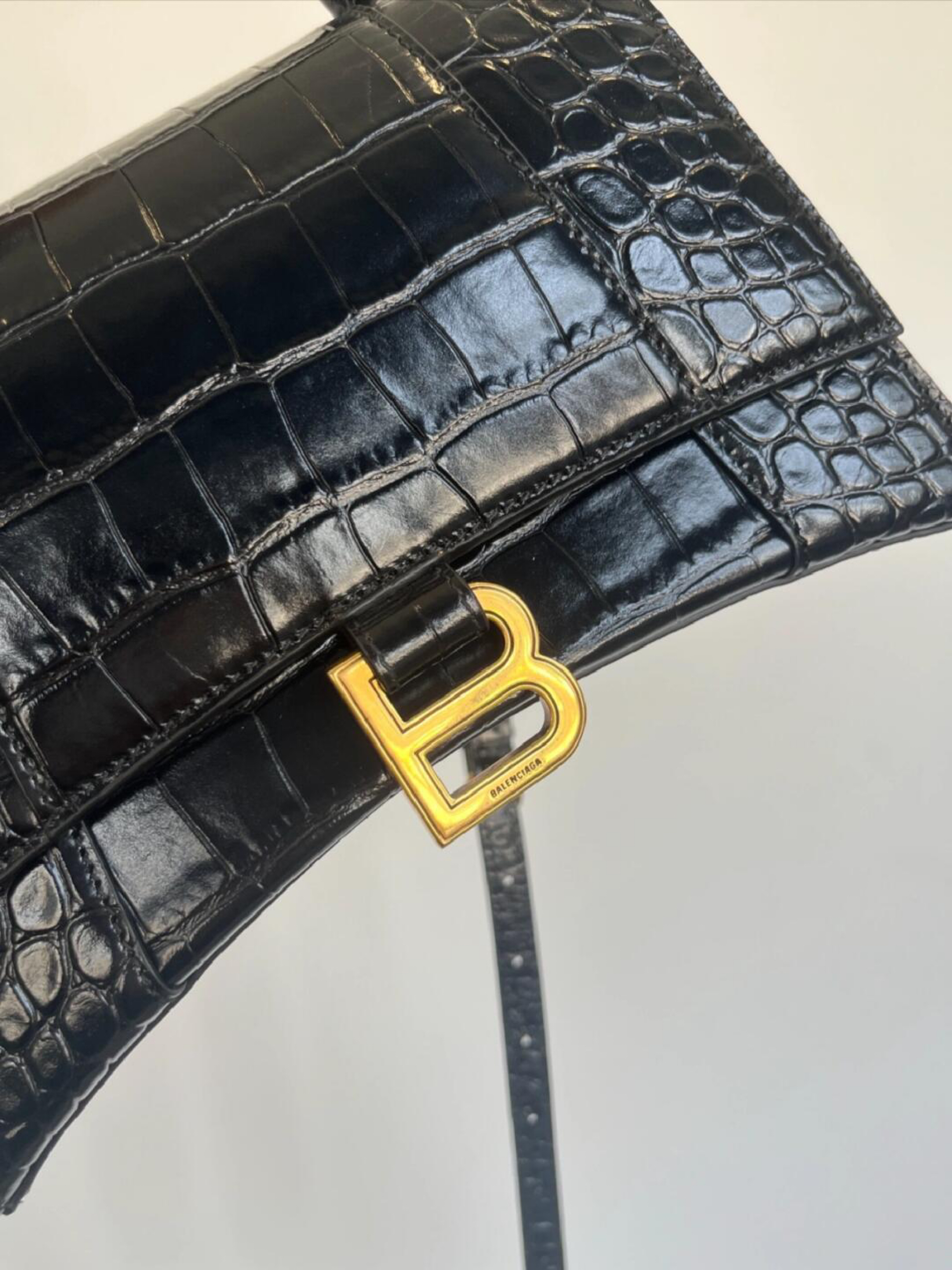 本篇笔记关联了Balenciaga/巴黎世家 Hourglass 超小号 金扣鳄鱼纹牛皮革银扣沙漏包斜挎手提包单肩包 黑色 592833-1LRGM-1000等商品,为用户提供真实的使用体验和购买参考。