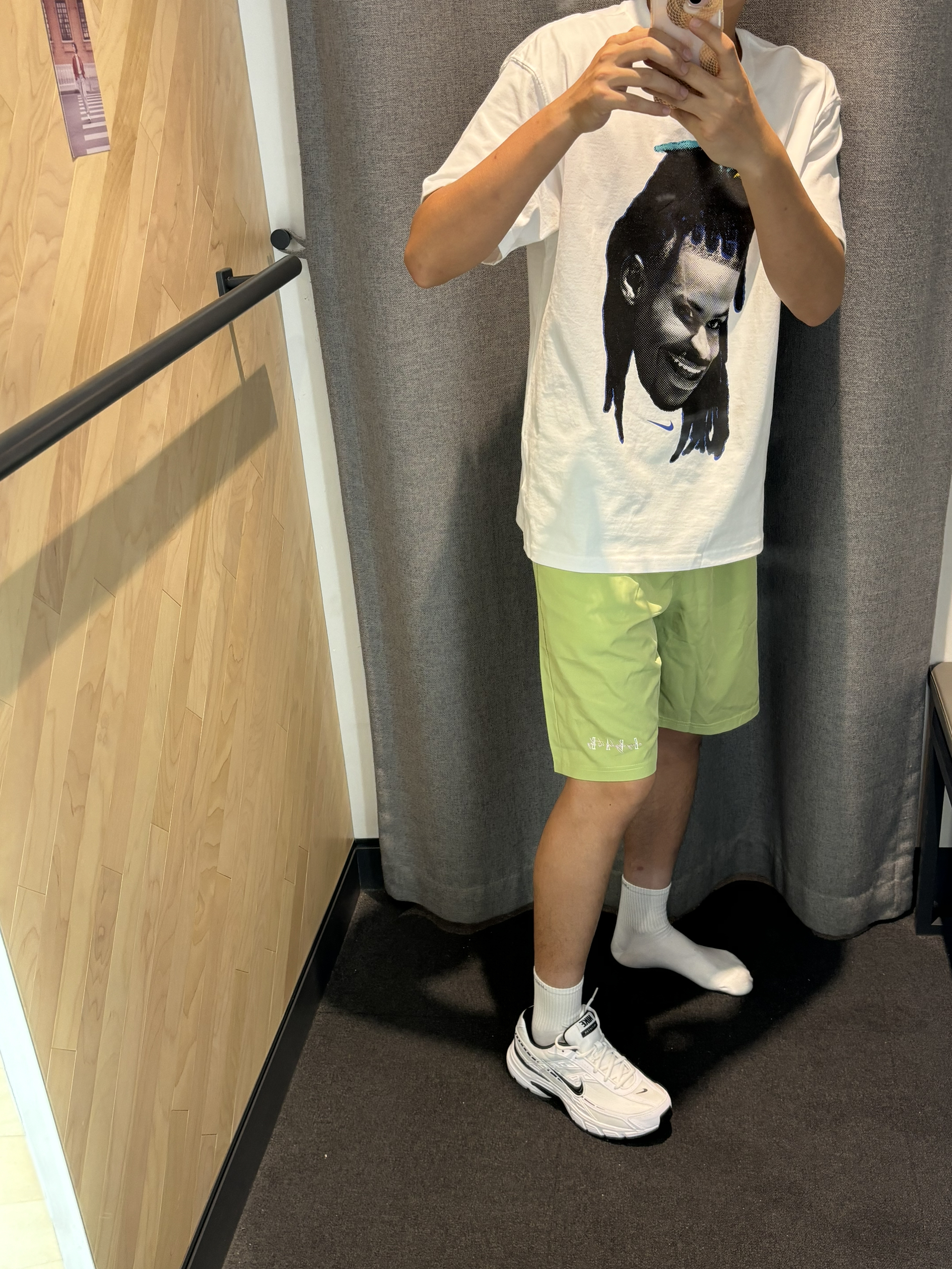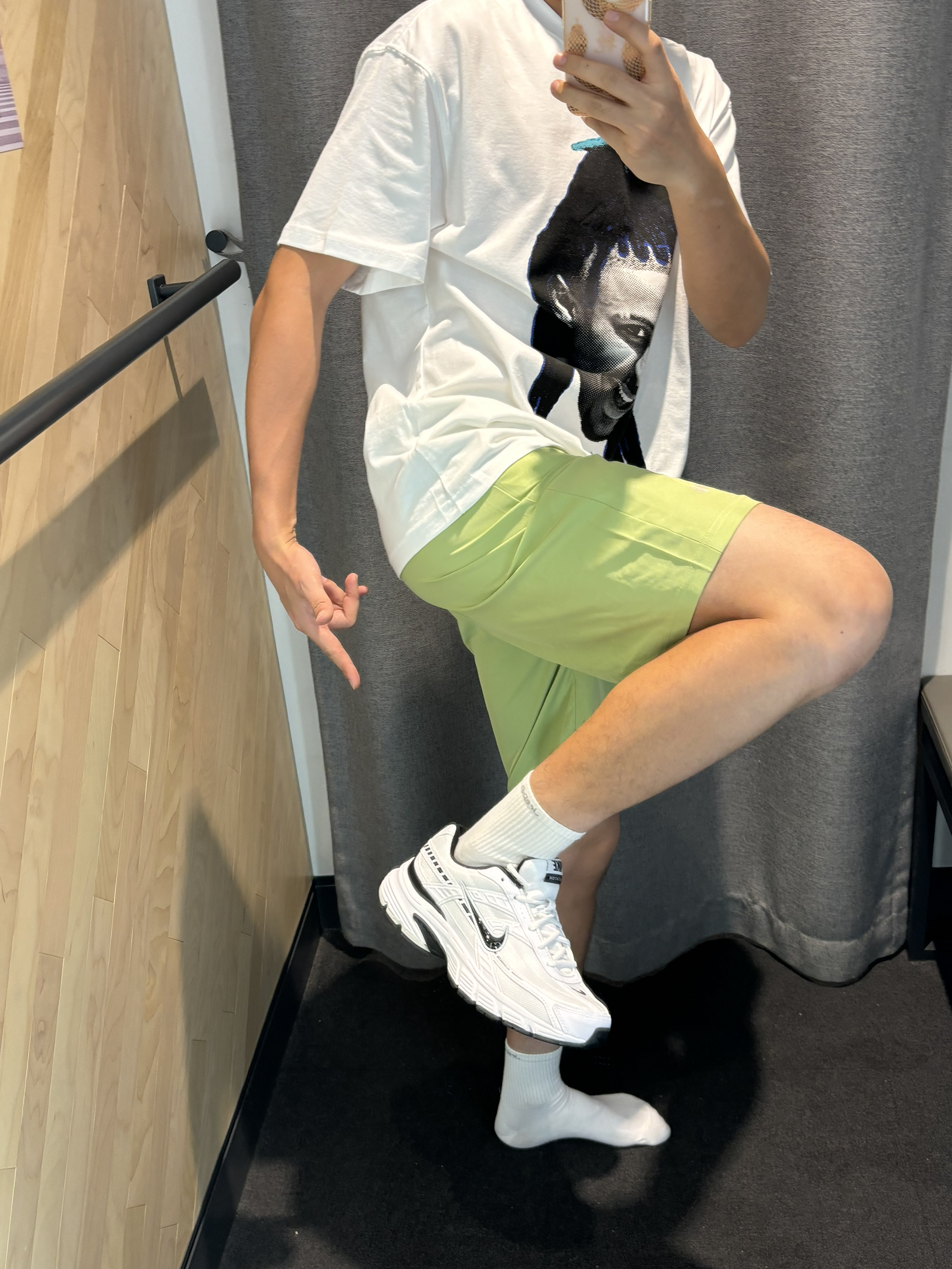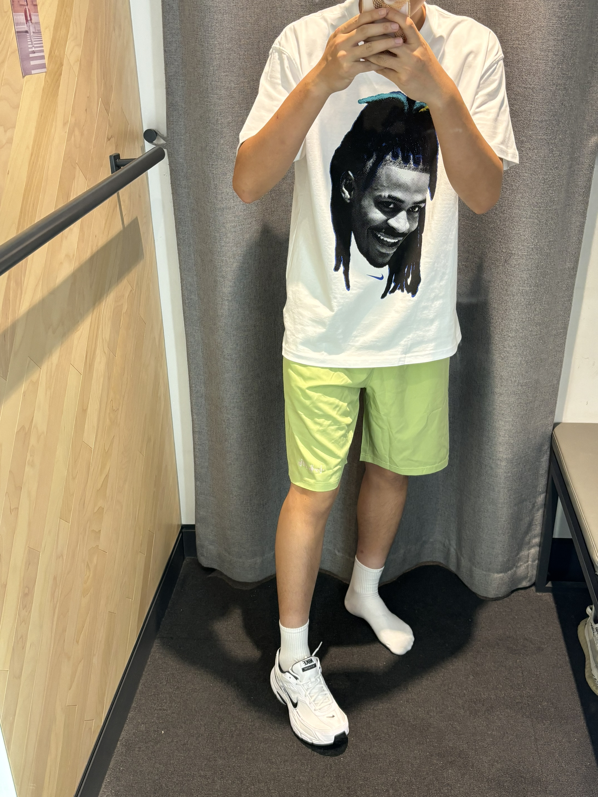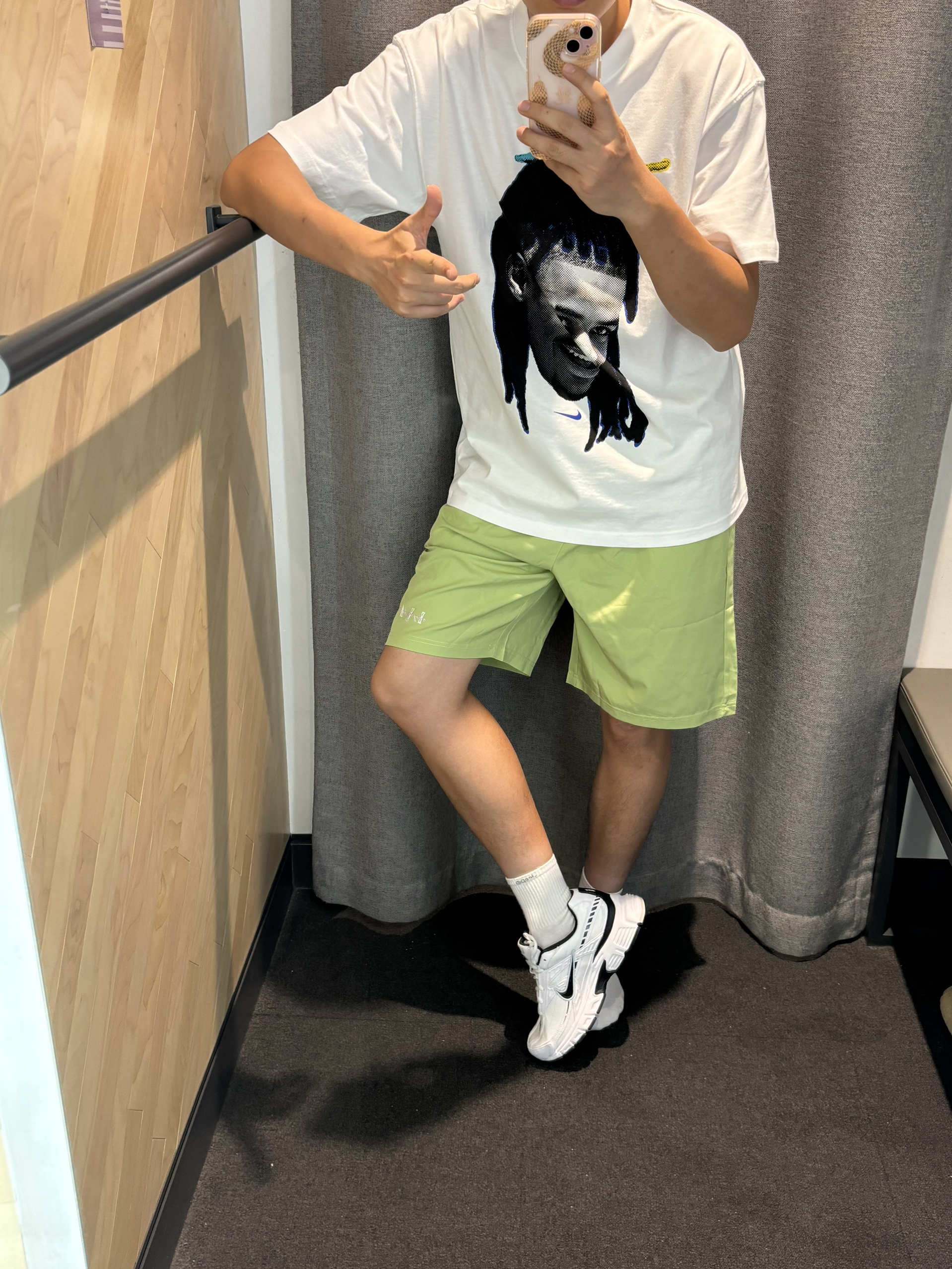 #get海边清爽穿搭 海边的度假穿搭你喜欢哪一套? 很清爽的感觉 白绿色搭配就很简单cleanfit 出门旅游就是海边就要这样穿 👔莫兰特宽松短袖 👖绿色短裤 👟黑白色nike通勤跑鞋