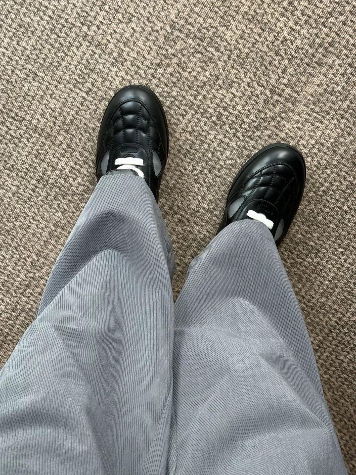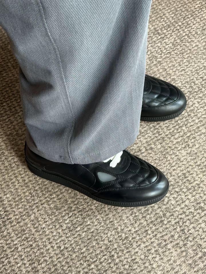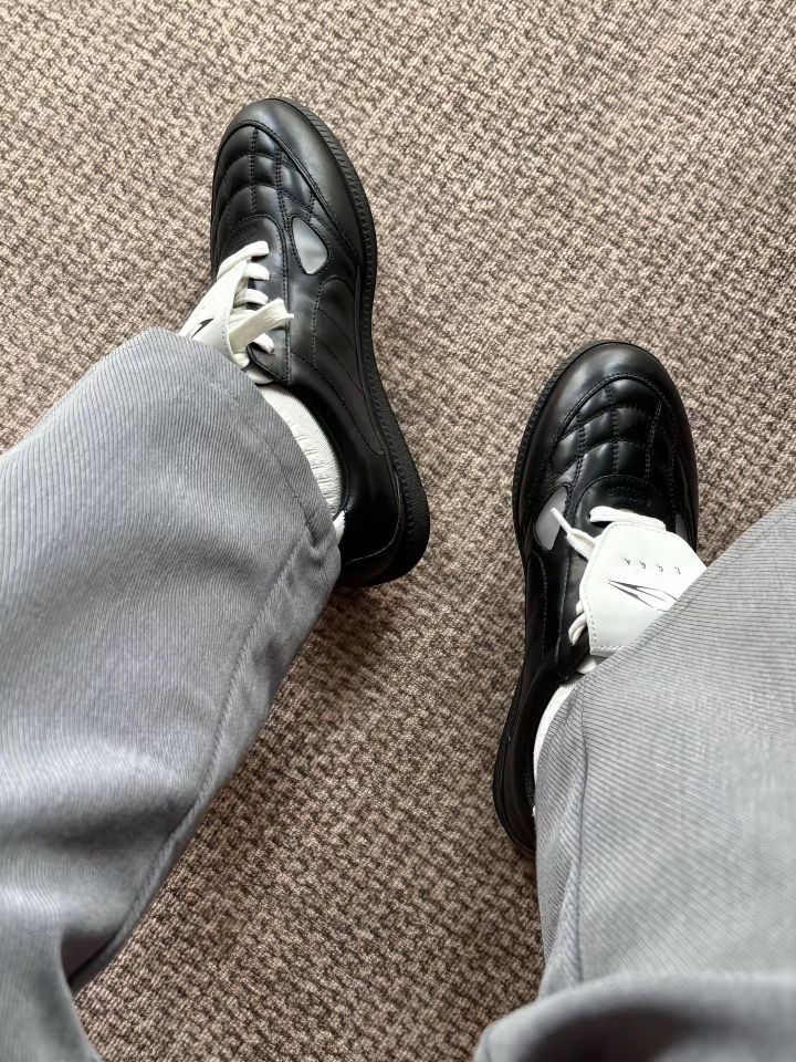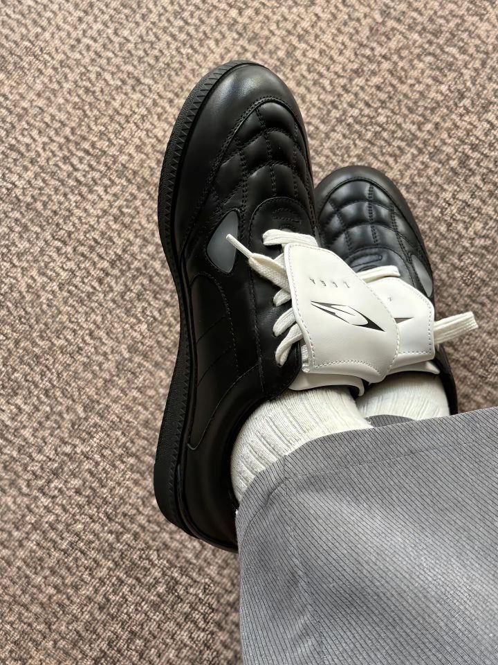 最近发现了一双网格德训鞋,拿到手以后发现不论是颜值还是脚感都蛮好。鞋面是牛皮的材质,看着很有光泽感的同时,摸着也很软。鞋舌上还有可拆卸的翻盖设计,把足球鞋的元素也融入进来了,我很喜欢白色的这个翻盖,更加撞色一些。中底不硬,鞋面也不压脚背,穿着还蛮舒服的。鞋子本身配件挺多的,包装设计也很用心,挺不错的。