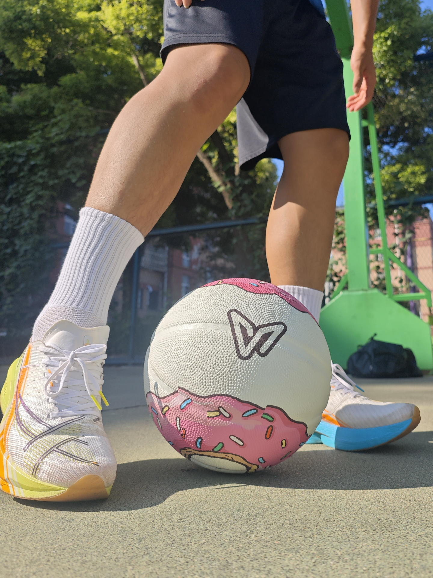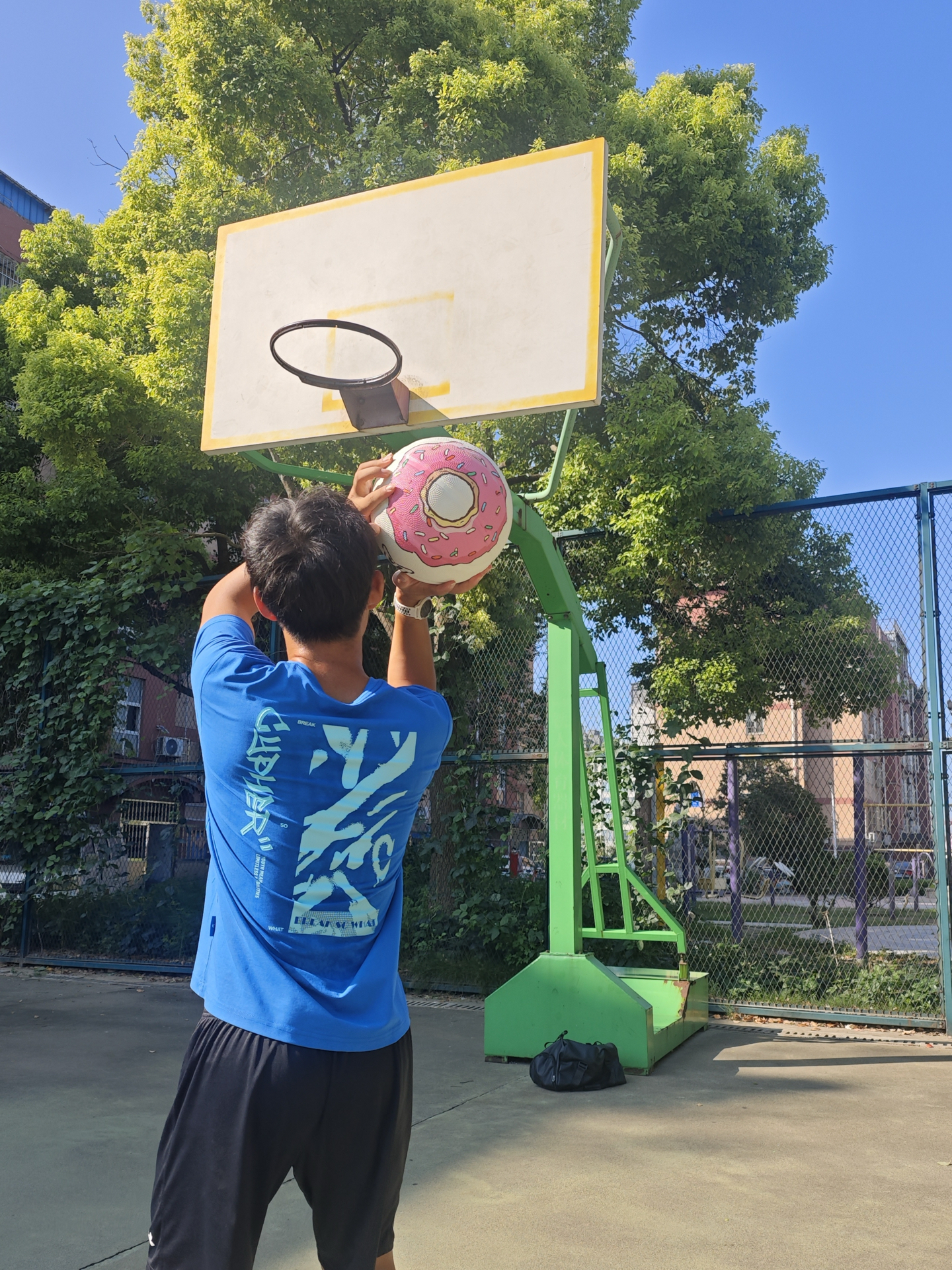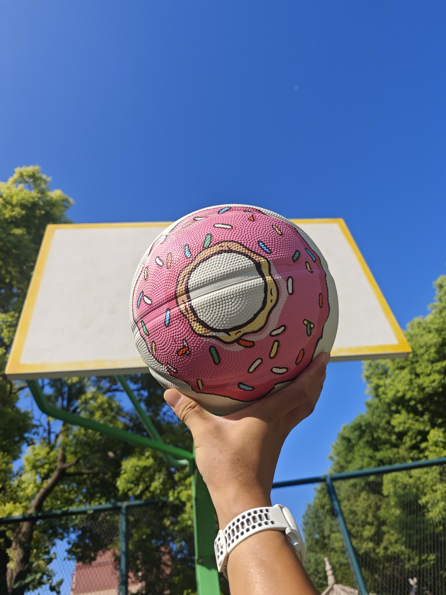 #维动 VEIDOORN 家的甜甜圈篮球,也太阔爱了吧!! 忍不住要大咬一口hhh 外面是橡胶的材质,运起球来还是比较稳的,不易脱手 标准的7号,对于比赛也可以用到 弹力也是十足的,轻轻拍打就可以弹的很高 手感也十分炸裂哈哈哈 做为礼物送朋友是很不错的选择 毕竟颜值高,性能也强!! @维动赴战赛事 #维动VEIDOORN #维动甜甜圈篮球 #维动甜甜圈 #维动篮球 #我要打篮球