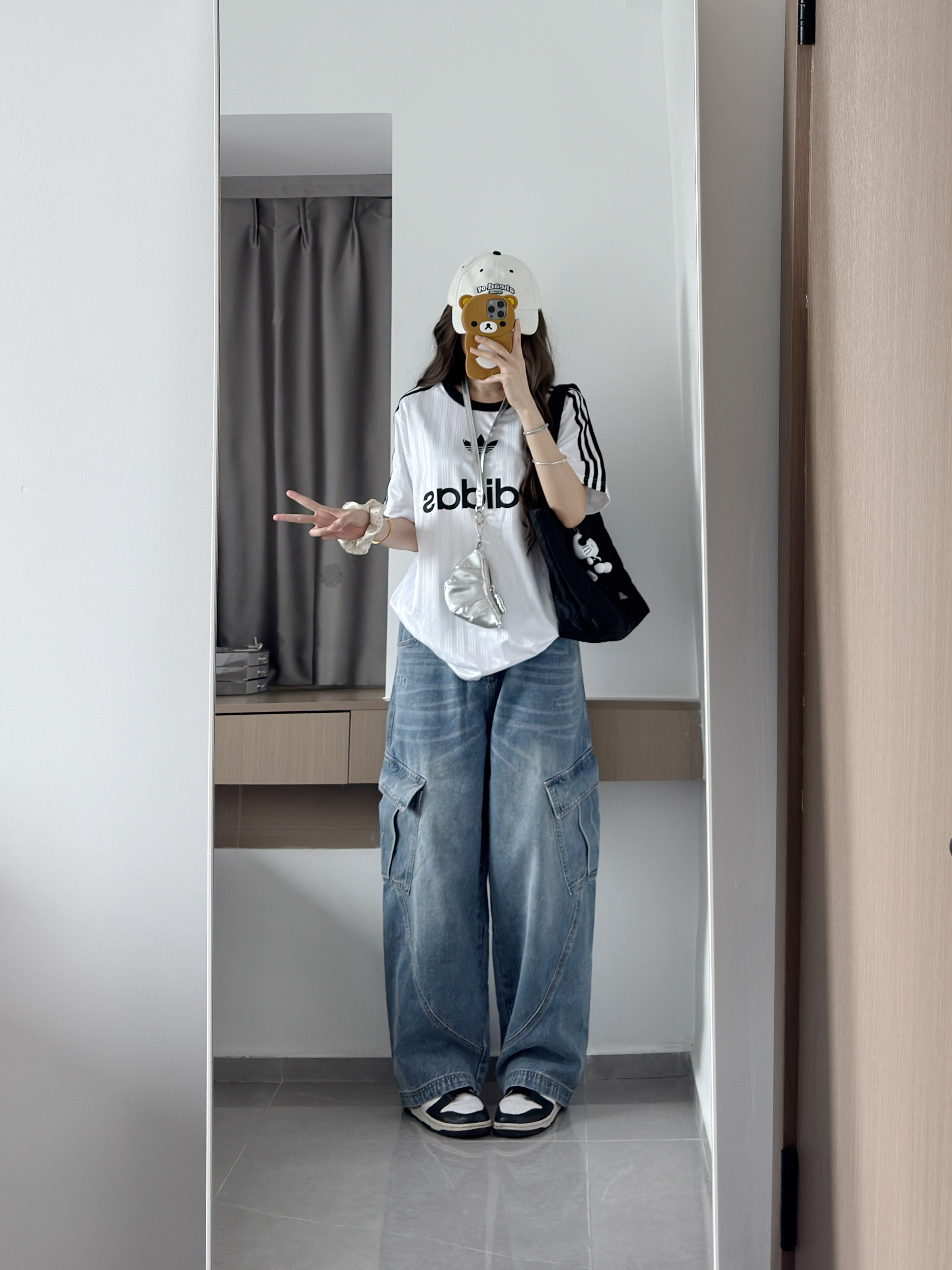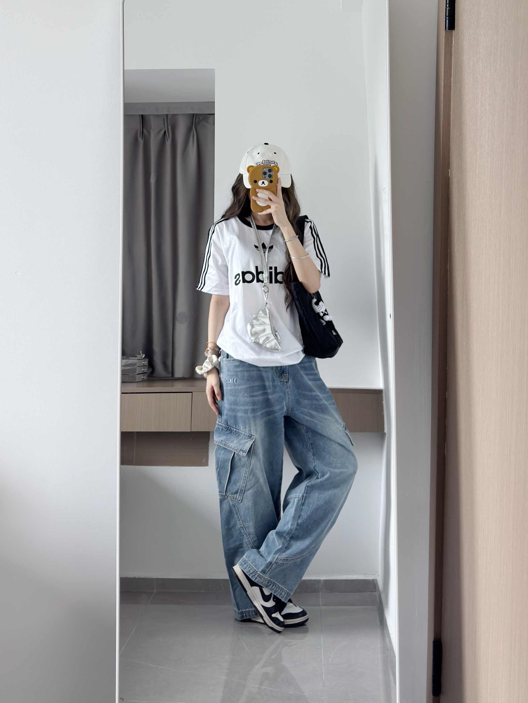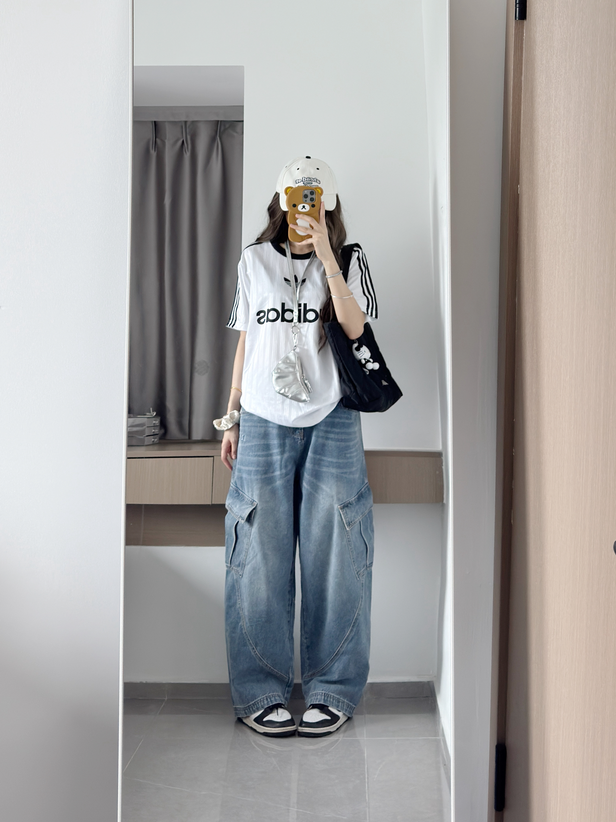 谁懂这件弯刀牛仔裤版型的含金量.. 真的嘎嘎显瘦显腿长!! 搭配T恤一套慵懒又好看!