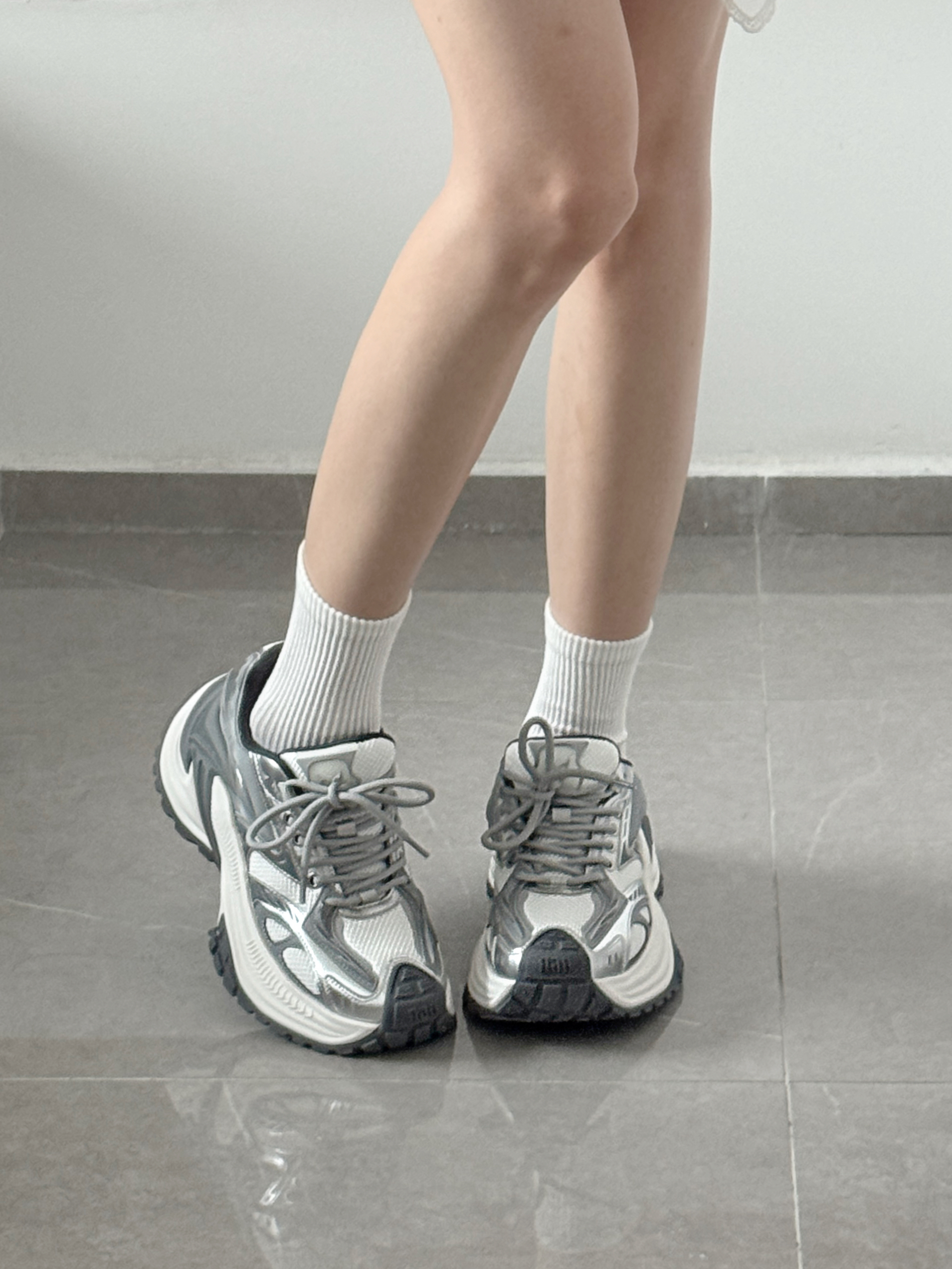 银灰色➕机甲鞋身也泰酷啦 6cm厚底嘎嘎显腿细腿长! 日常搭配裤子裙子都好看!✌️