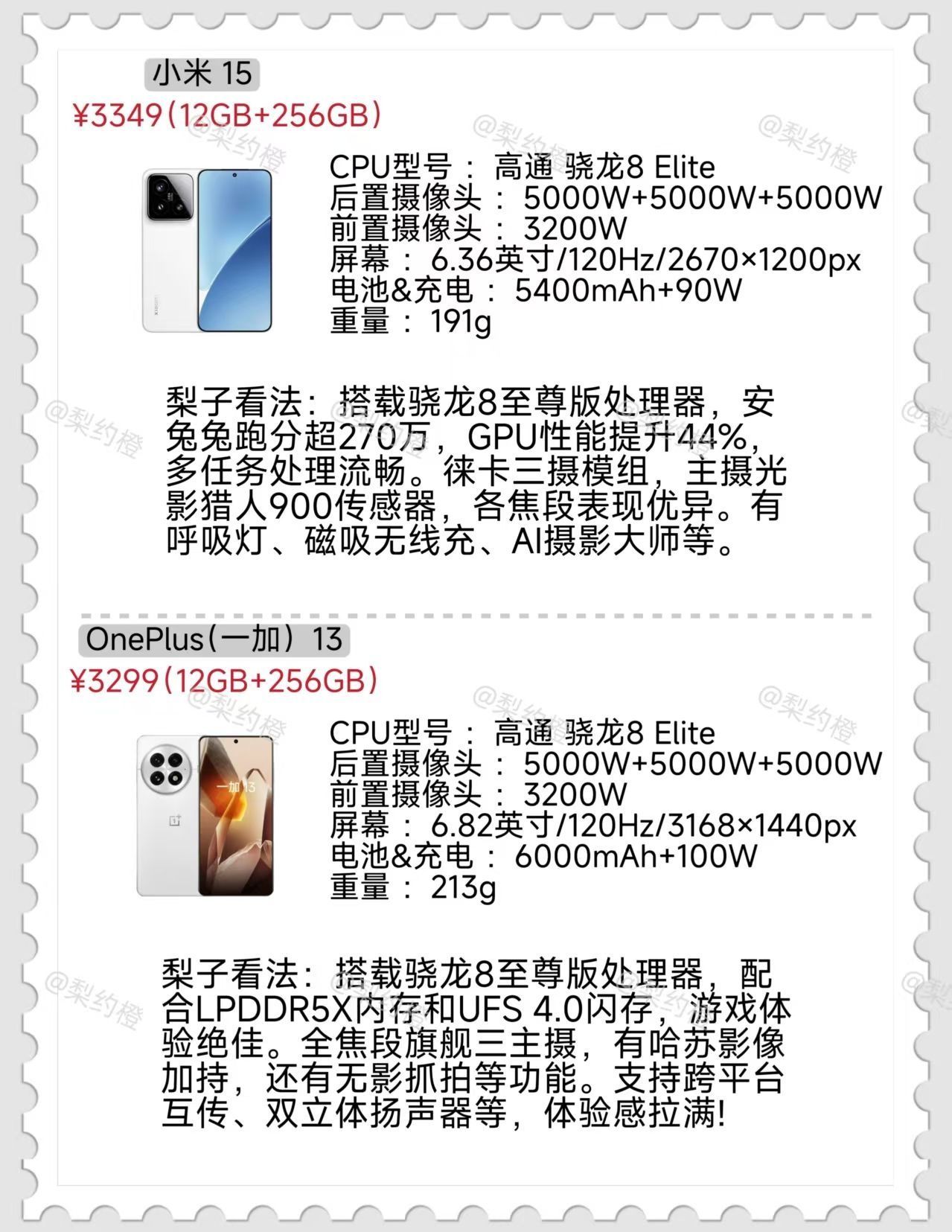 在3000 - 4000元的预算范围内挑选旗舰手机,这几款值得关注。 _ 小米15是小屏旗舰的代表。它搭载骁龙8至尊版芯片与澎湃OS,五年流畅运行有保障。拍照上,徕卡Summilux镜头和光影猎人900传感器,让成像效果出色。6.36英寸OLED小直屏手感绝佳,还支持超声波指纹识别与IP68防水,5400毫安时电池配合90W+50W双重闪充,续航充电两不误,适合小屏爱好者。 _ 一加13则是全能旗...