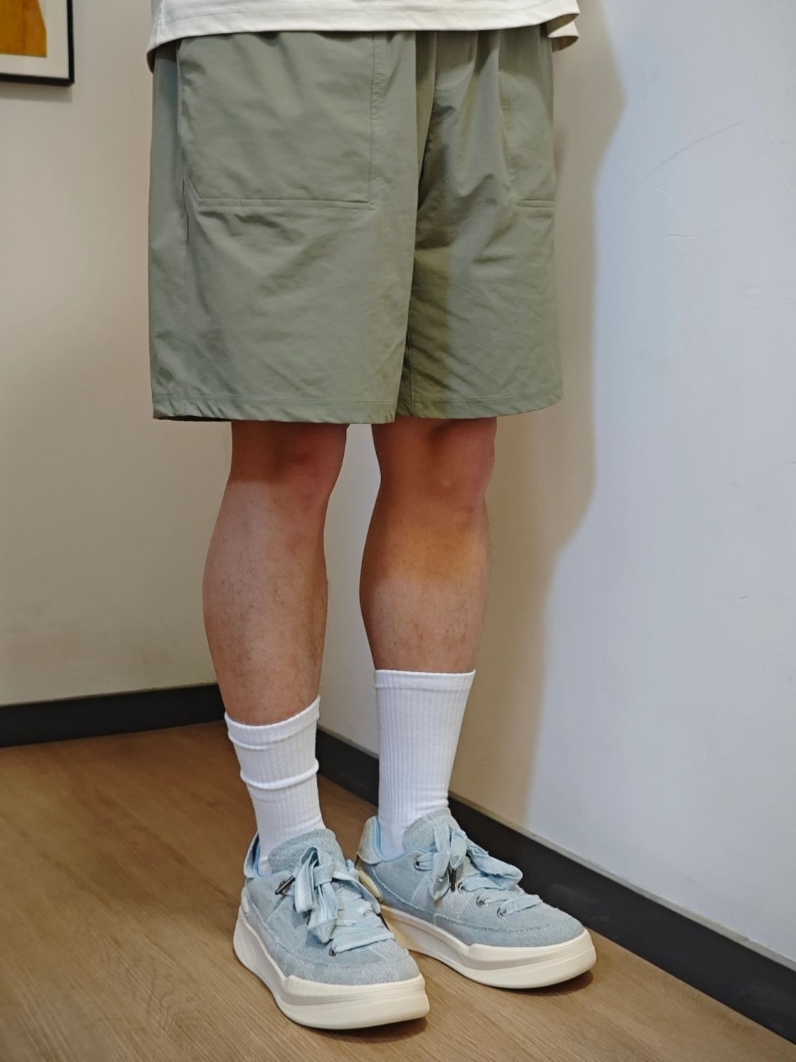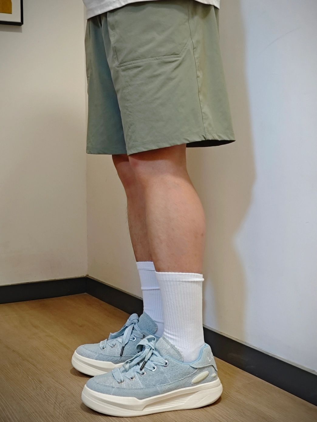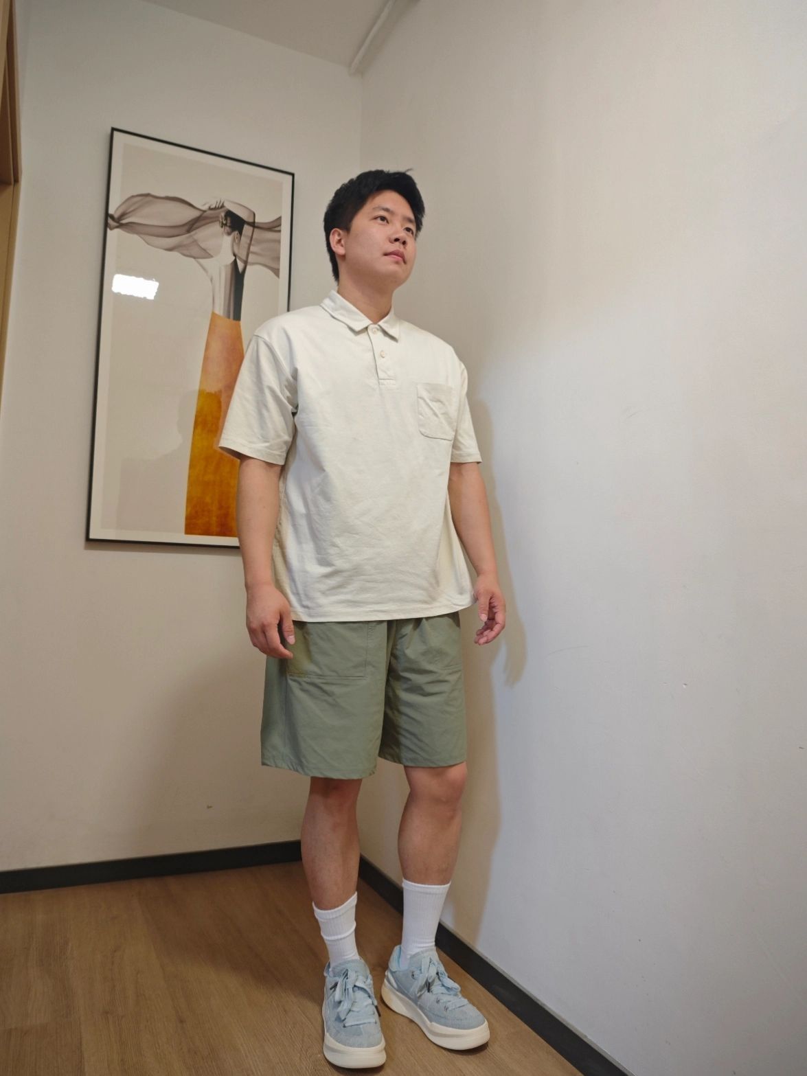 浅浅分享下日常穿搭✨ 简约白色POLO+浅绿短裤 清爽又随性🌿 搭配一双浅蓝厚底板鞋 瞬间把松弛感拉满,走路带风还显高! 日常通勤、逛街约会都很ok👌 拿捏夏日清爽感~