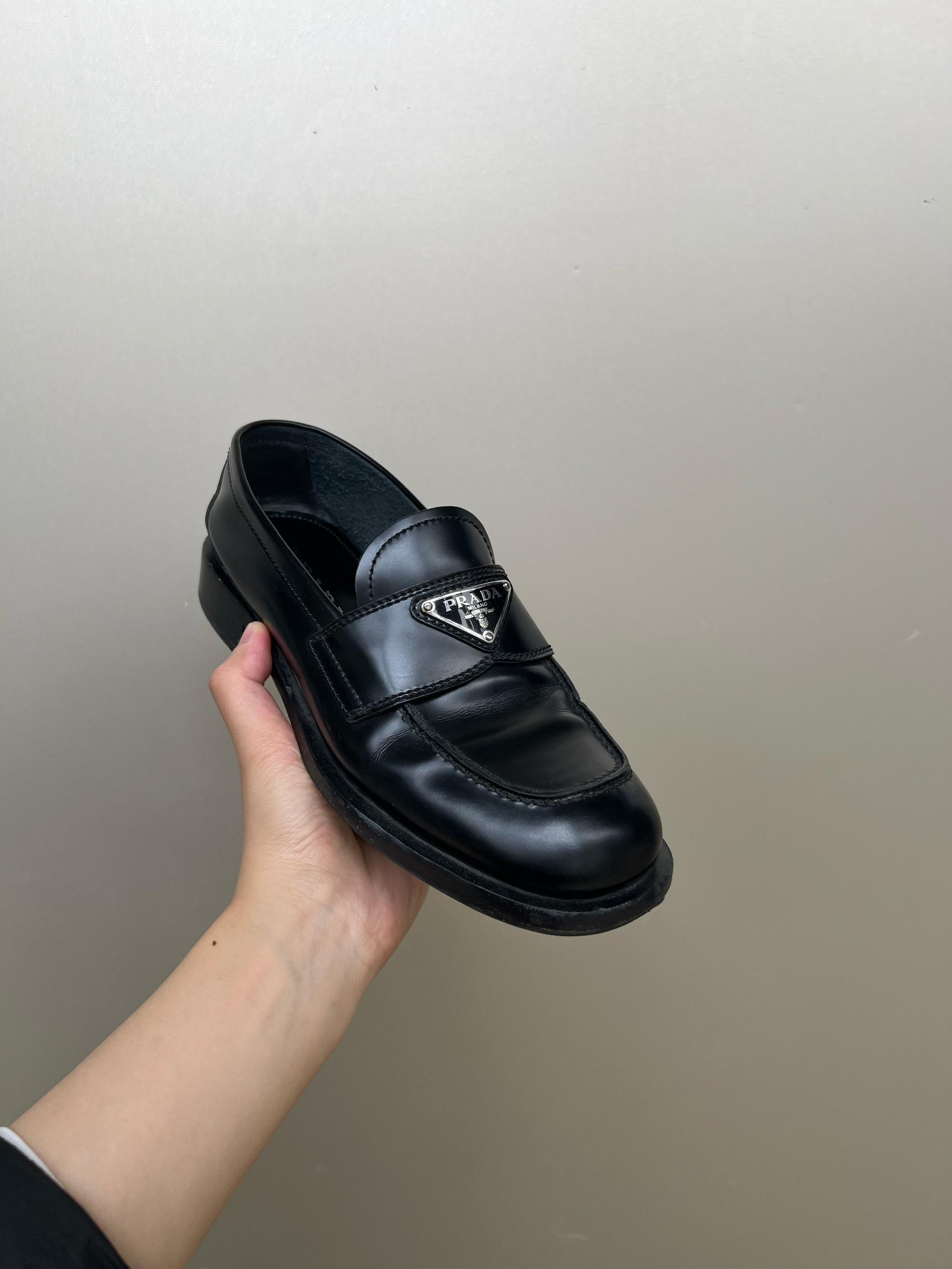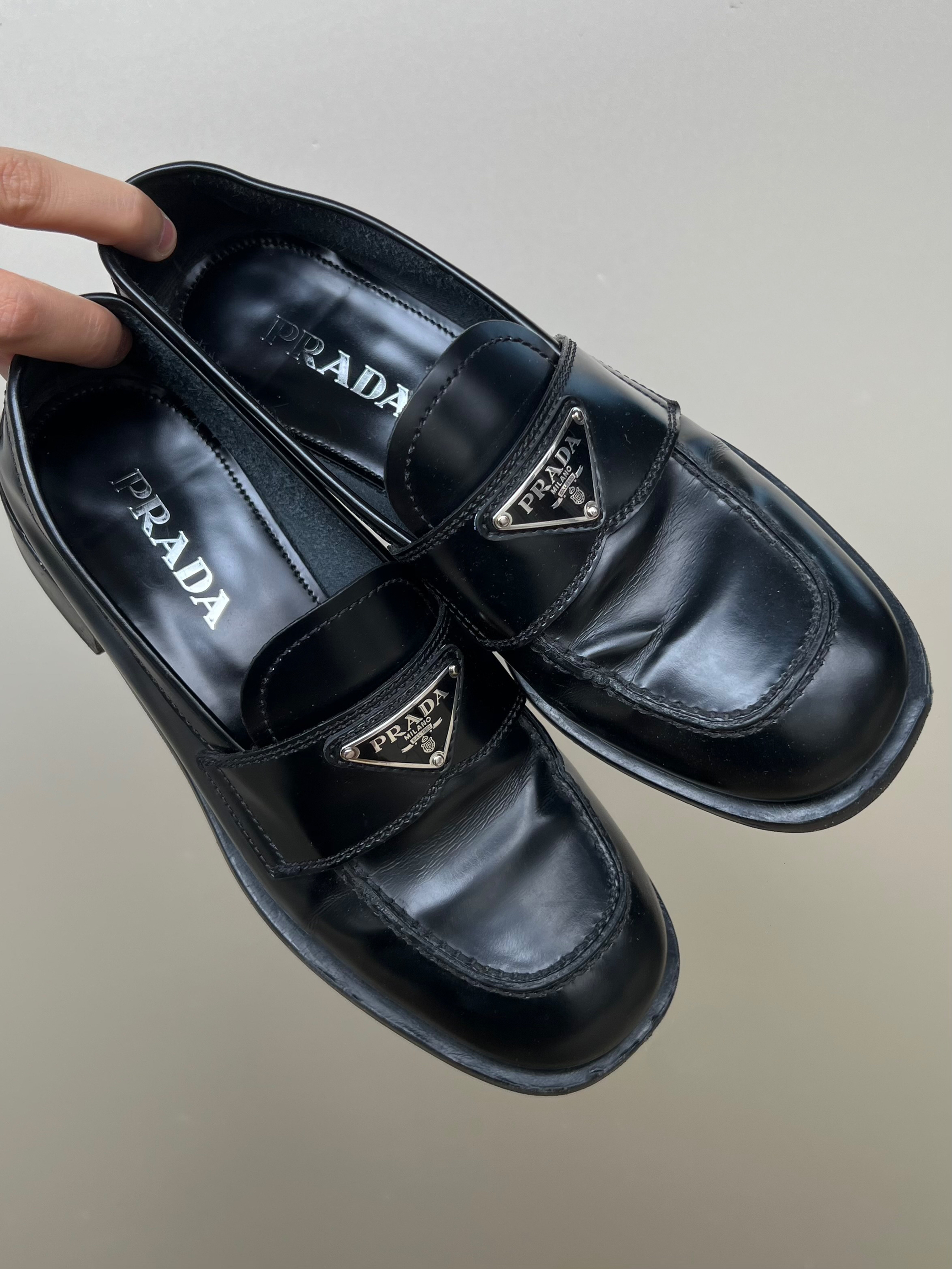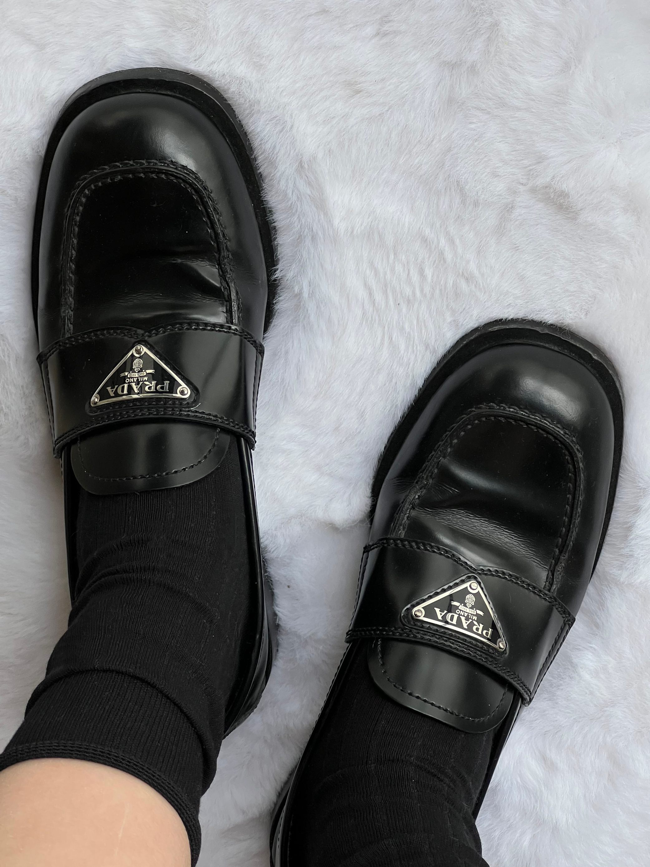 Prada的平底方头小乐福 这篇详细说一下这双的优缺点,给想入手的姐妹一个参考! 毕竟💲在那边!所以要入手真的要好好考虑! ❤️优点:当初选它是因为比起最火的那款厚底尖头的,这双更小巧秀气 这种鞋型可能不是现在最流行的,但是肯定是最经典不会过时的! 上脚很舒服,鞋码正,但是建议厚脚背的姐妹去店里试穿一下再入,我脚背厚的,是正好被它接受的程度 如果你是瘦脚细踝,这双穿起来更无敌!视觉上会显得小腿更...