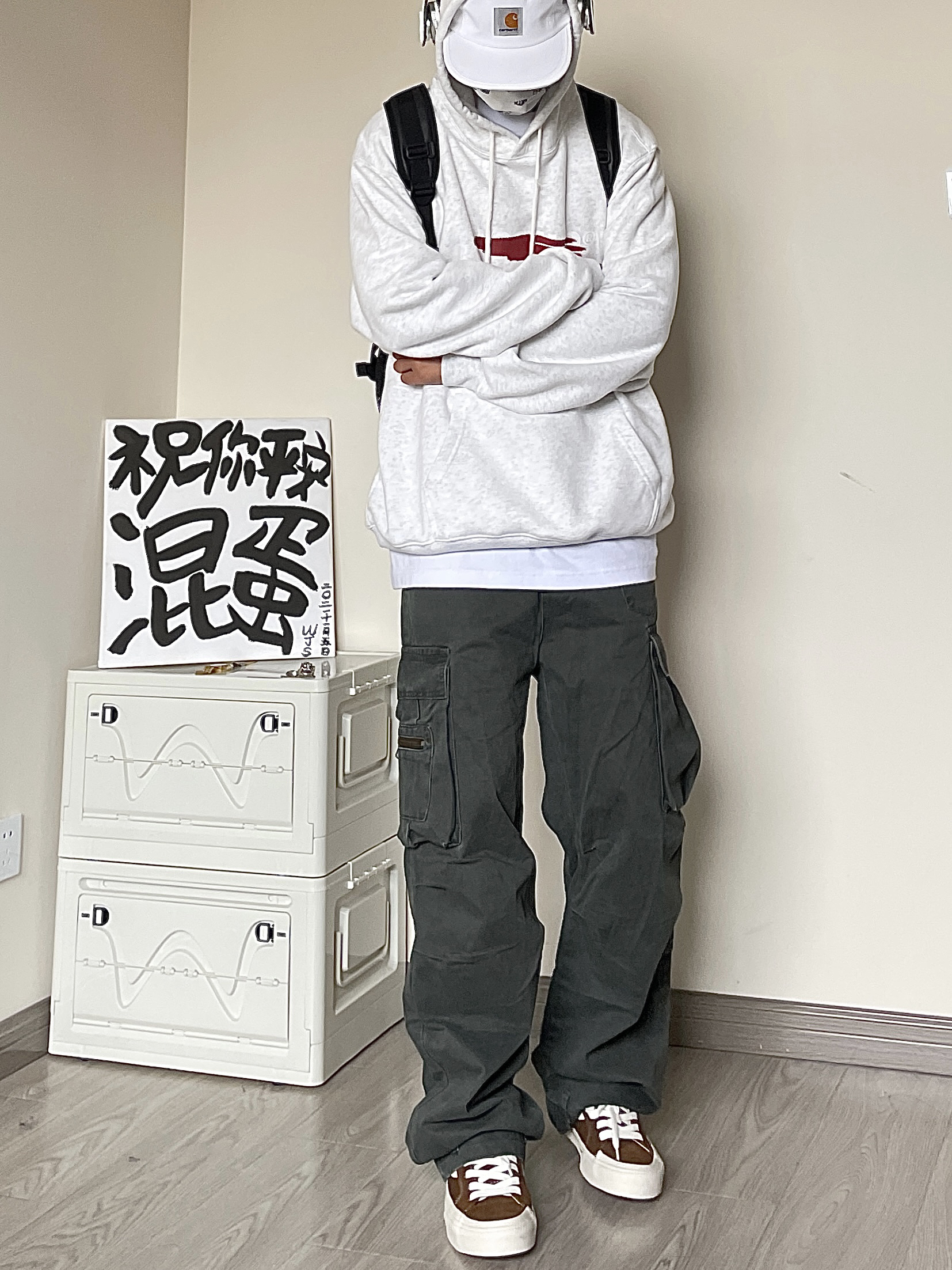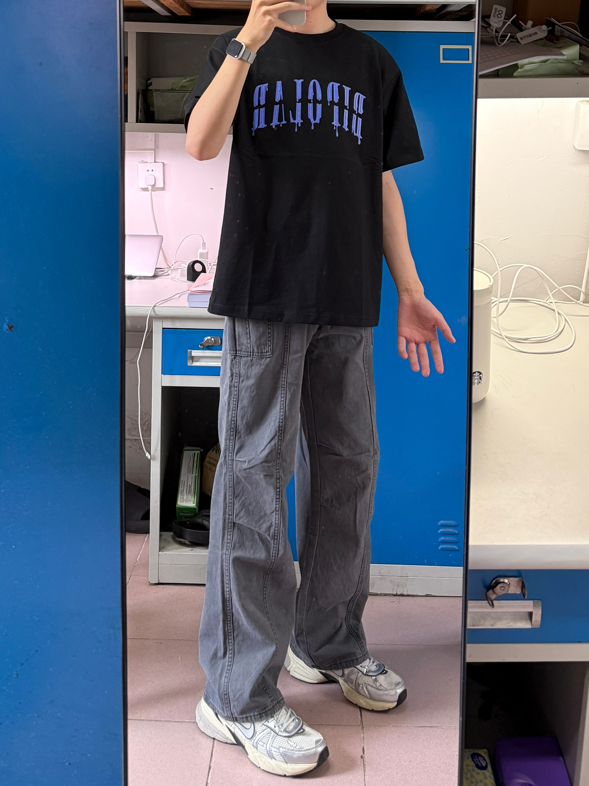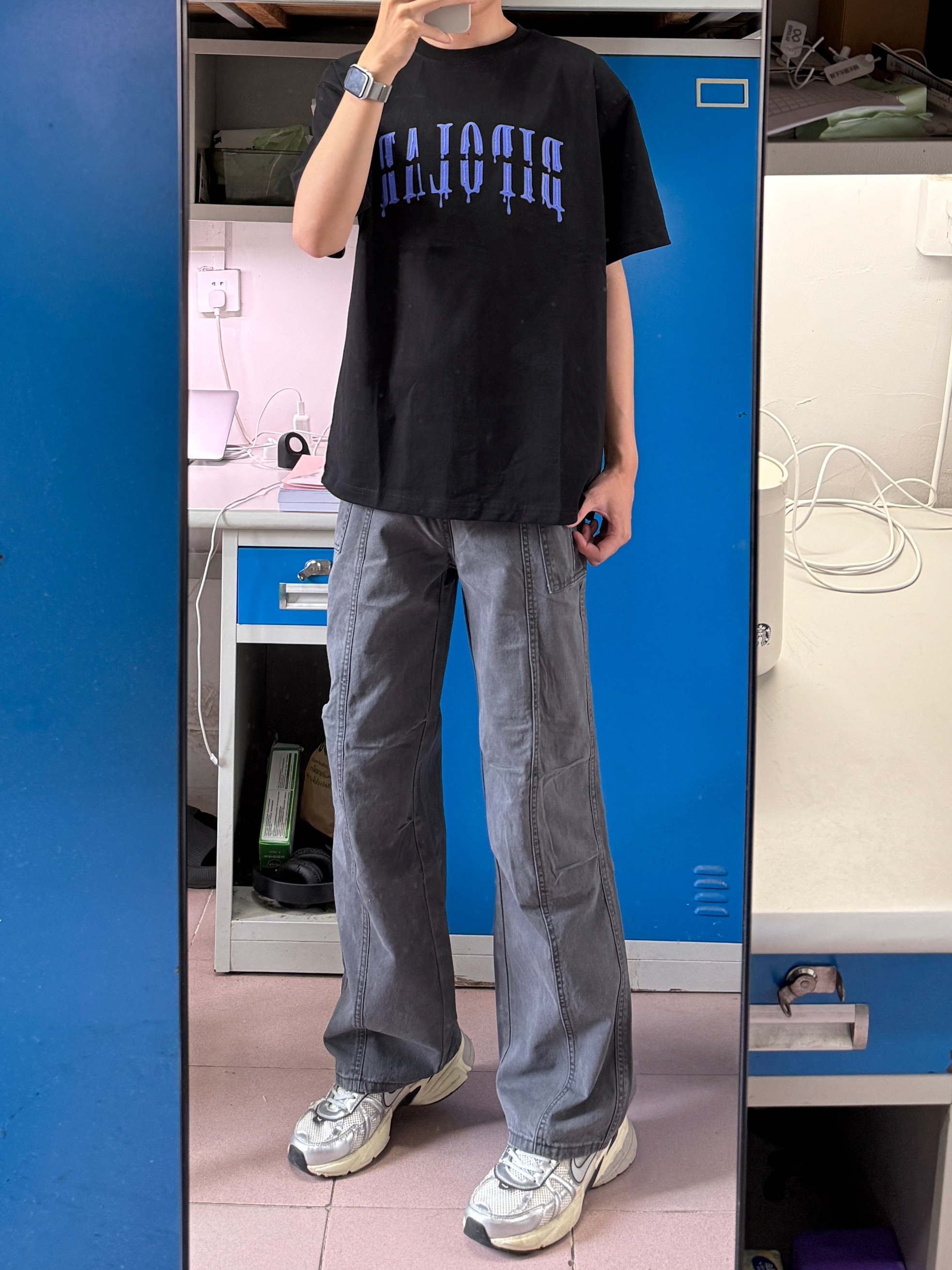 户外就适合穿工装裤👌 今天这条深灰色的就很帅 宽松微喇的版型搭配老爹鞋就很休闲耐看🤩 日常穿随便搭配什么T恤都不错,秋季搭配卫衣也好看