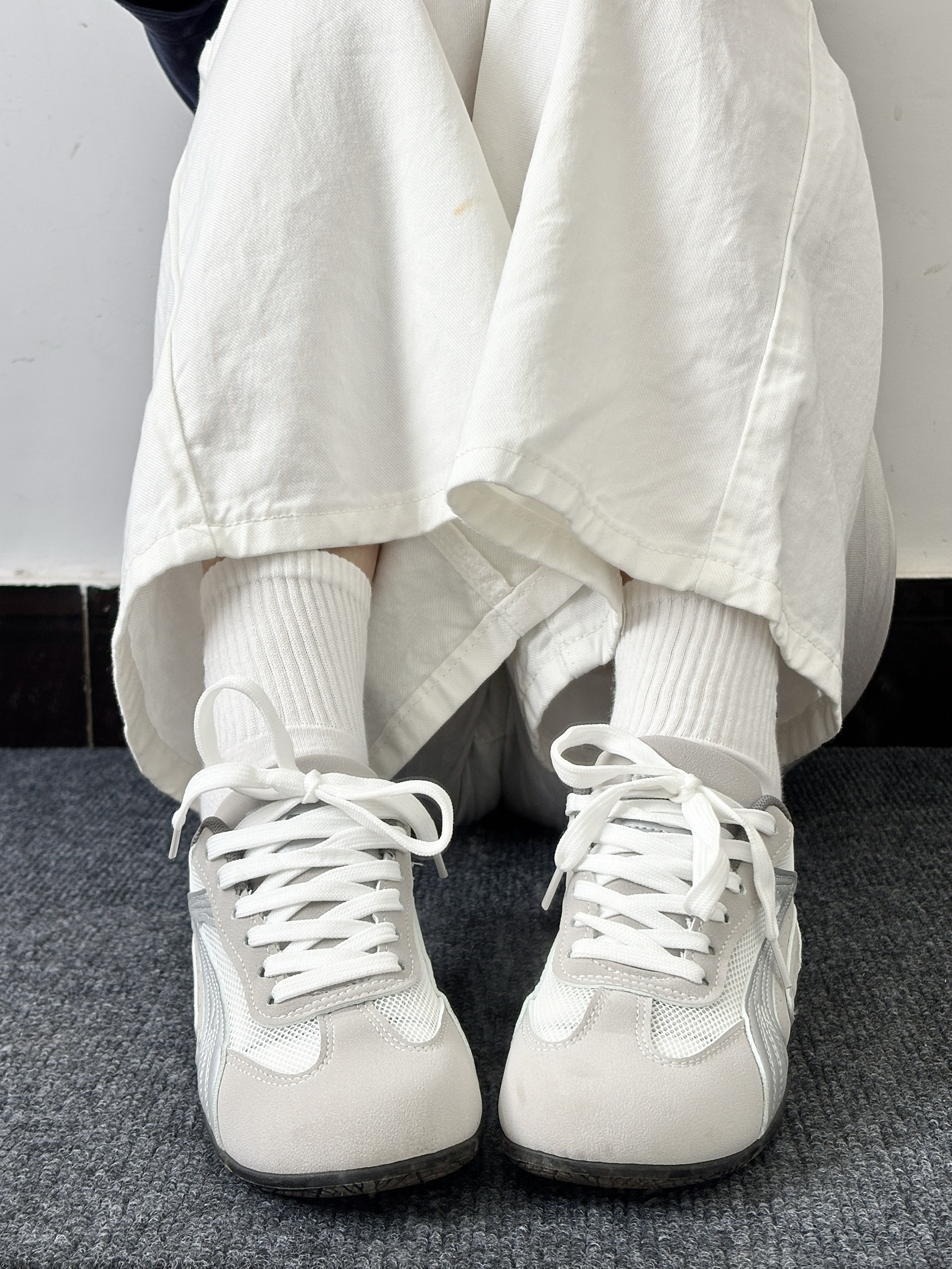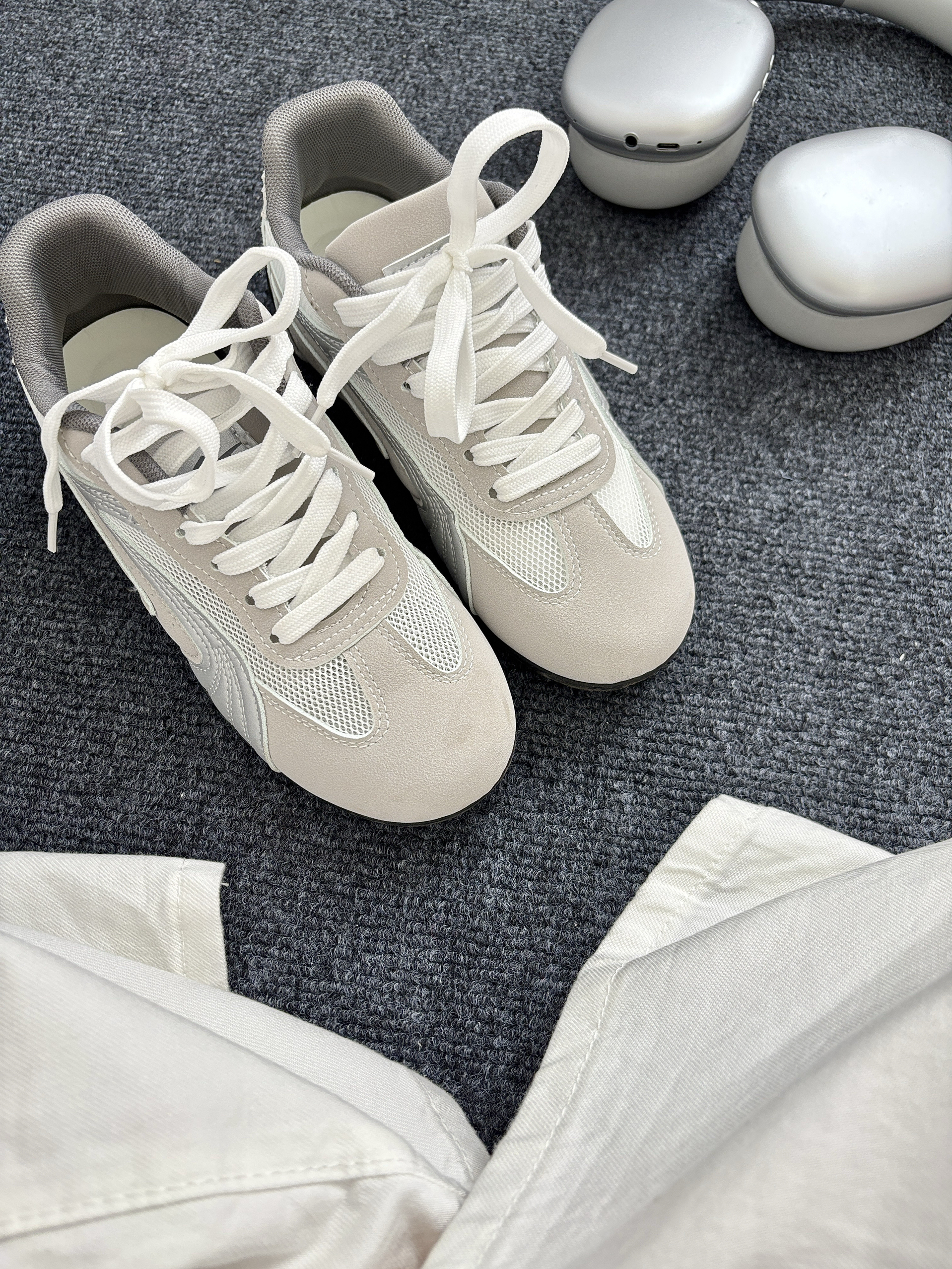买了黄色之后感觉这个鞋子还挺好穿 又入手了另一个款式这个银色的 这个鞋面是网面的更凉快一点适合现在穿 浅色系很百搭很日常👌🏻 搭配衣服不费劲而且穿着也舒服休闲甜酷风都🆗 鞋型很流畅家人都夸好看说我眼光好哈哈 鞋底有一点增高有点前薄后厚的感觉脚感可以😌 走路久了也不觉得累个人还挺喜欢的🫶🏻