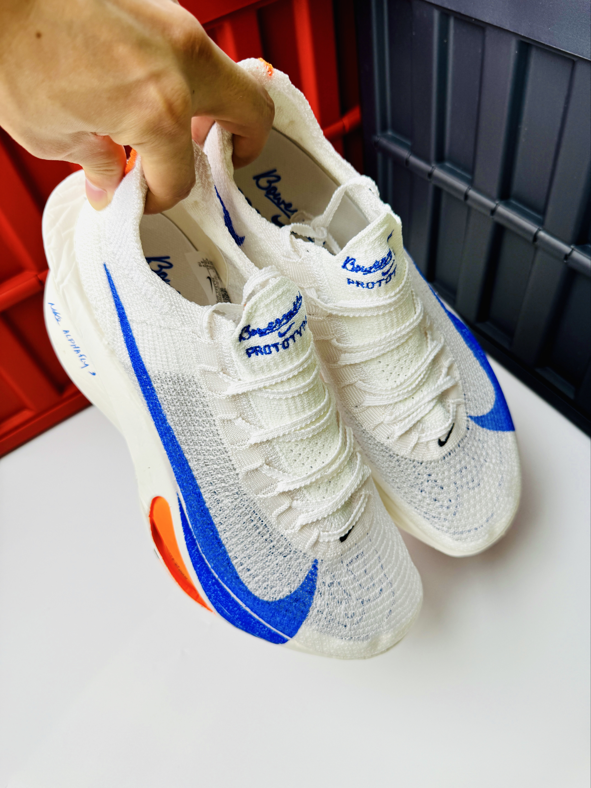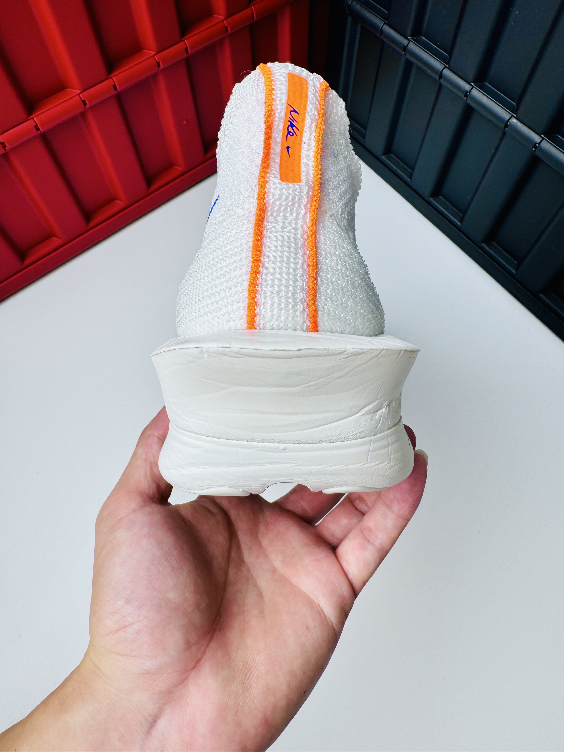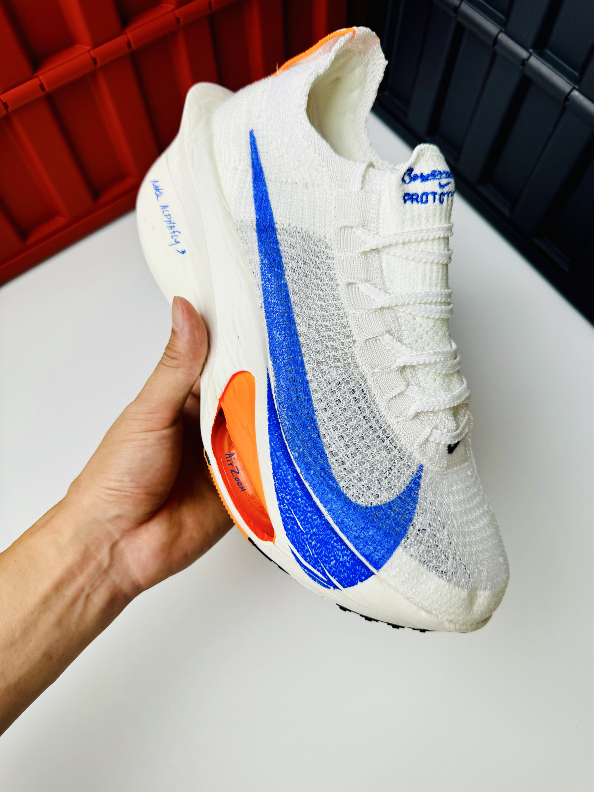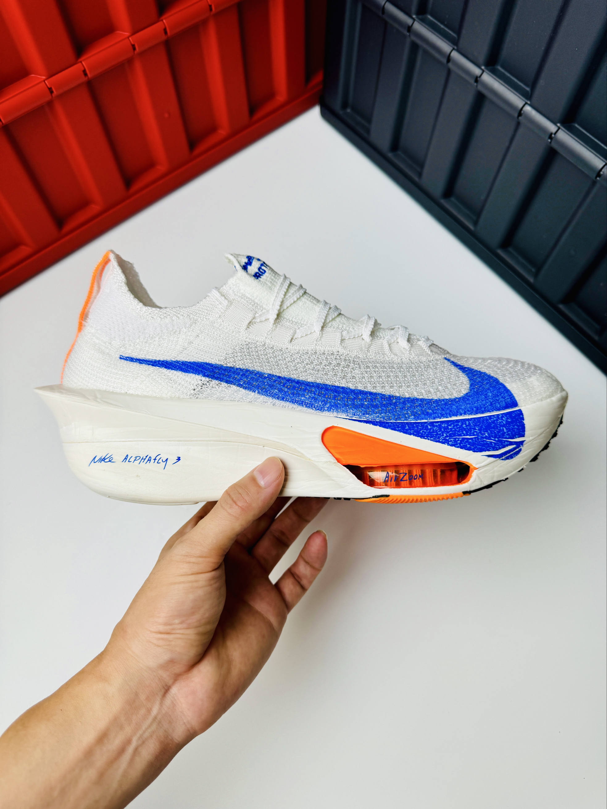 🤔最近入手了这双Nike Alphafly 3白蓝橙配色,都在说普通人不要轻易尝试顶碳跑鞋,可是我偏偏不信邪,今天就来给大家分享一下我实际上脚后的感受吧! 🤨首先,在颜值方面,全白鞋身+亮橙色气垫窗+蓝色的Nike刷漆,上脚就是赛道焦点,特别有辨识度,复古未来风拉满! 😍其次,在性能方面,前掌双气垫+碳板的组合,提速时像踩弹簧,尤其跑到后半程腿灌铅时,那股弹射感能硬生生推着你往前冲,我实测10公里...
