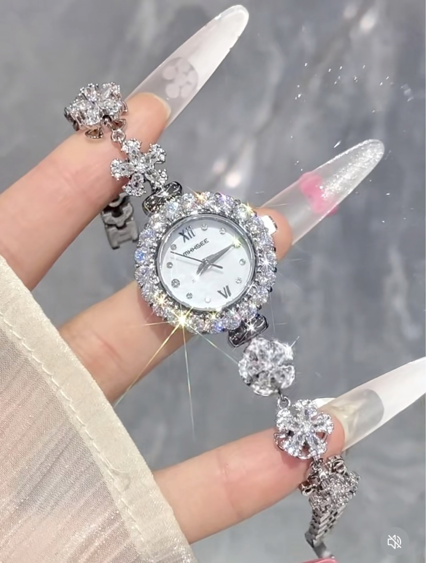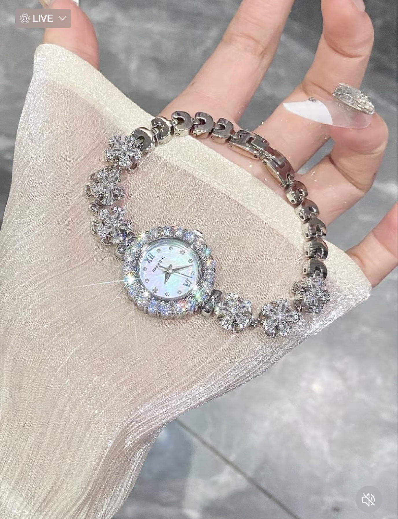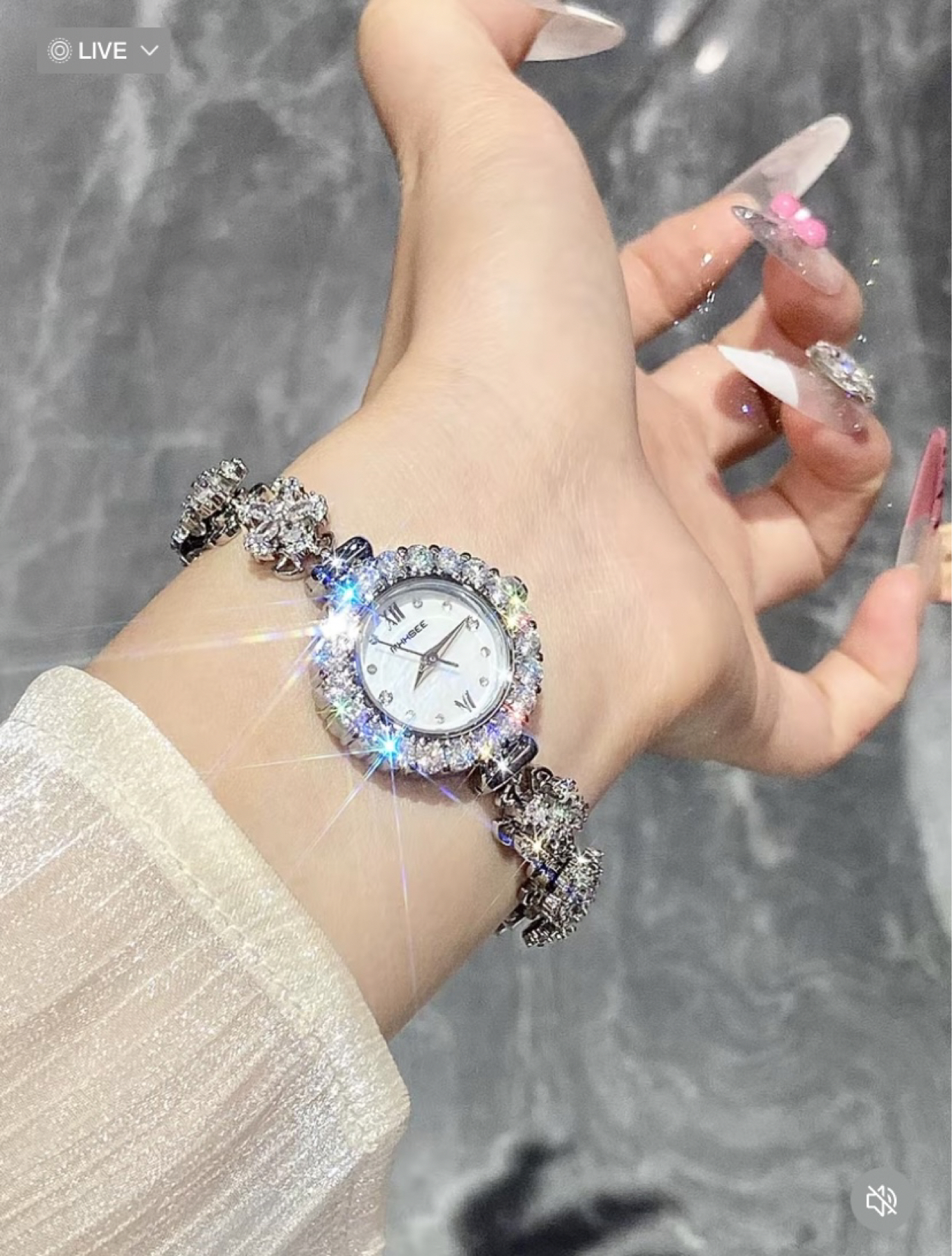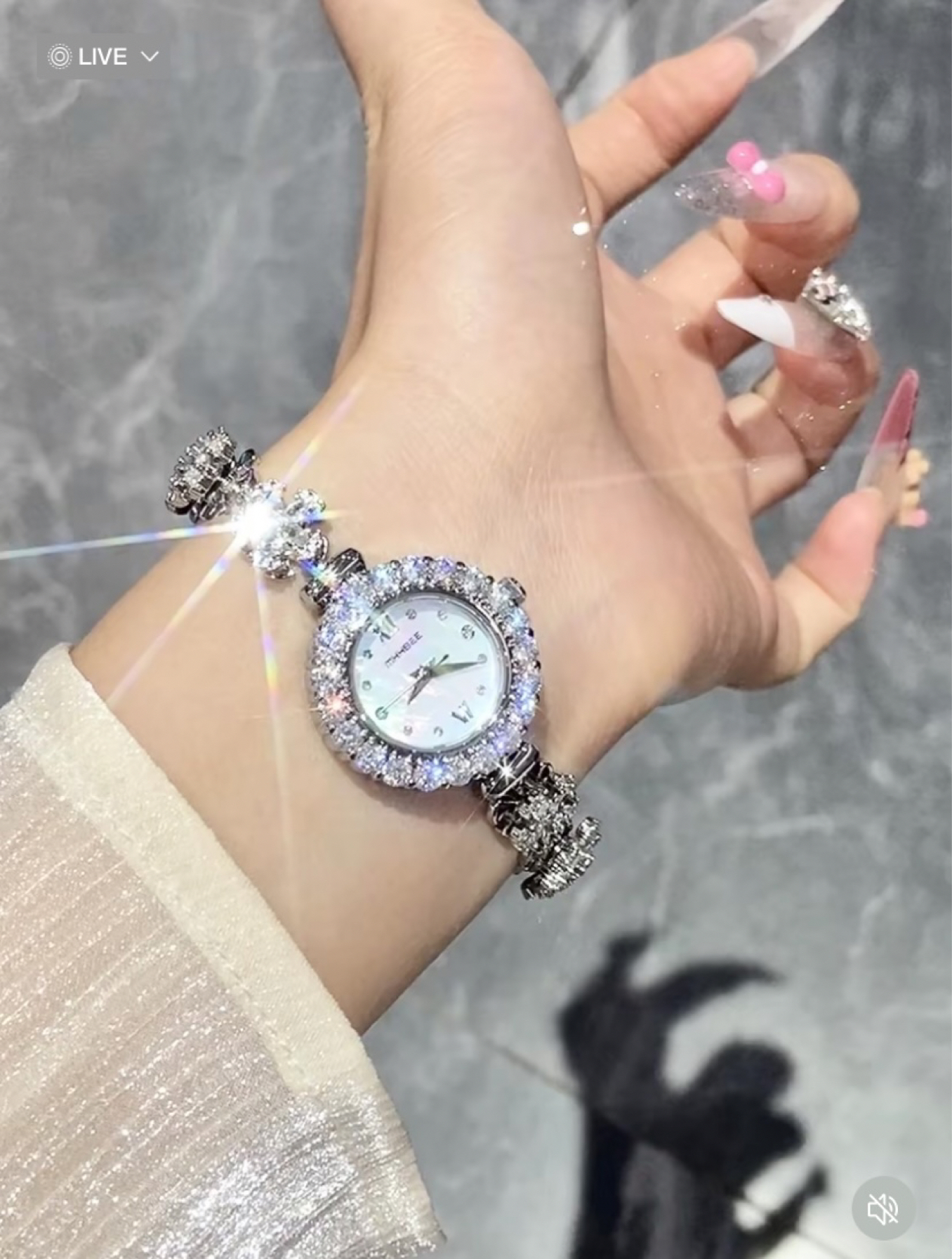这三款手表好bulingbuling的 而且三款的表链都是可以转动的小雪花器设计 粉色表盘 感觉比较甜美 贝母表盘 比较梦幻 白色表盘 比较简约 质感都蛮不错的~ 唯一 的缺点就是小雪花然容易勾线 而而且戴上个人感觉也比较精致