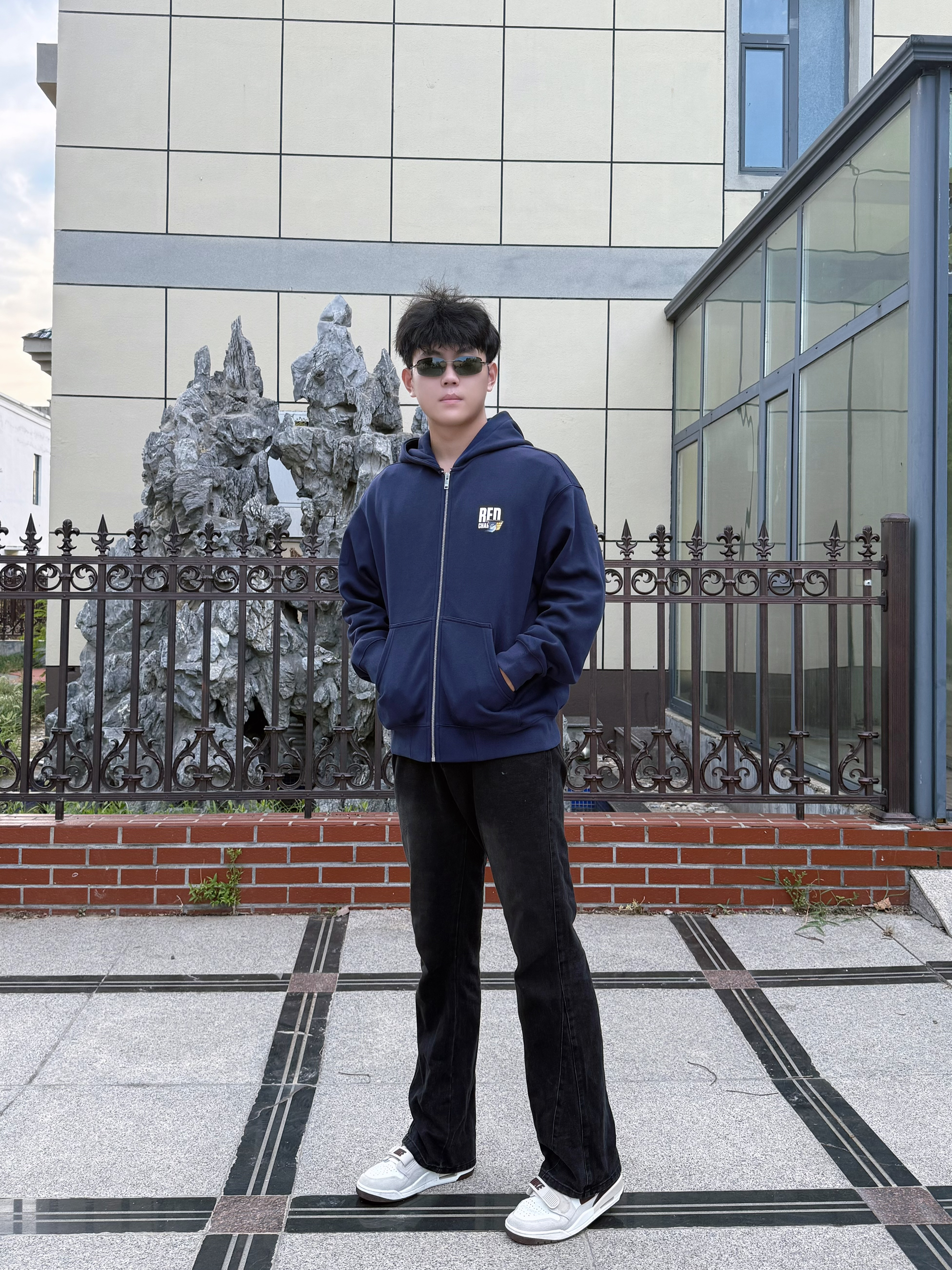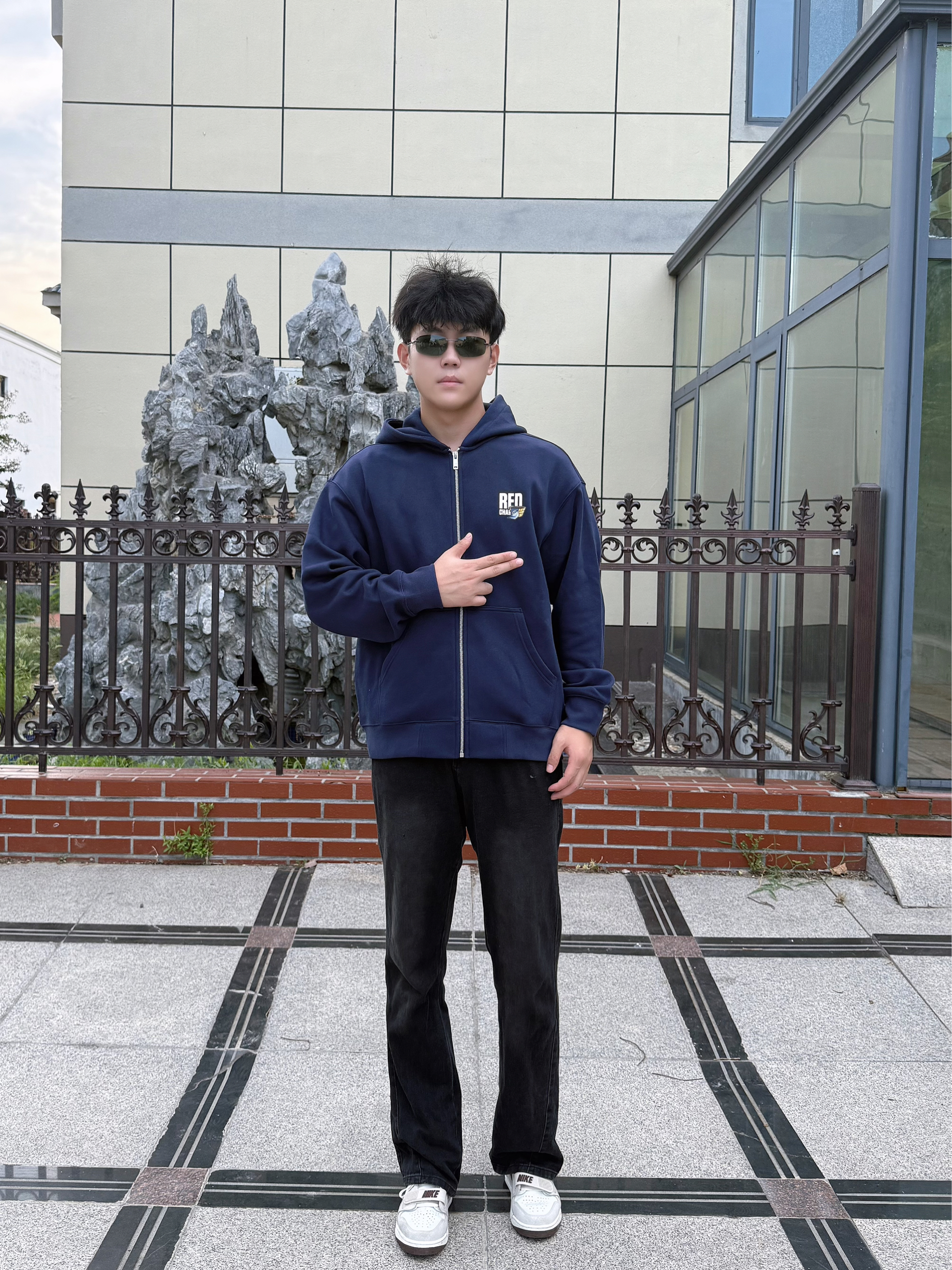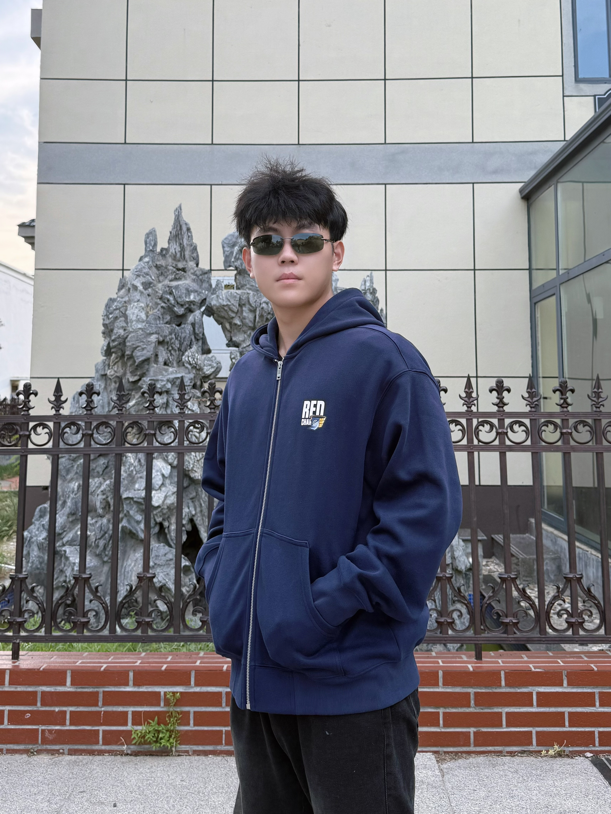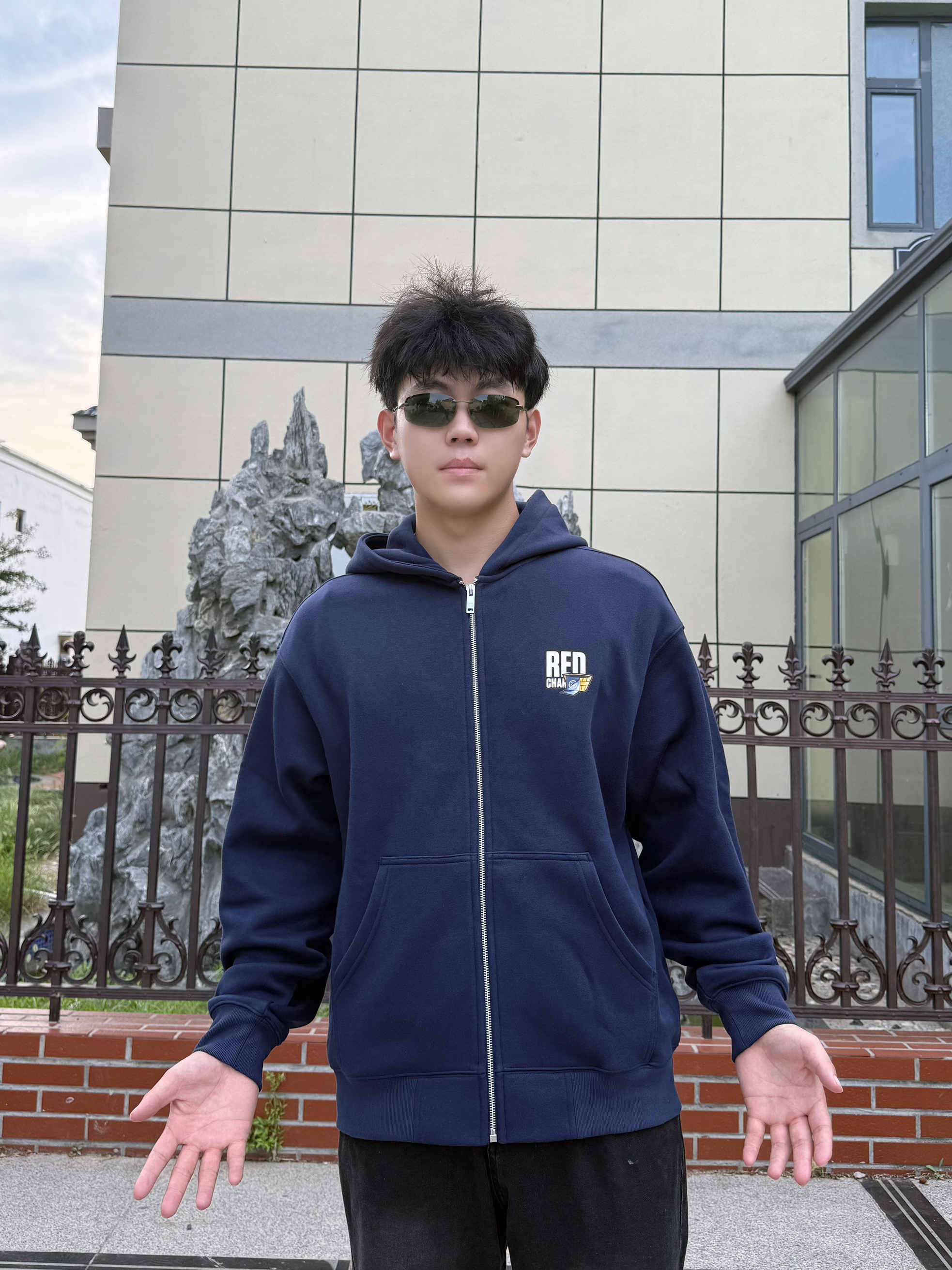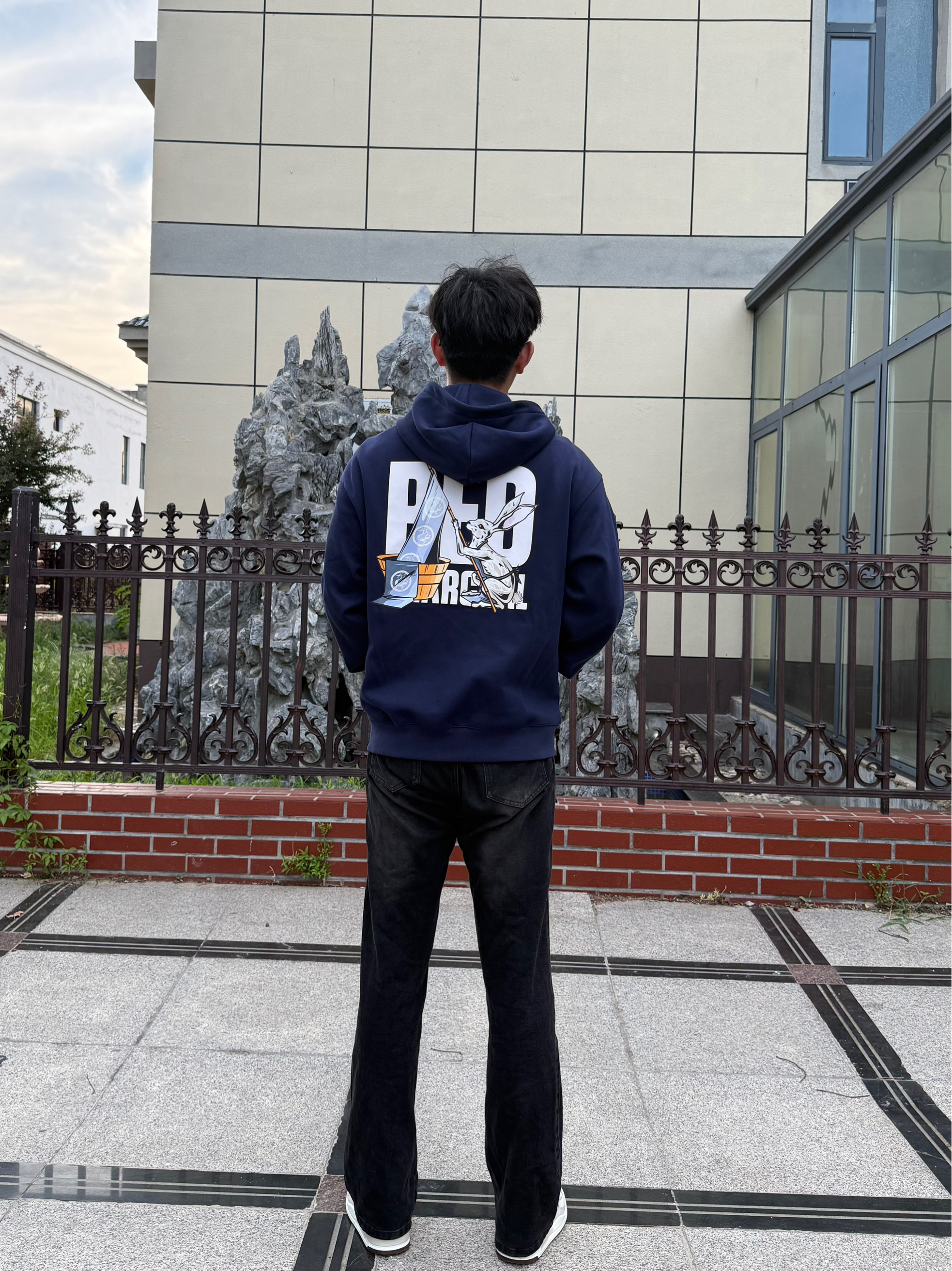 分享下这件 REDCHARCOAL 和sunny艺术家的联名卫衣,属于《市井十二》卯-兔染布系列。藏蓝色连帽开衫款式,背后有兔子染布的图案设计,还挺有艺术感。面料摸着软糯,宽松版型,男女穿都合适。日常搭配简单,黑裤子、白鞋子一配,休闲又有风格,喜欢这种设计的可以看看。 身高184、体重150(XL)