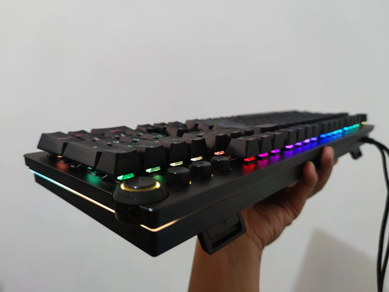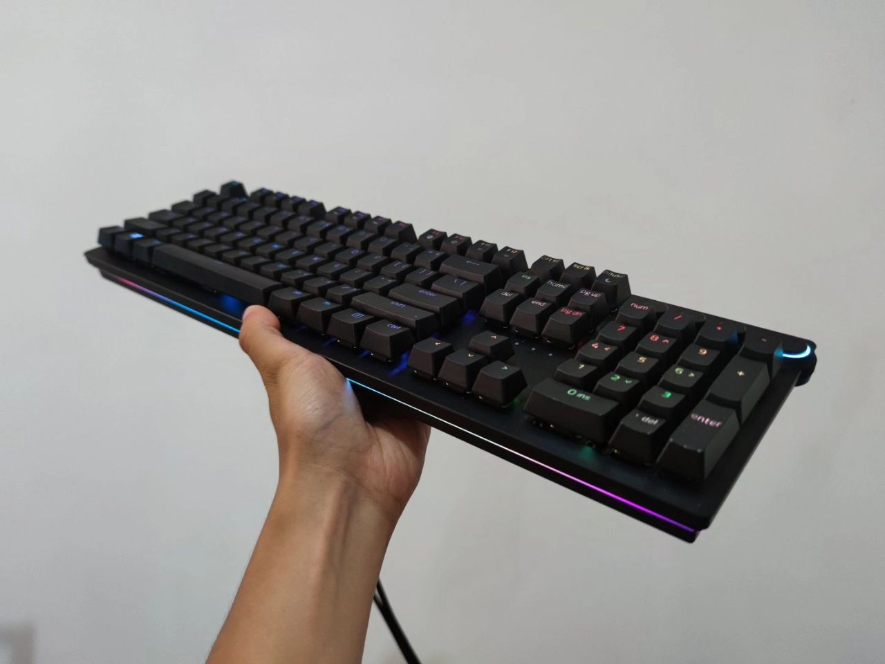我之前用的青轴键盘声音太响了🔊,就换了这把。它灯效巨帅,每个键能自定义光效✨。模拟线性光轴还可调节触发段落,体验很棒。缺点就是有线连接稍微有点限制行动范围🚀,但总的来说无论是办公打字还是玩游戏都很合适~