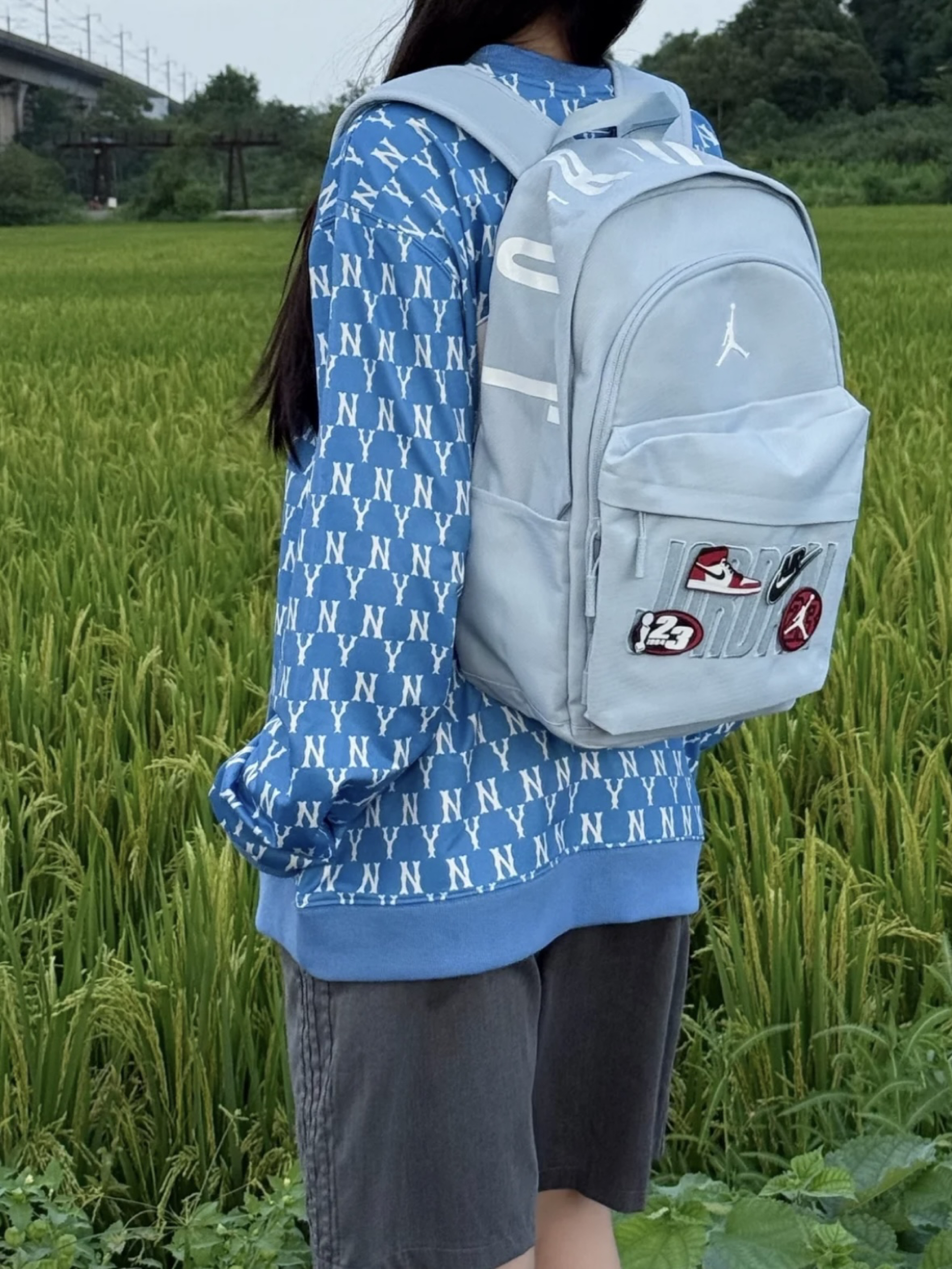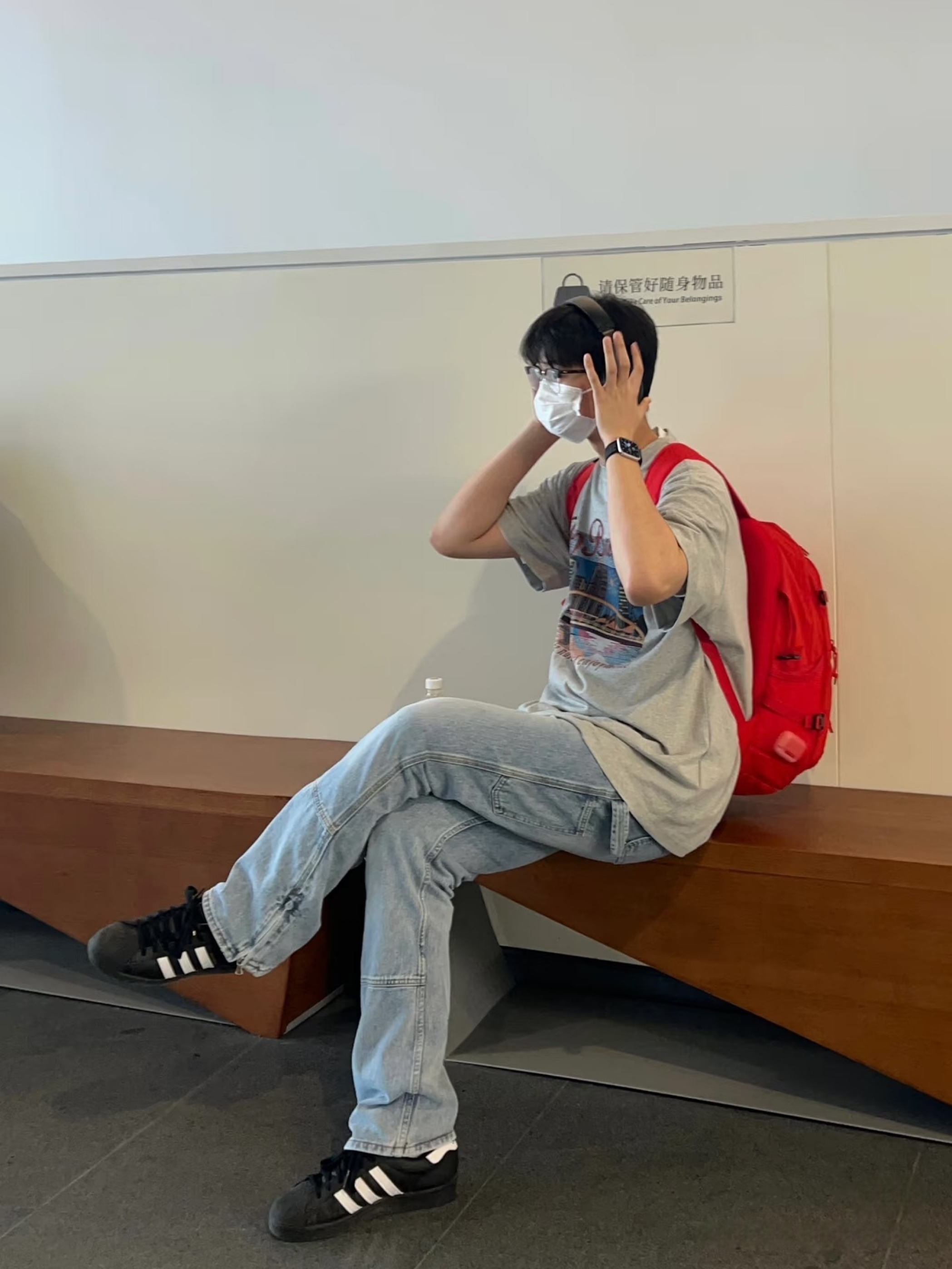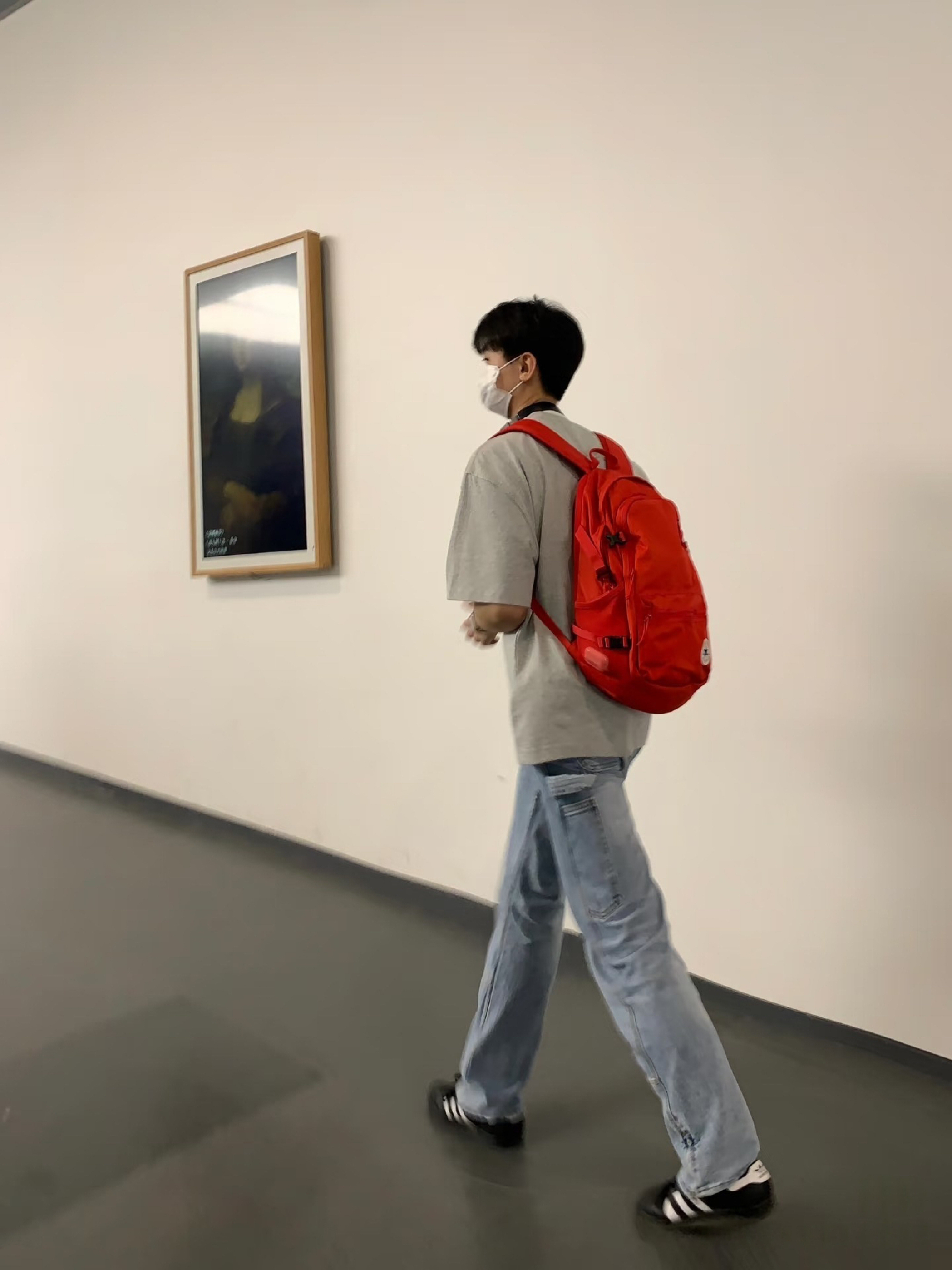 去看展就爱这种舒适又有格调的搭配~浅灰色短袖T恤,简约基础,穿着自在无束缚。搭配复古蓝牛仔裤,宽松版型慵懒随性,还带着几分复古质感。背上亮眼的红色背包,瞬间为整体造型增添活力与亮点,在艺术展品的衬托下,整套穿搭既不抢镜,又能轻松融入艺术氛围,舒适看展的同时,时尚感也在线~