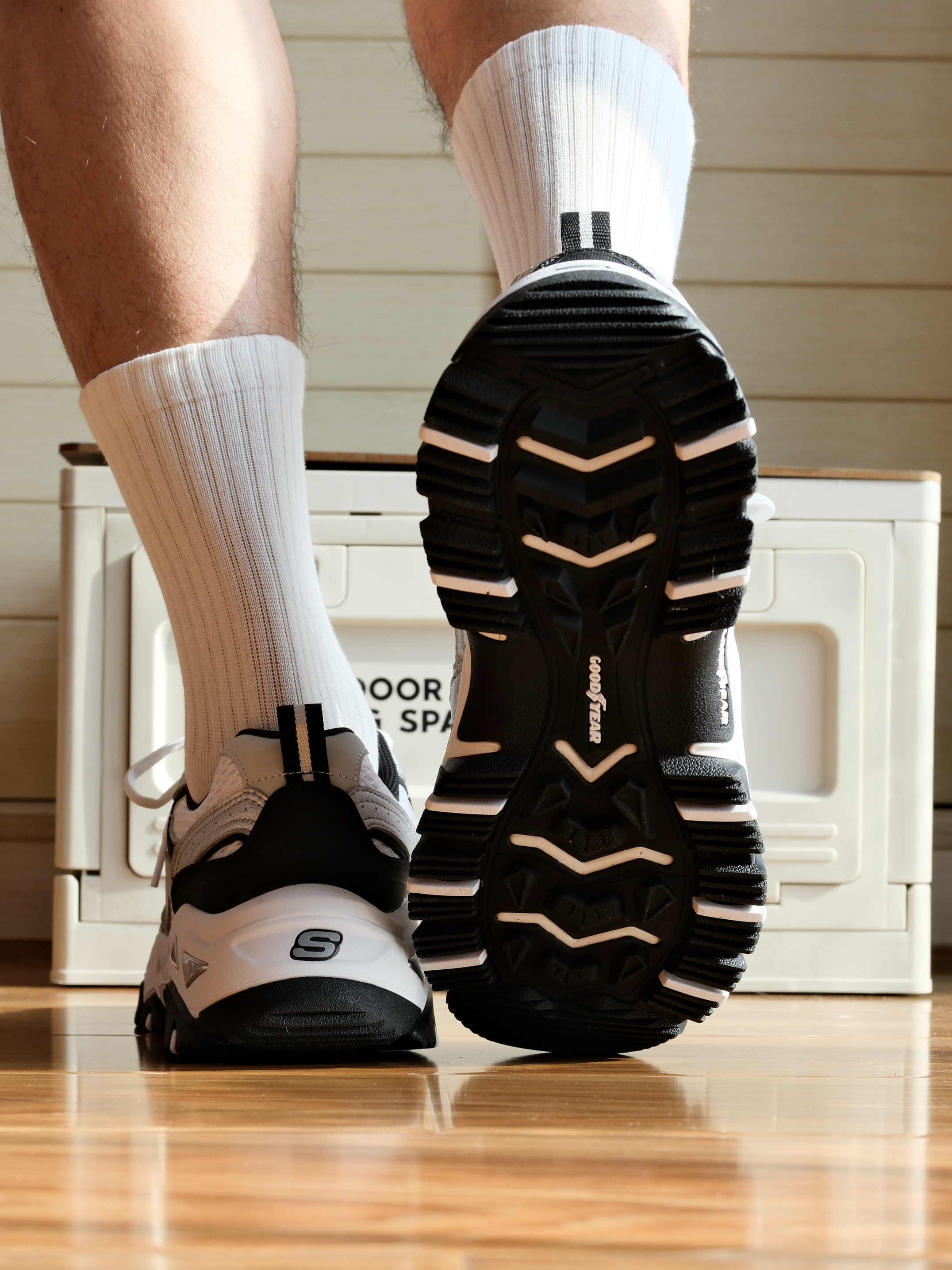👟:斯凯奇 时尚舒适低帮户外功能鞋 银黑色 这双鞋我觉得在夏季穿还是很合适的,肉眼可见的有比较大面积的透气网眼孔,还是能起到不错的透气效果,我不用担心焐脚的问题啦😊 外观是偏复古的版型,银黑相间的,有时尚感👀 尺码是正常选择的,没有偏码的感觉哟❗️ 鞋重量上还是可以接受的,偏轻盈,内里也是比较柔软的,同时也有包裹感,走路还蛮舒服的🥳 这个橡胶大底比较厚实,纹路也是比较厚的,作为户外鞋来说,防滑效果...