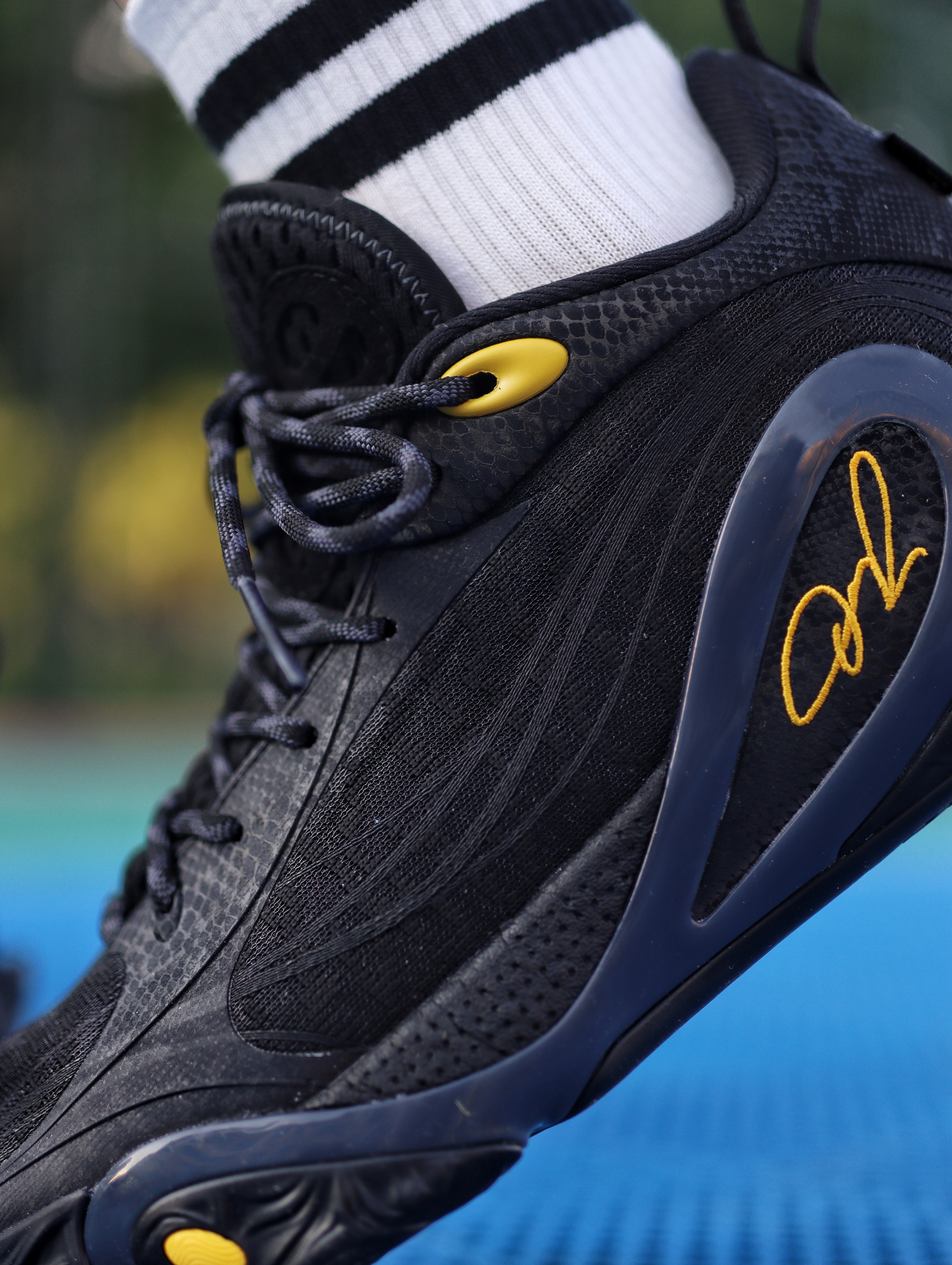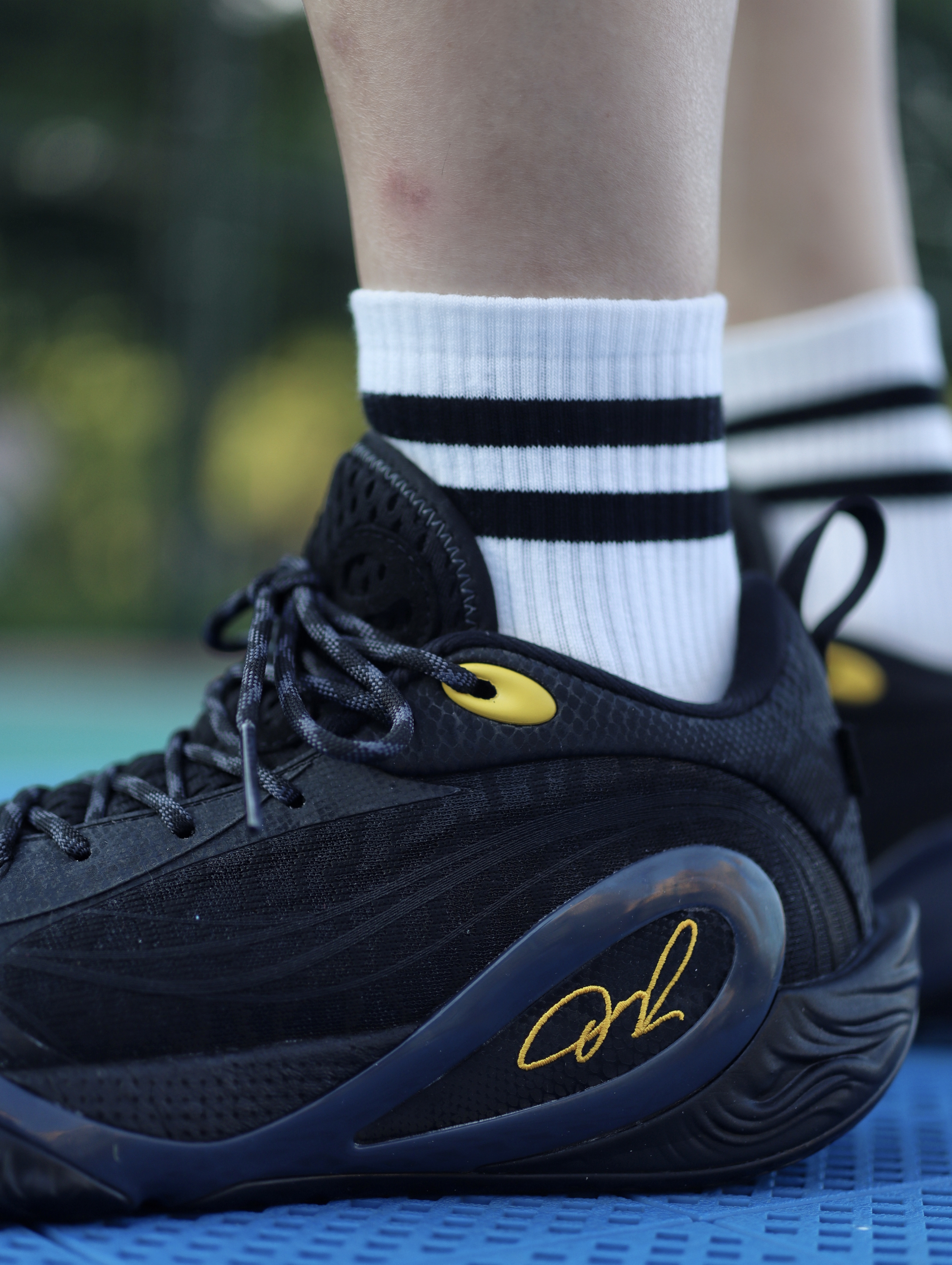 今天上脚的是这双李宁DLO 1门徒黑武士配色👟 作为拉塞尔的首款签名鞋,每一个配色我感觉都有一个不一样的故事,看到“门徒”二字我就知道这个配色不简单,鞋身全黑的配色加上侧边黄色的签名,有种“湖人”的感觉,鞋身侧边的TPU蝴蝶印花两双鞋拼在一起刚好凑成一个蝴蝶的图案,呼应了拉塞尔在球场上灵活的脚步,飘逸的球风。 上脚后,鞋子整体还是蛮轻的,包裹性也不错。全掌䨻 + 后跟 LIGHT FOAM ...
