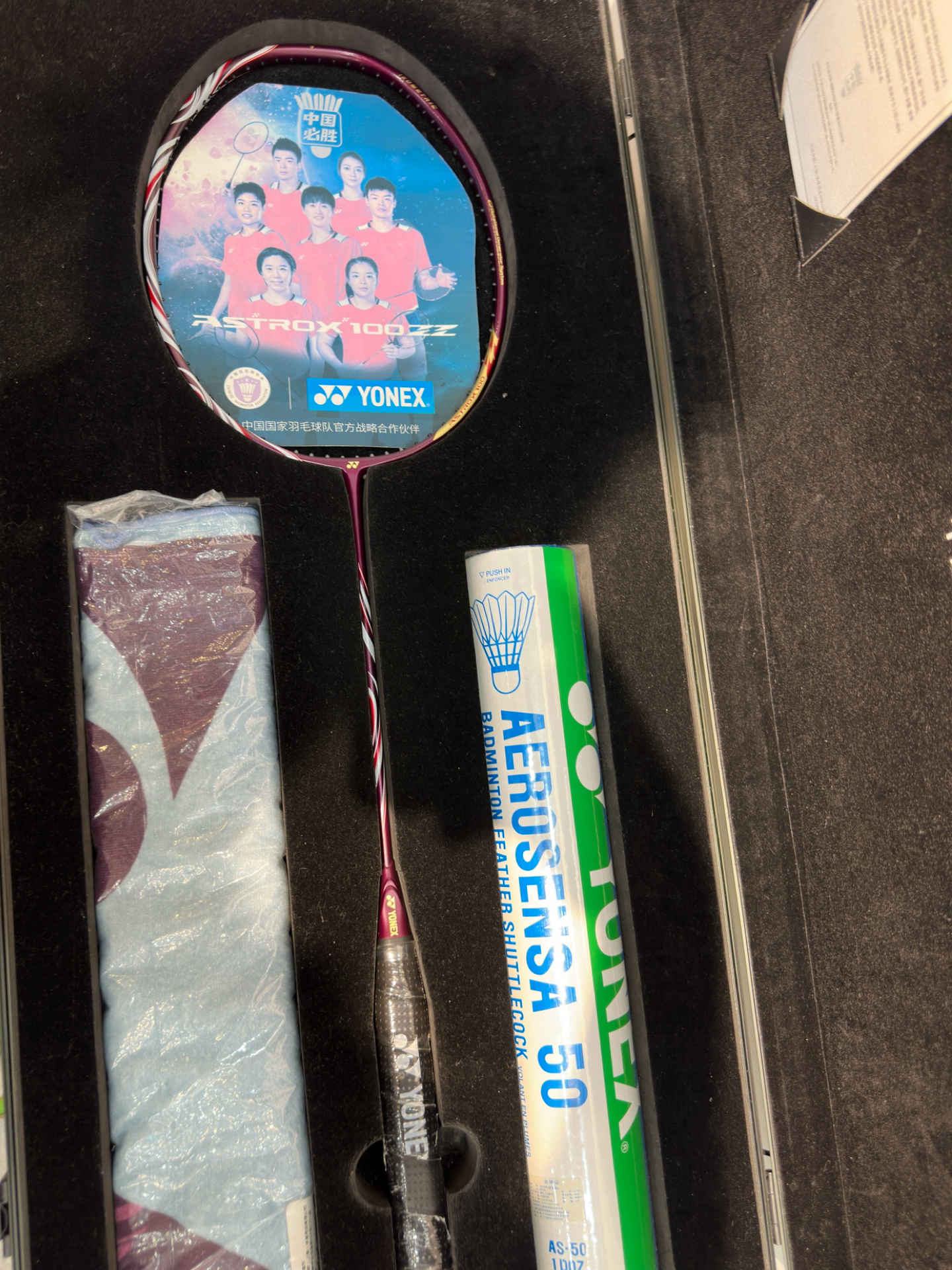 入手了尤尼克斯天斧系列AX100ZZ日版礼盒装羽毛球拍。它连贯进攻表现出色,平抽挡实力碾压同级拍👍。 这颜值也是没谁了,不同于古红的青春,它给人稳重之感。漆色特别,听说国语配色拍框加了金属,击球音效更佳。 而且限量3000套,很有独特感。不过拍杆较硬,对力量要求高,新手可能不太好驾驭。 有没有大佬说说,它和其他高端拍相比,长期使用优势在哪呢🤔?