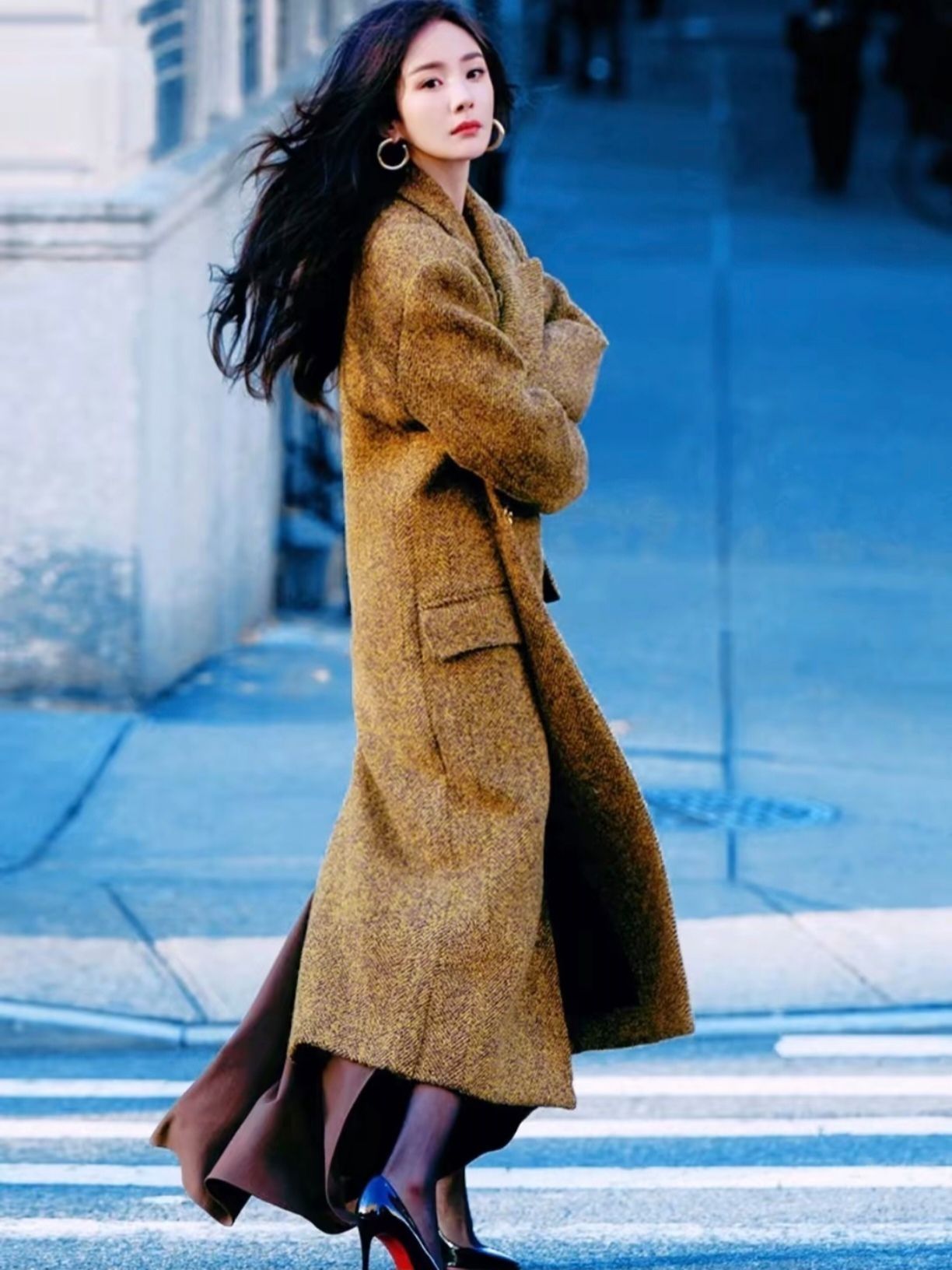 谁看了杨幂在纽约街头的秋日穿搭不说绝!驼色大衣像从秋日油画里走出来,随意一裹,慵懒松弛感拉满,走路带起的风都藏着时髦密码🍂 搭配细跟高跟鞋👠 把精致和随性融成艺术品,纽约街头直接变成她的“秋日秀场”,普通人学这松弛感穿搭,秒变街头风景!