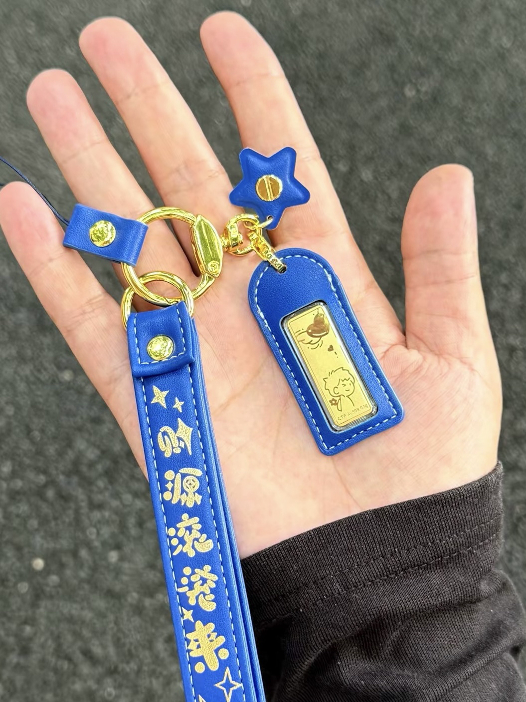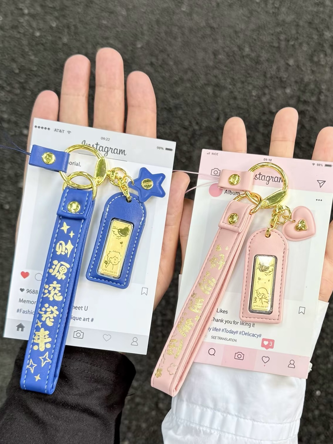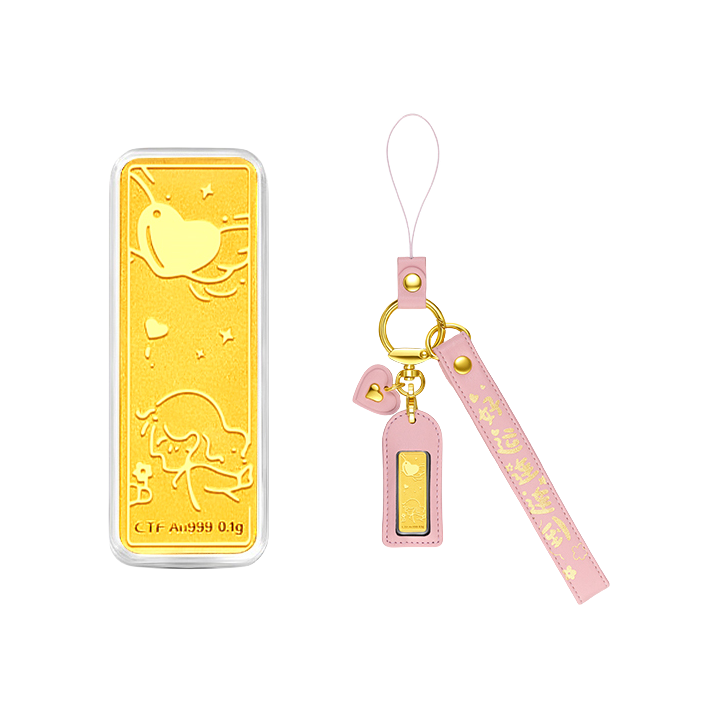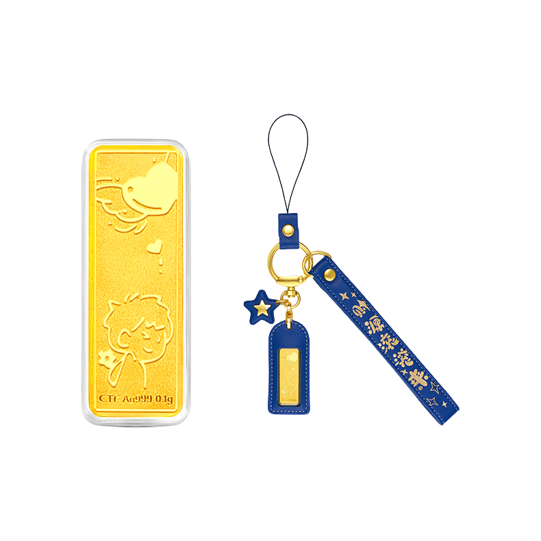 当然要跟爱的人戴情侣同款吖 这回我淘到的那可不一般✌️ 周大福 黄金情侣钥匙扣 可可爱爱的印花小金子✨ 直接拿捏我这个小财迷啦~ 一粉一蓝拿手上满满CP感 而且当包挂、车钥匙挂件… 是保值又实用的礼物没错啦