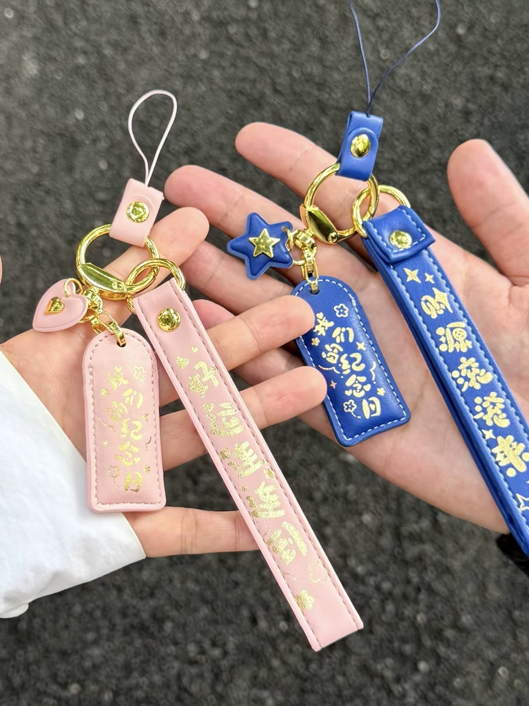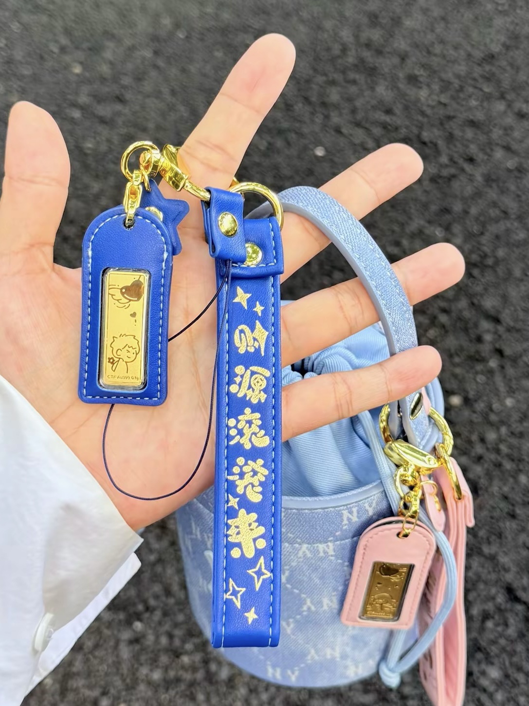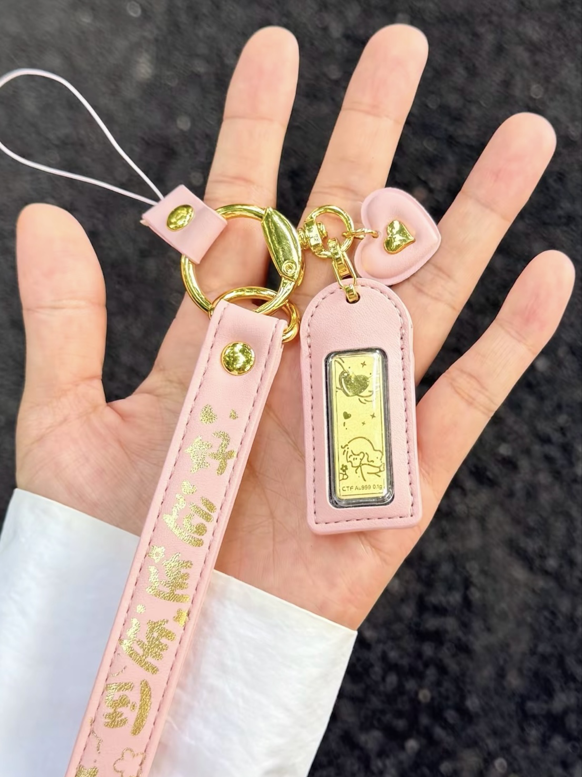 当然要跟爱的人戴情侣同款吖 这回我淘到的那可不一般✌️ 周大福 黄金情侣钥匙扣 可可爱爱的印花小金子✨ 直接拿捏我这个小财迷啦~ 一粉一蓝拿手上满满CP感 而且当包挂、车钥匙挂件… 是保值又实用的礼物没错啦