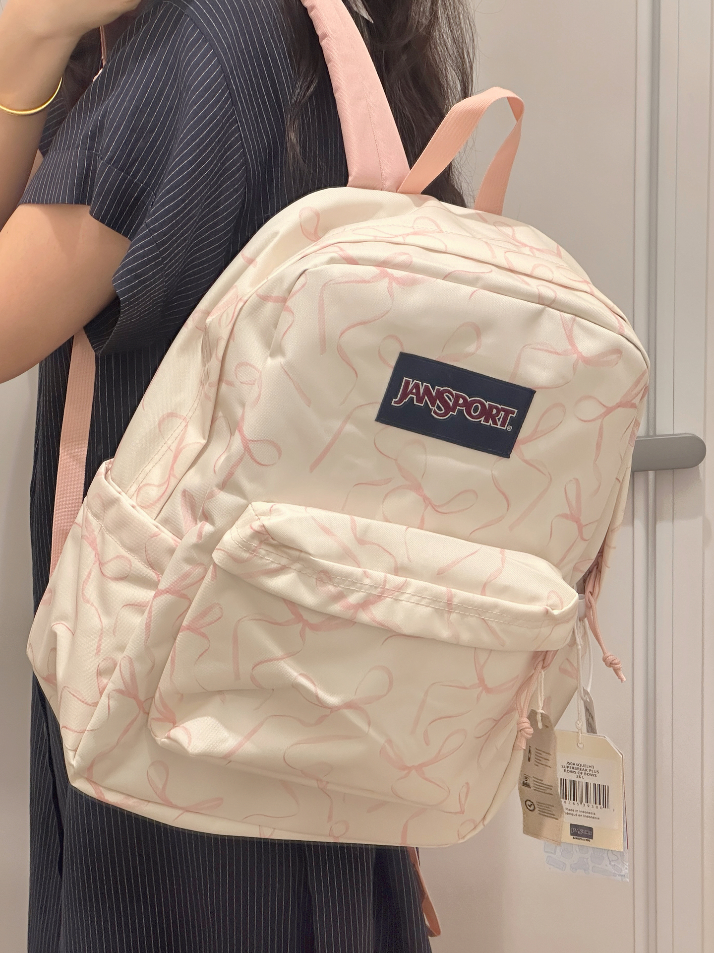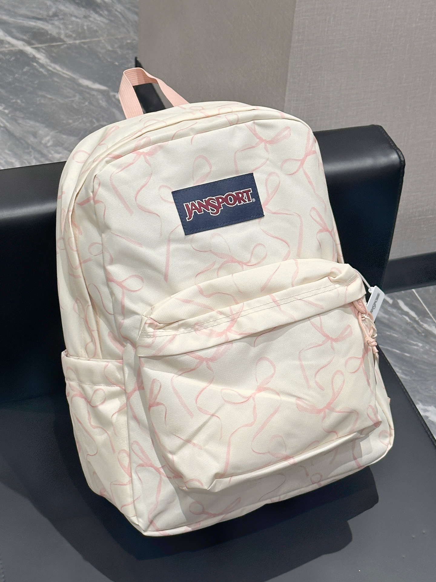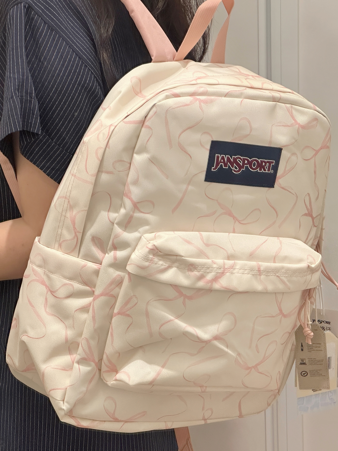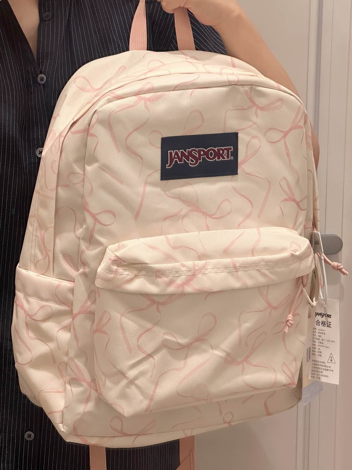 我最近挖到一款超爱的双肩包💖!印满粉色蝴蝶结,真的太可爱啦。容量大还带分层,侧边能放水杯、充电宝。出去旅游背它拍照巨上镜📷,搭配小裙子也很完美。不过织物材质可能不太耐脏,总体还是很棒哒,甜妹可冲!