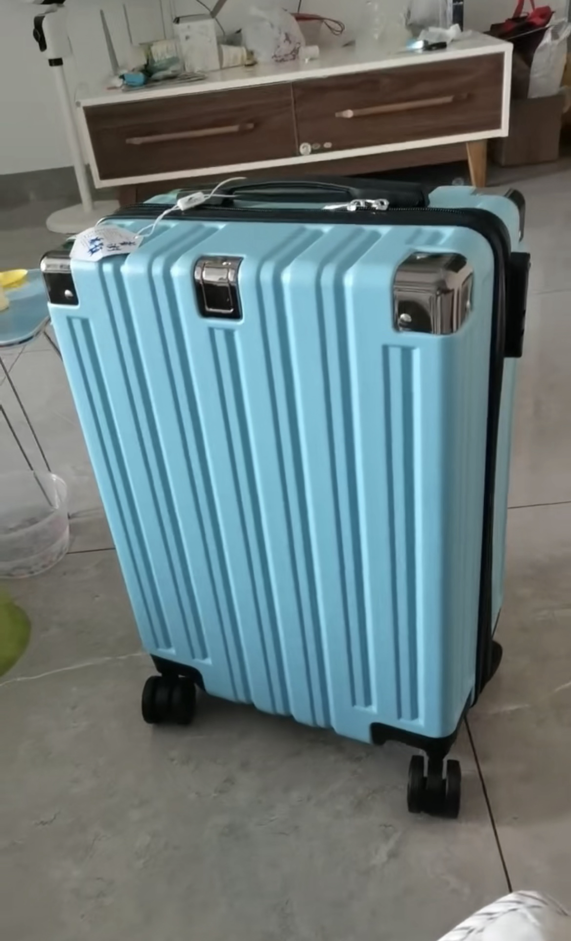 给弟弟挑行李箱,选中了卡帝乐鳄鱼这款。实物天蓝色巨好看😎,弟弟一眼就相中。 选的尺寸用来短期出行,装东西完全够,它的材质还防水💦,这点很贴心 不过耐用度还有待时间检验。