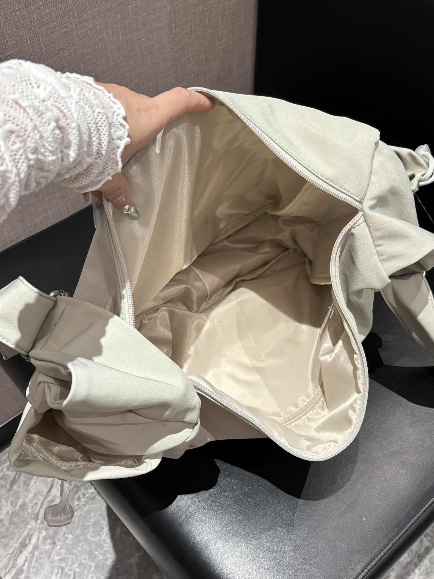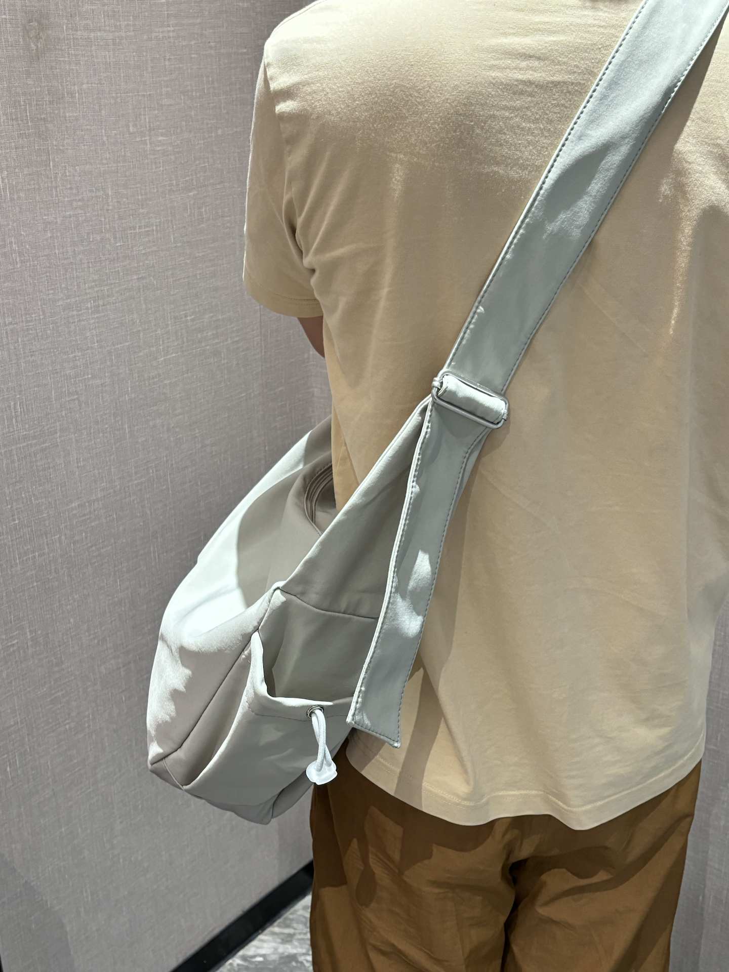 星空灰的配色很清冷,清爽感拉满,太适合夏天啦~而且它是大号的,巨能装👏。包本身也很轻,背起来无压力 我打算暑假出去玩就背它~缺点就是单肩带设计,长时间背可能一边肩膀会有点累🥲,不过好看能装就够啦!