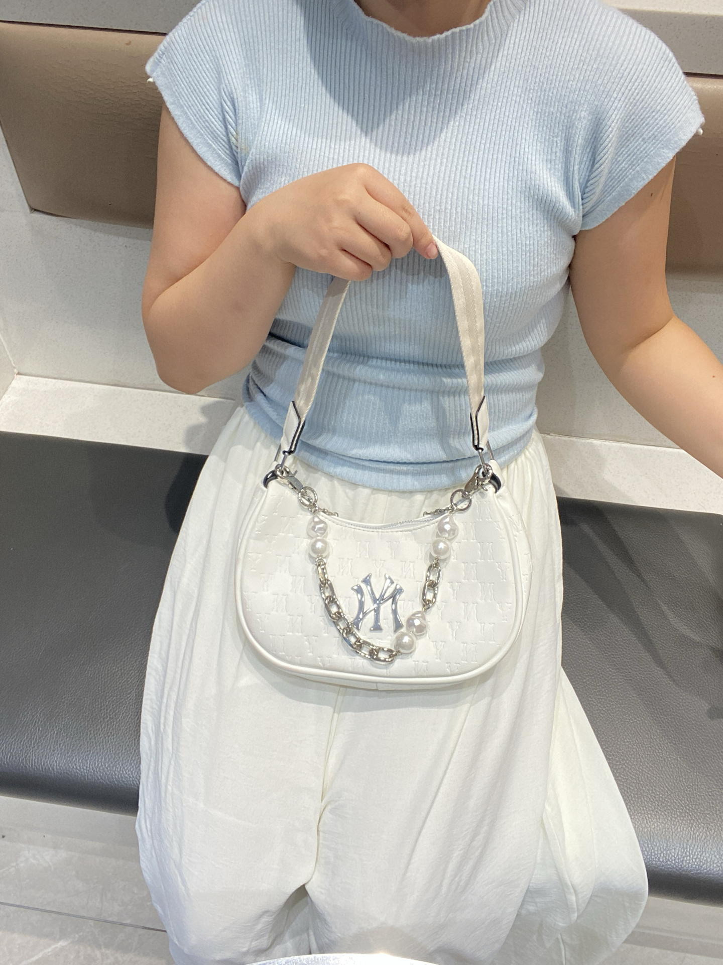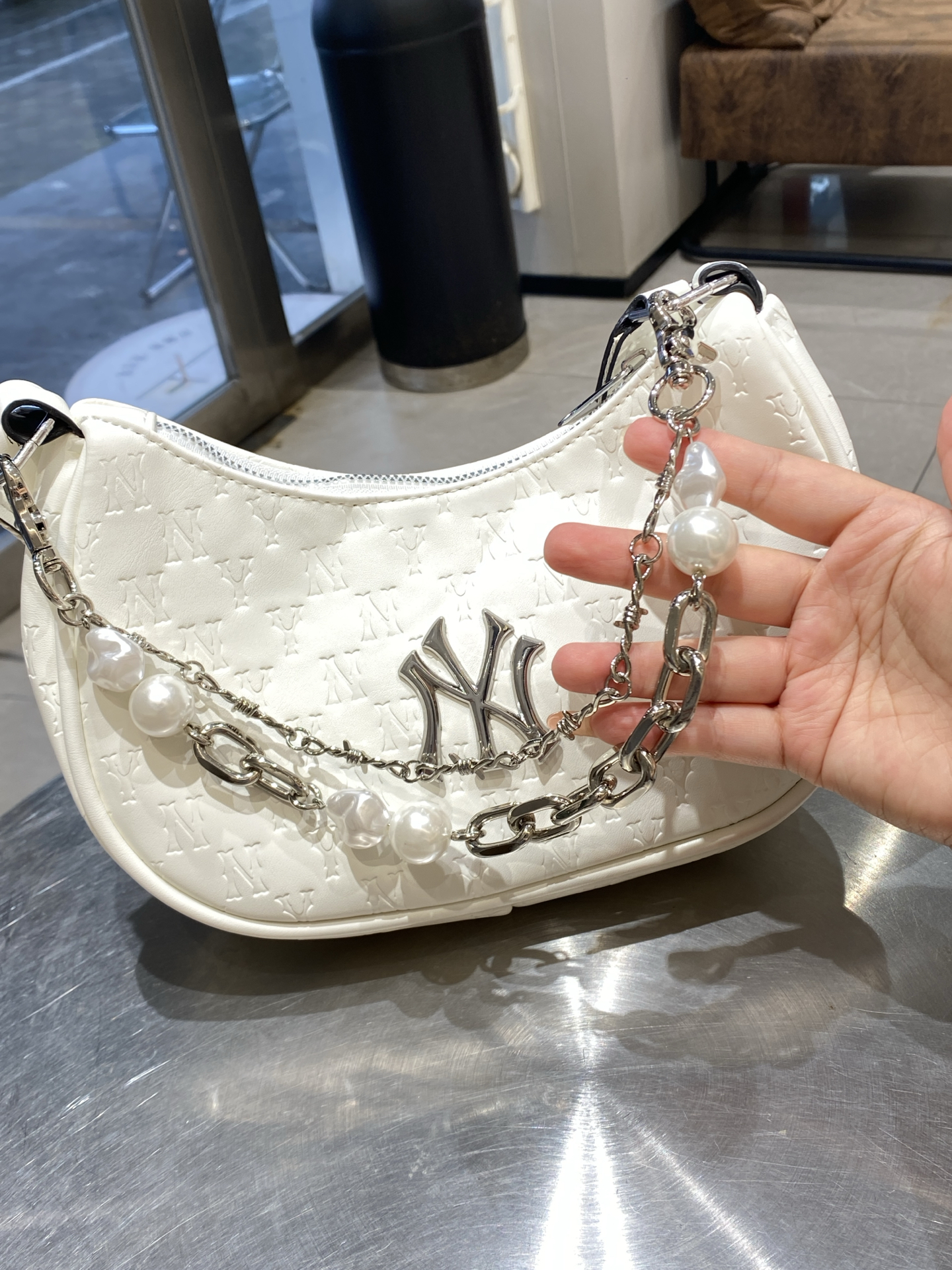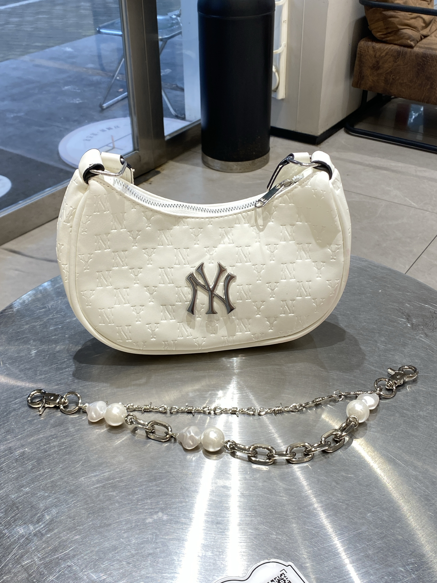 最近挖到一款超绝的腋下包😍!奶油白太温柔啦~暗纹老花好精致,关键是很耐造👌 配了珍珠链贵气加倍,通勤约会背都超合适!