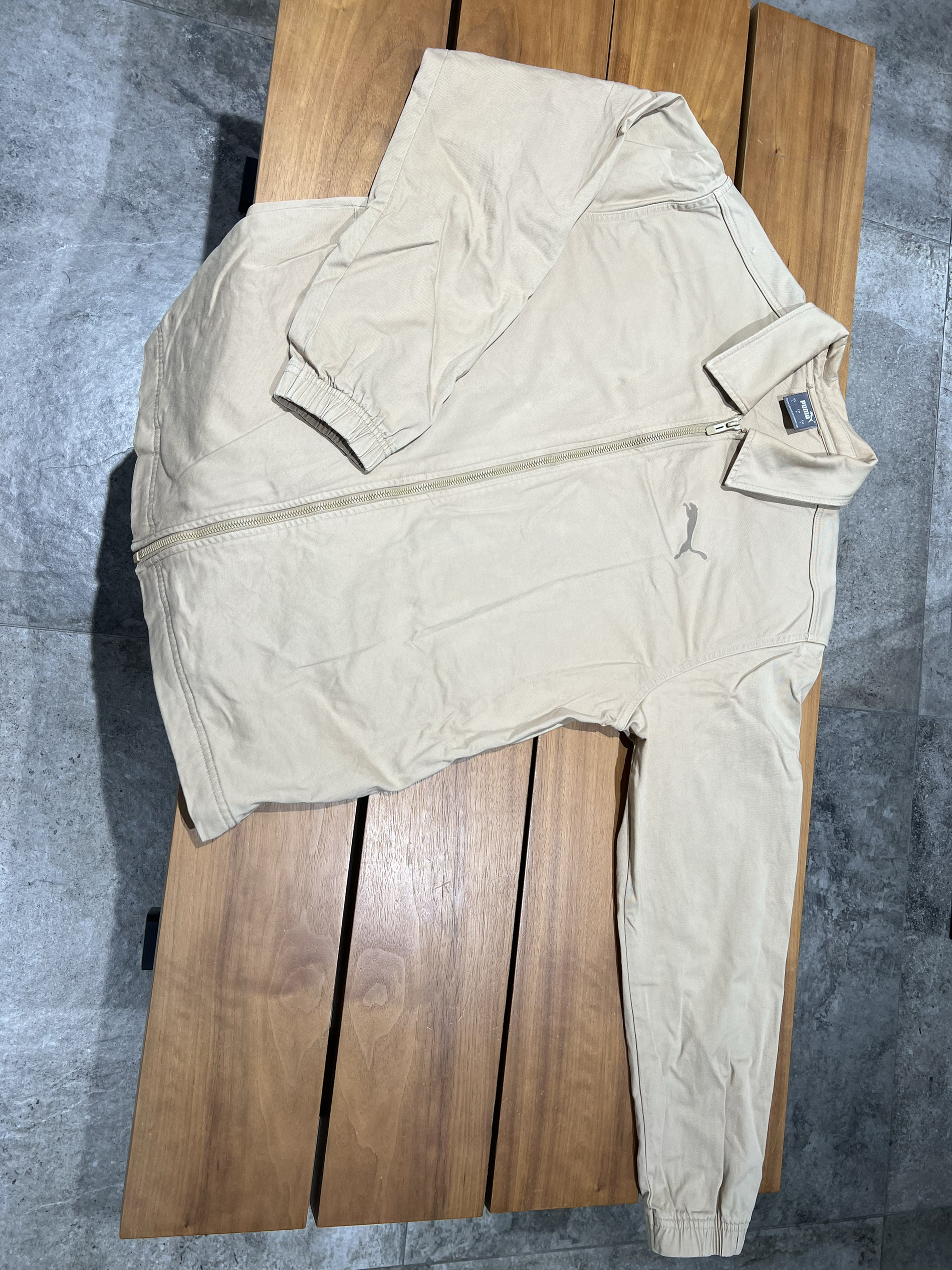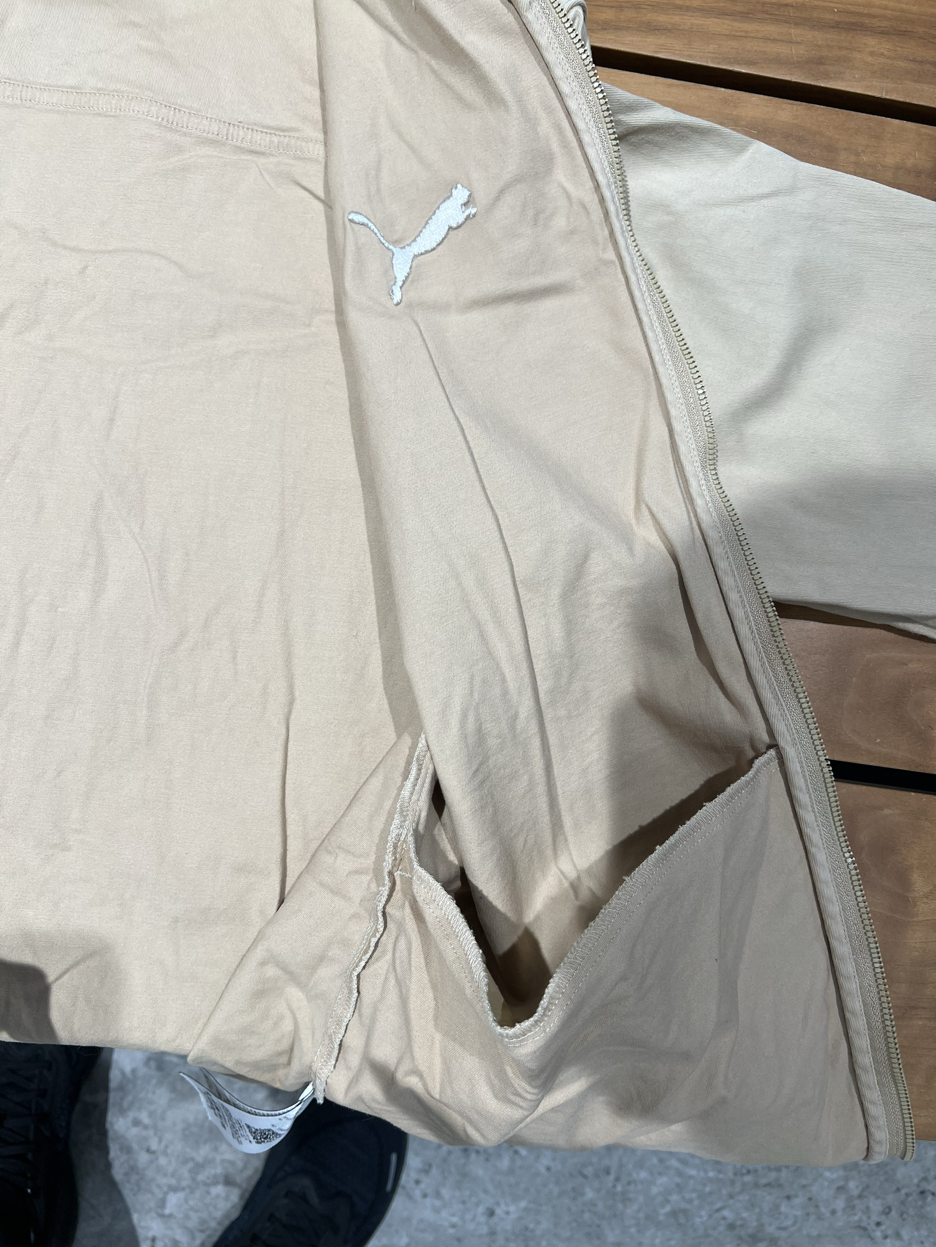复古回潮✨ 彪马卡其教练夹克 经典教练夹克版型,利落翻领+顺滑拉链,复古又时髦😎 卡其色超百搭,胸前小logo低调有质感~ 面料亲肤有筋骨,日常穿、citywalk 都很适配,轻松拿捏松弛感穿搭🍃 尺码[具体尺码],成色如图,上身效果参考第二张,喜欢复古风的兄弟别错过,速来带走🔥