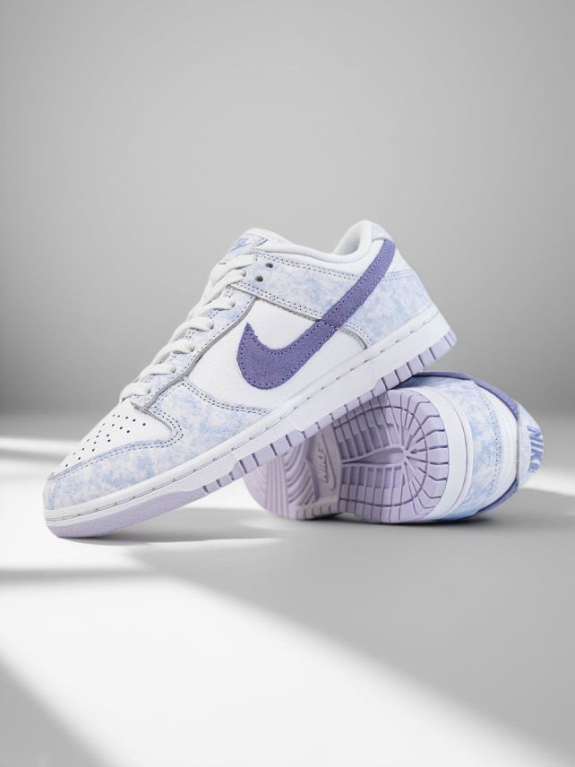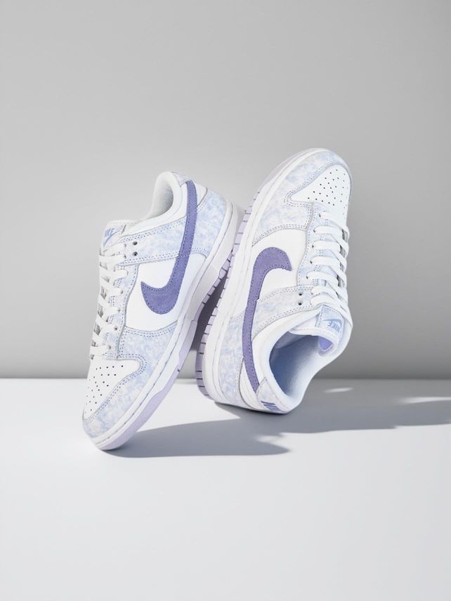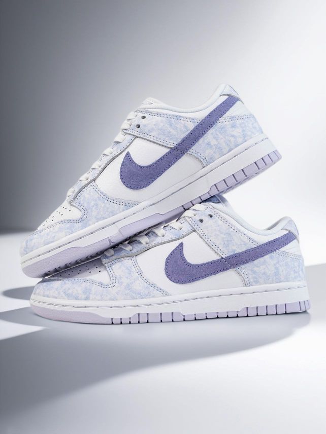 最近入手了NIKE DUNK LOW ,实物比图片还好看!淡紫、浅蓝的配色,像把春日晴空穿在脚上。 皮质鞋面很有质感,脚感舒适,日常走路、运动都不累。搭配牛仔裤、短裙都很绝,轻松营造清新氛围,每次穿它出门,都感觉自己活力满满,是会无限回购的宝藏鞋款。