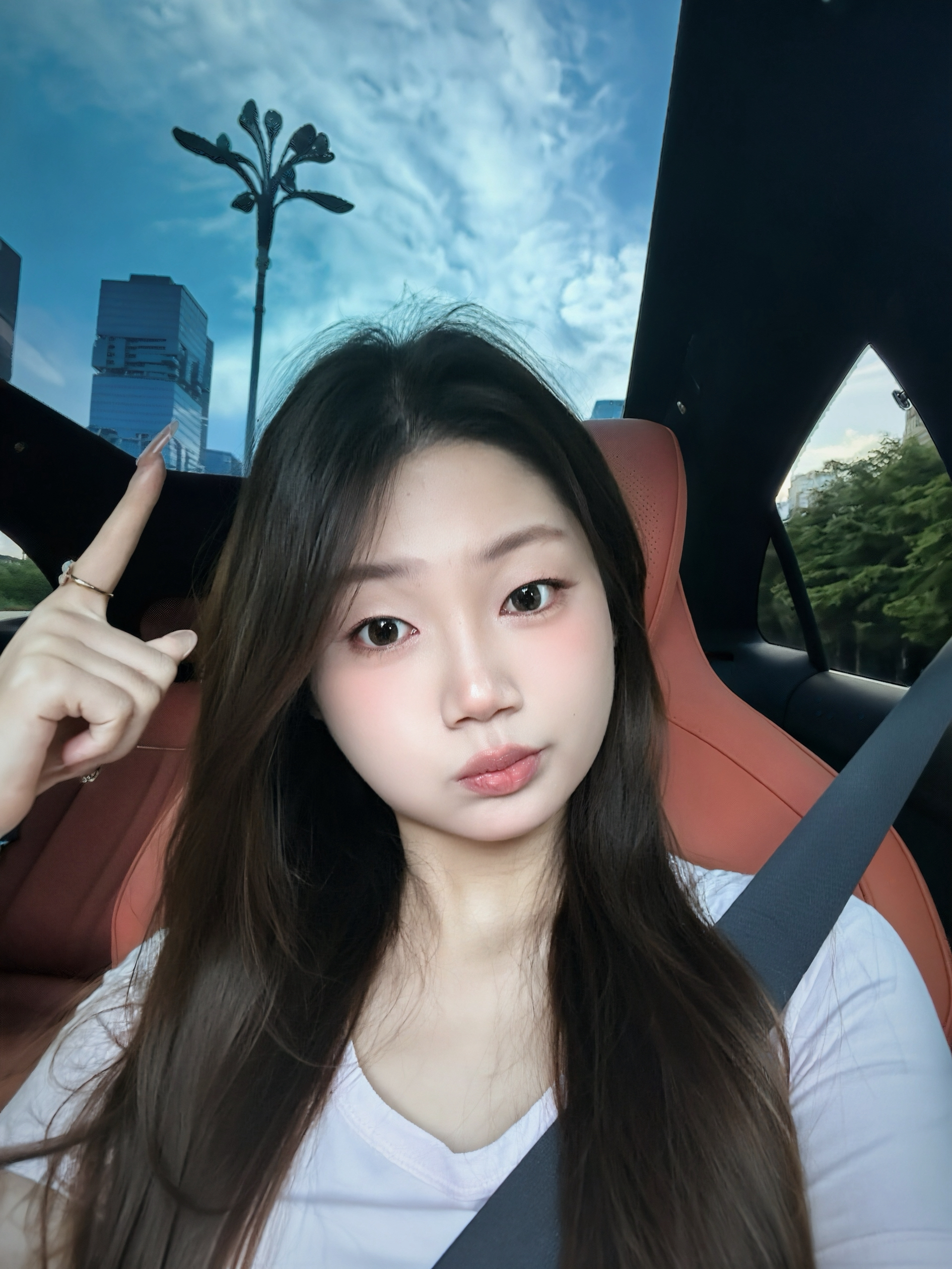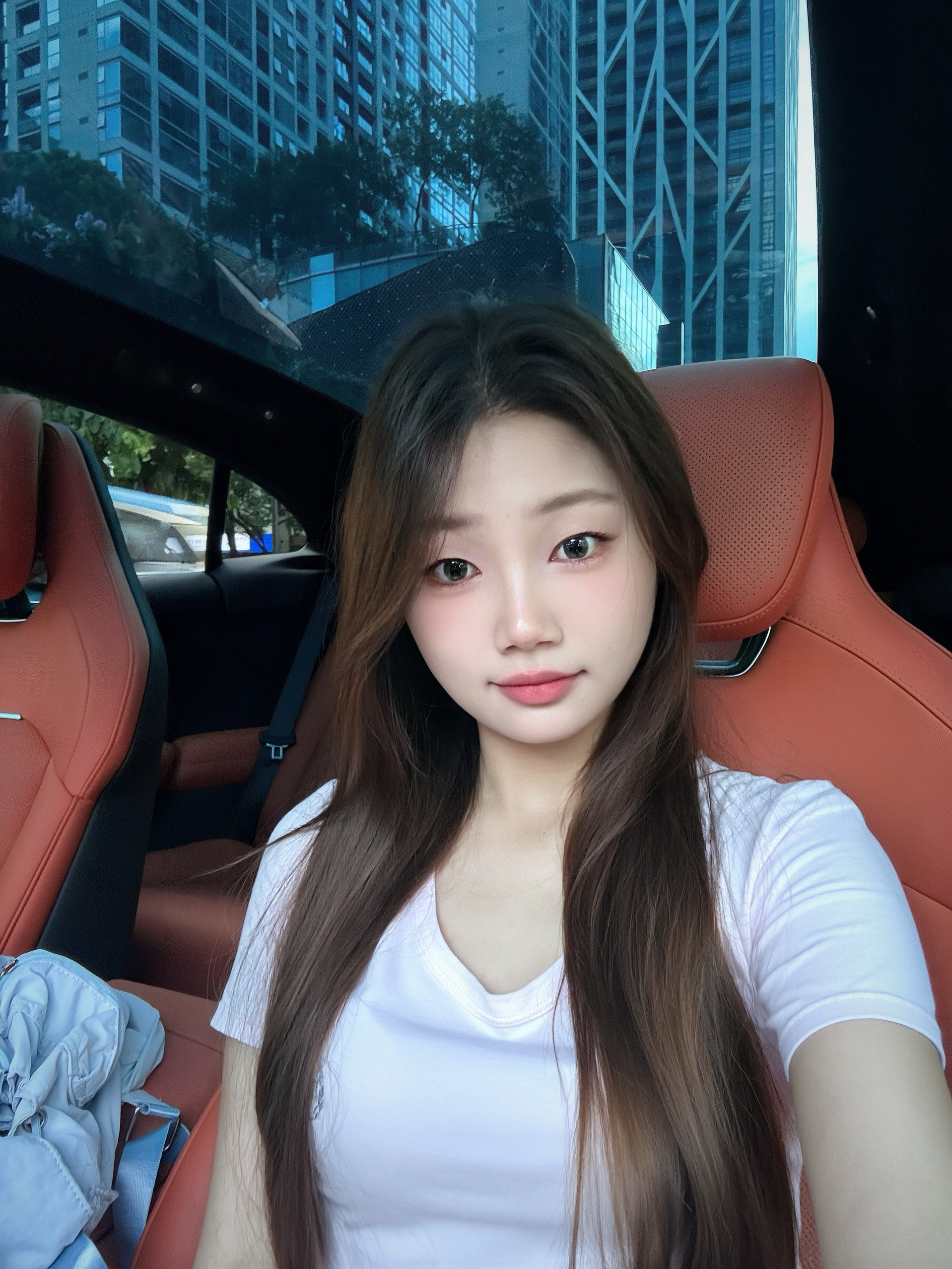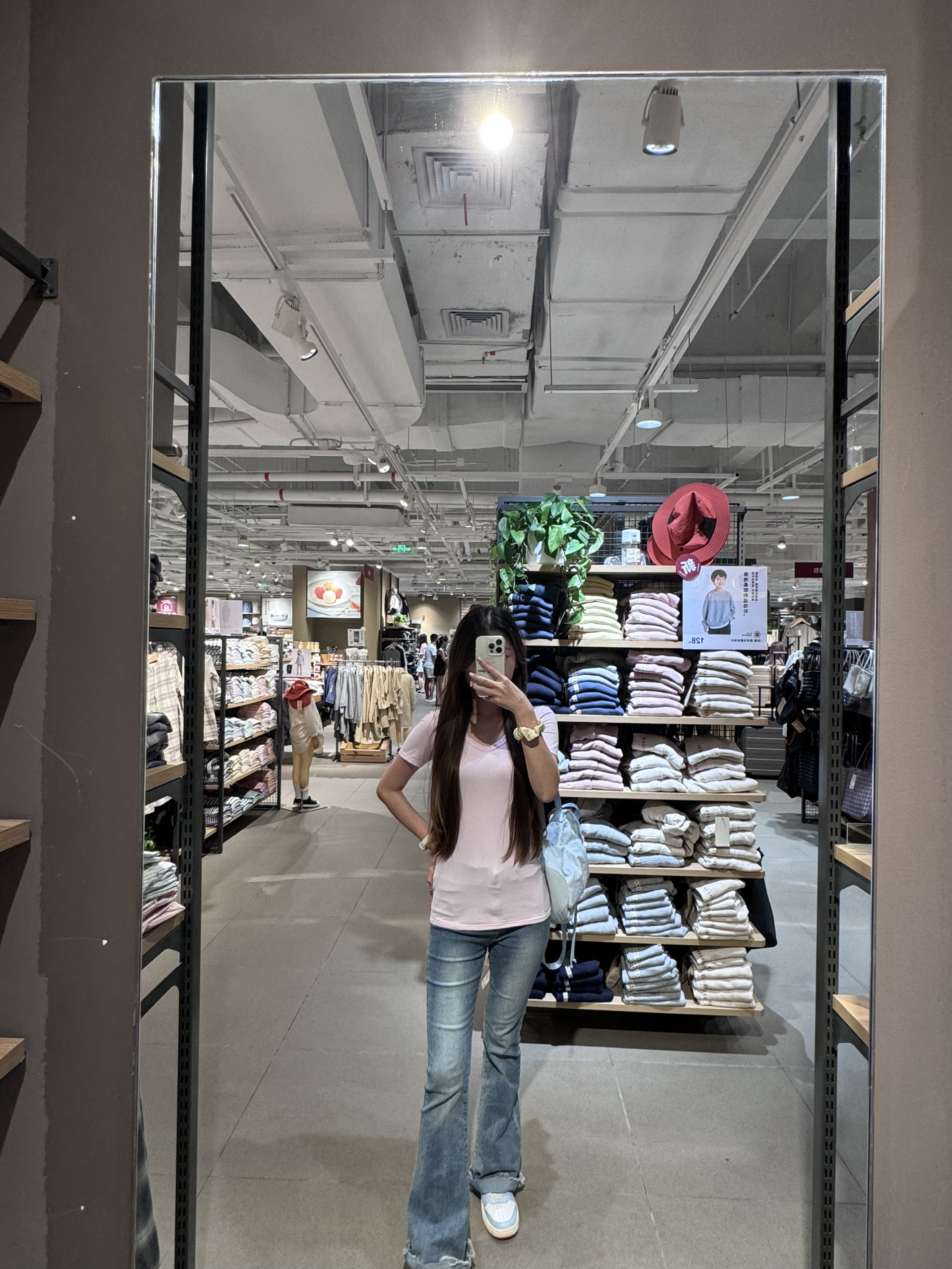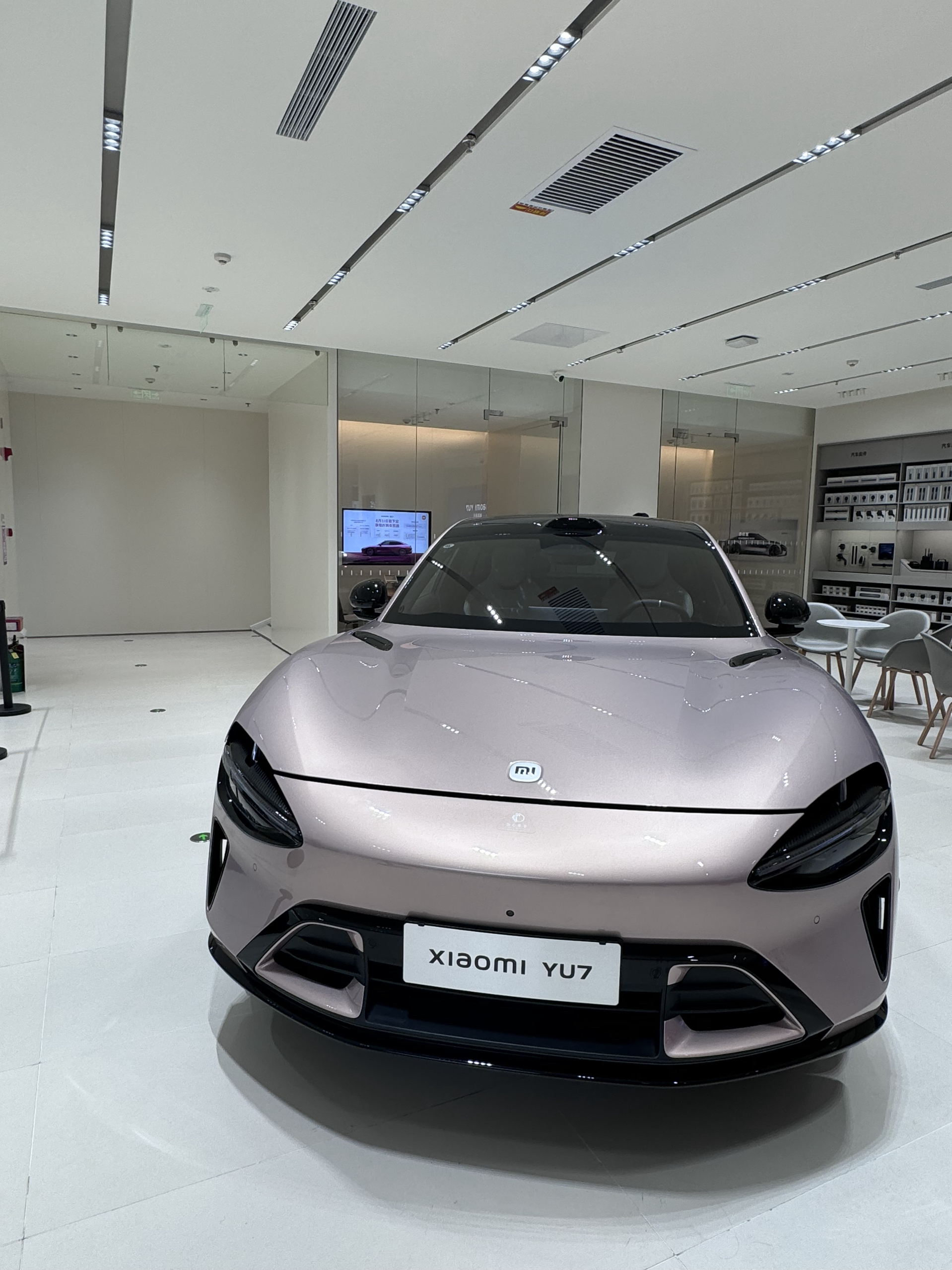 逛商场路过小米之家 看见yu7好帅 进去参观试驾了一下 今天穿搭是DG的粉色t恤➕水洗牛仔喇叭裤 穿nike的冰淇淋配色板鞋 整体修身显瘦显腿长 活力满满女大感!