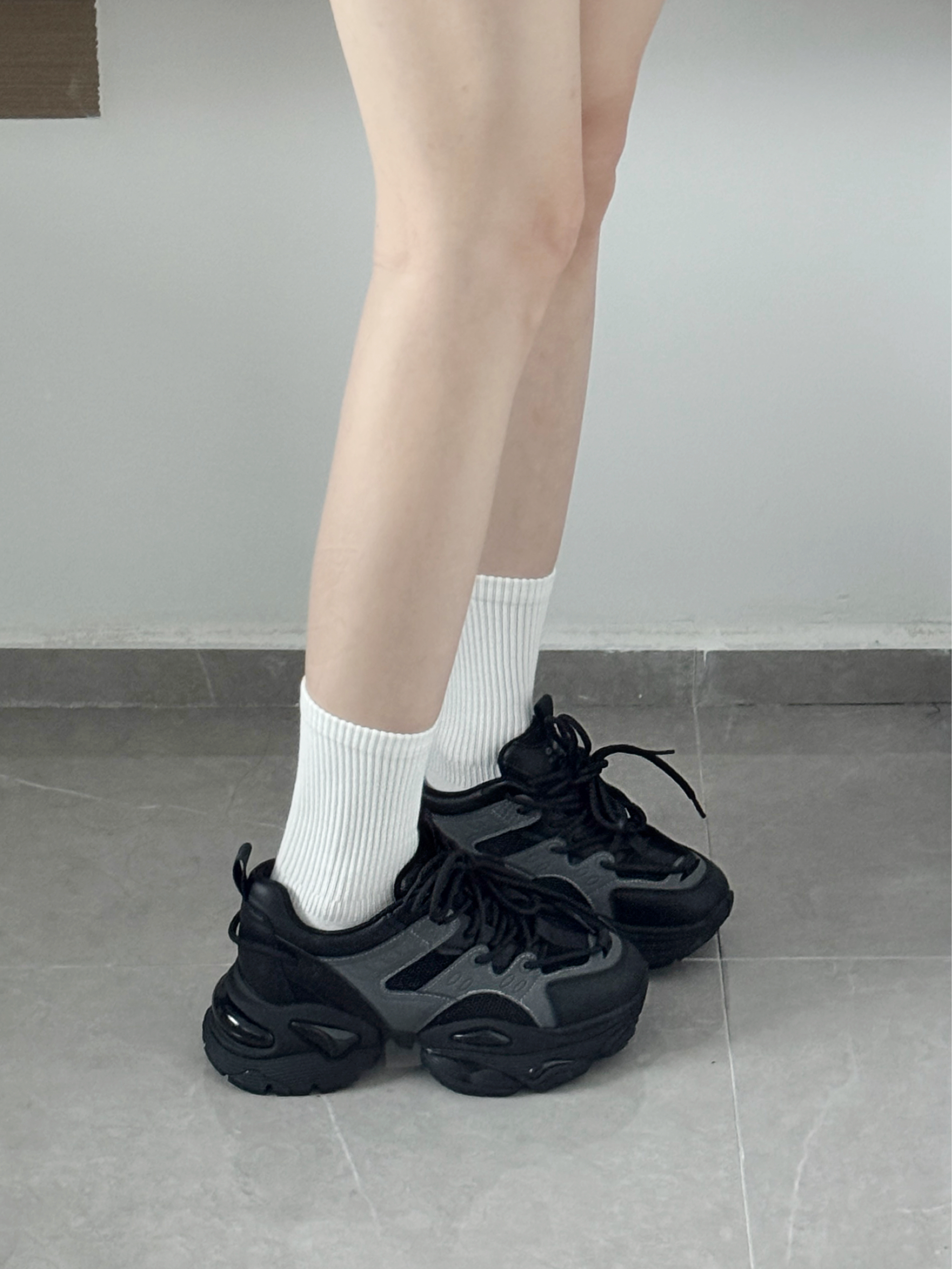 黑色老爹鞋也泰酷啦 厚底增高好显腿长腿细~ 搭配T恤七分裤一套好帅气😎