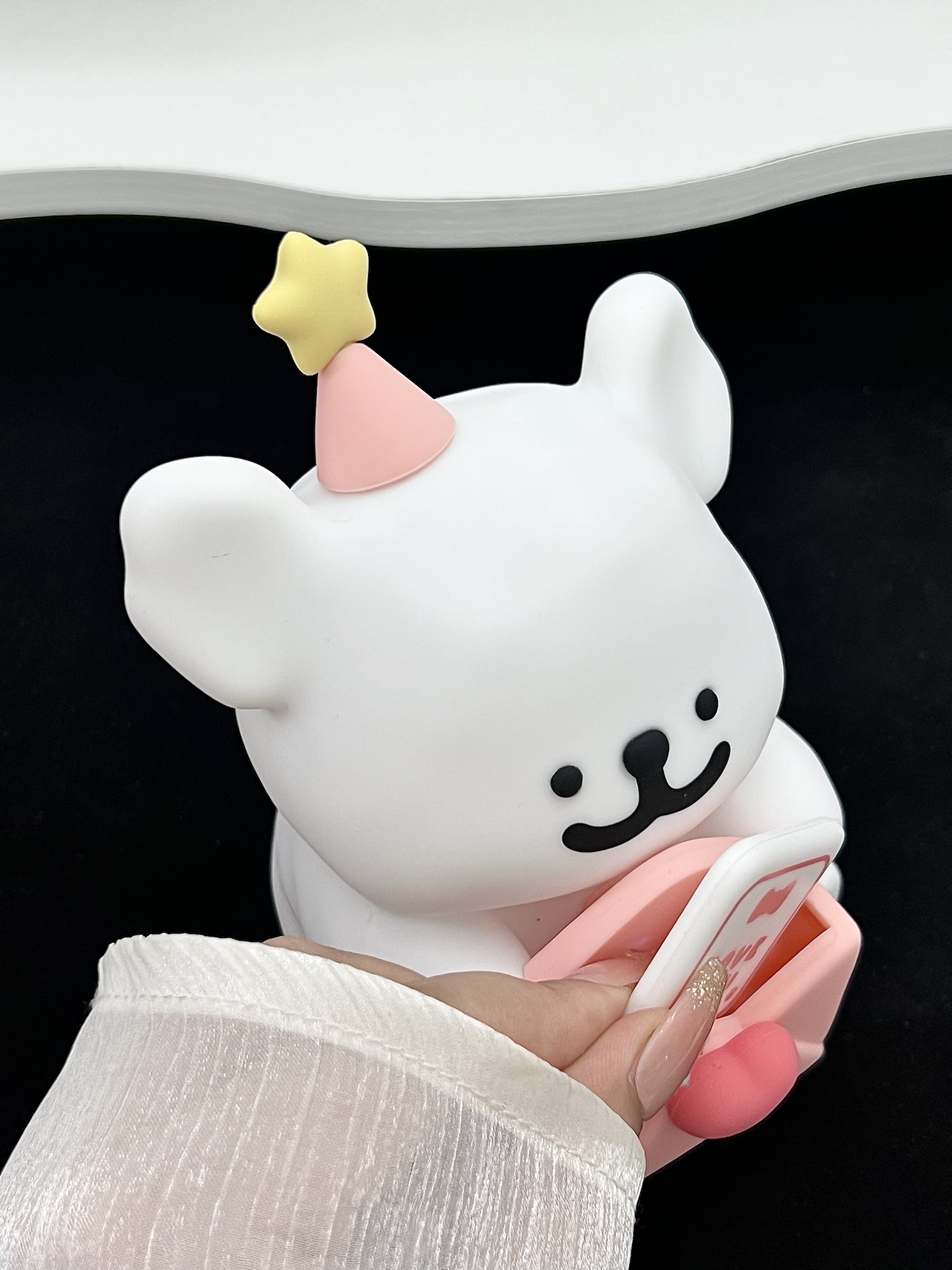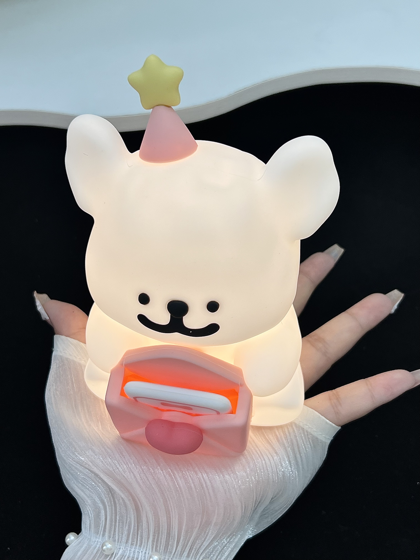 是可可爱爱的线条小狗夜灯呀 看到真滴360度心动啦 敲多小周边就是本E人的挚爱 轻轻一捏就可以更换亮度 还可以设置30S定时关闭 我觉得这个自用或者送礼也hin合适