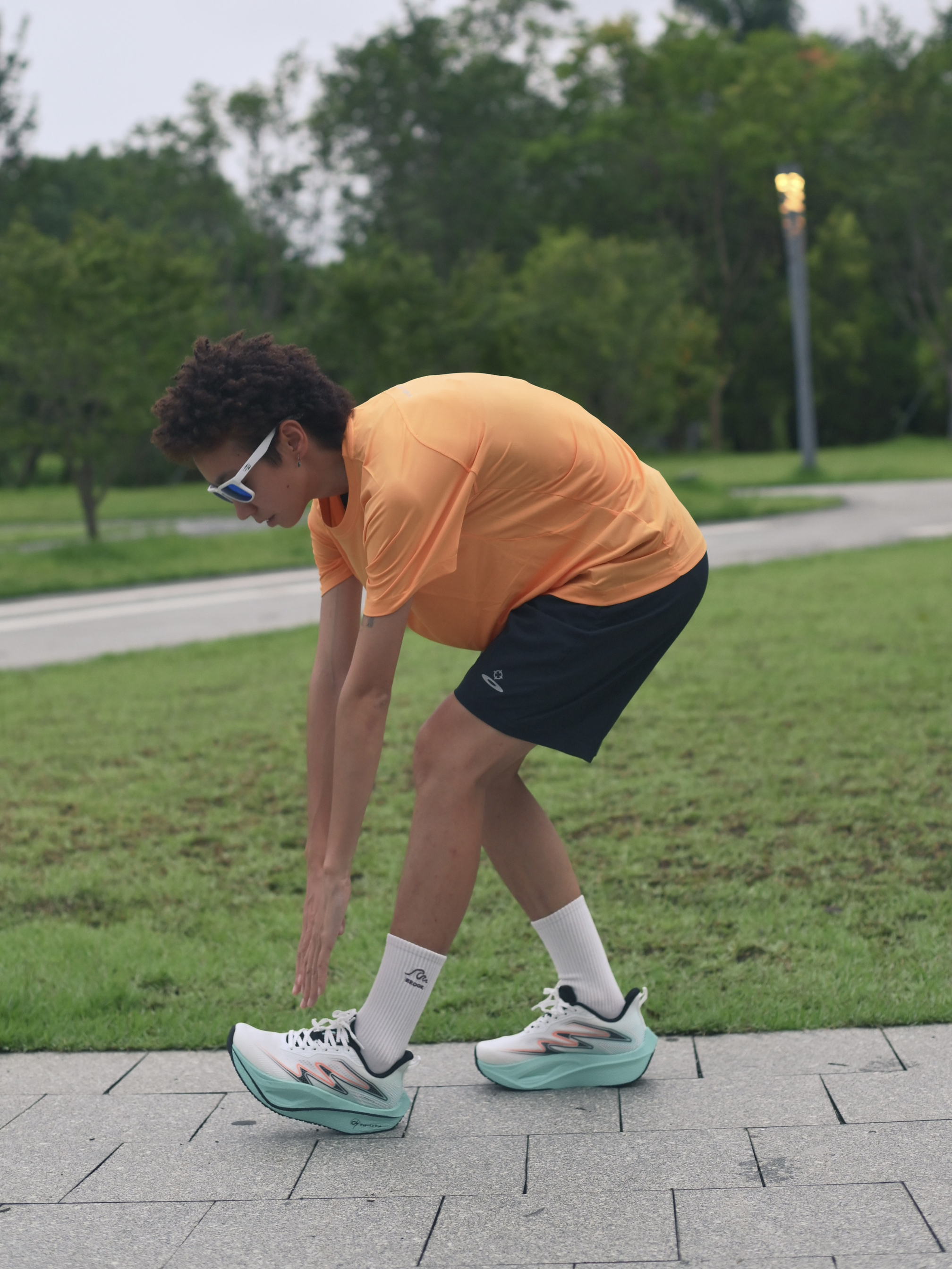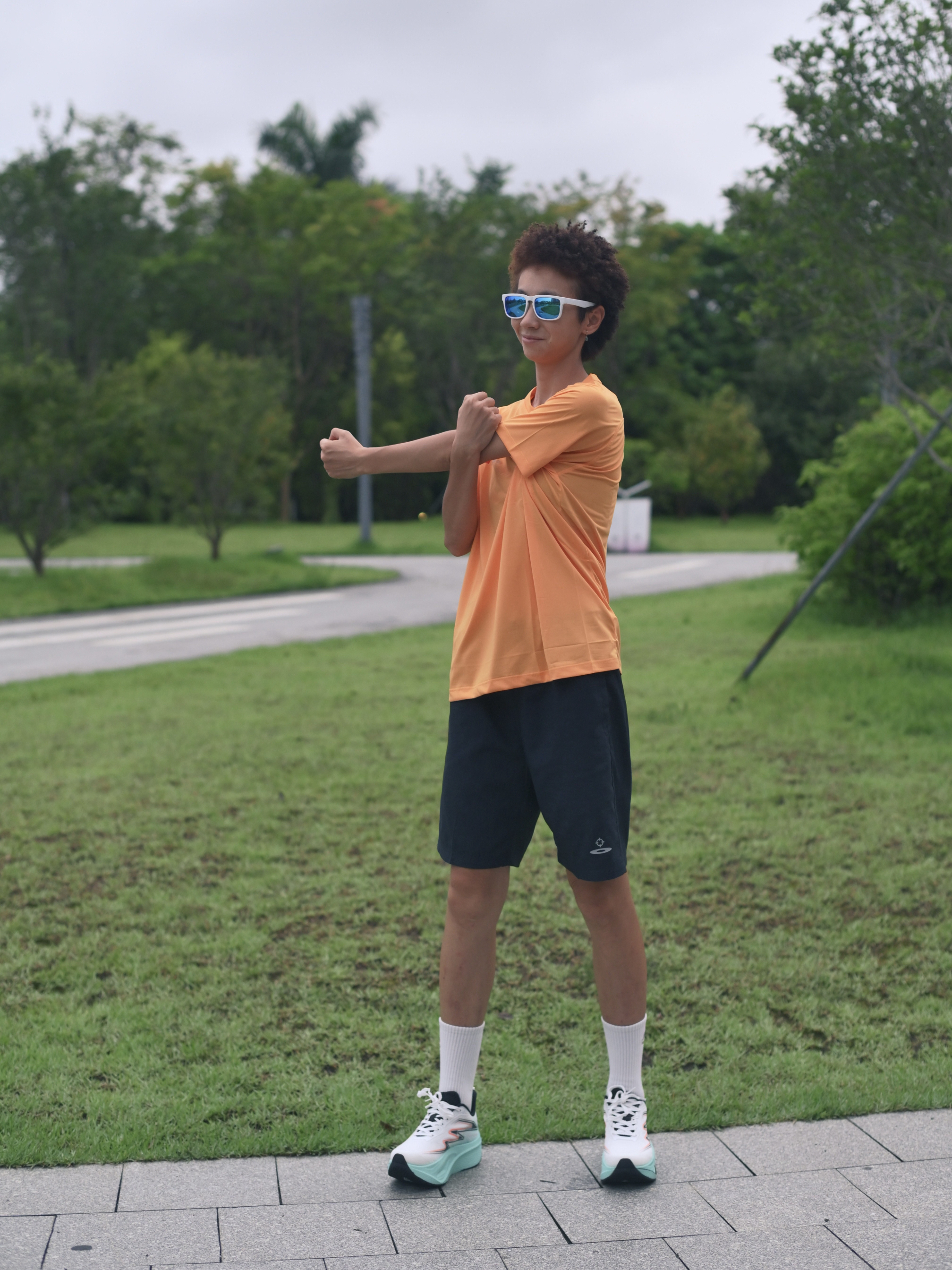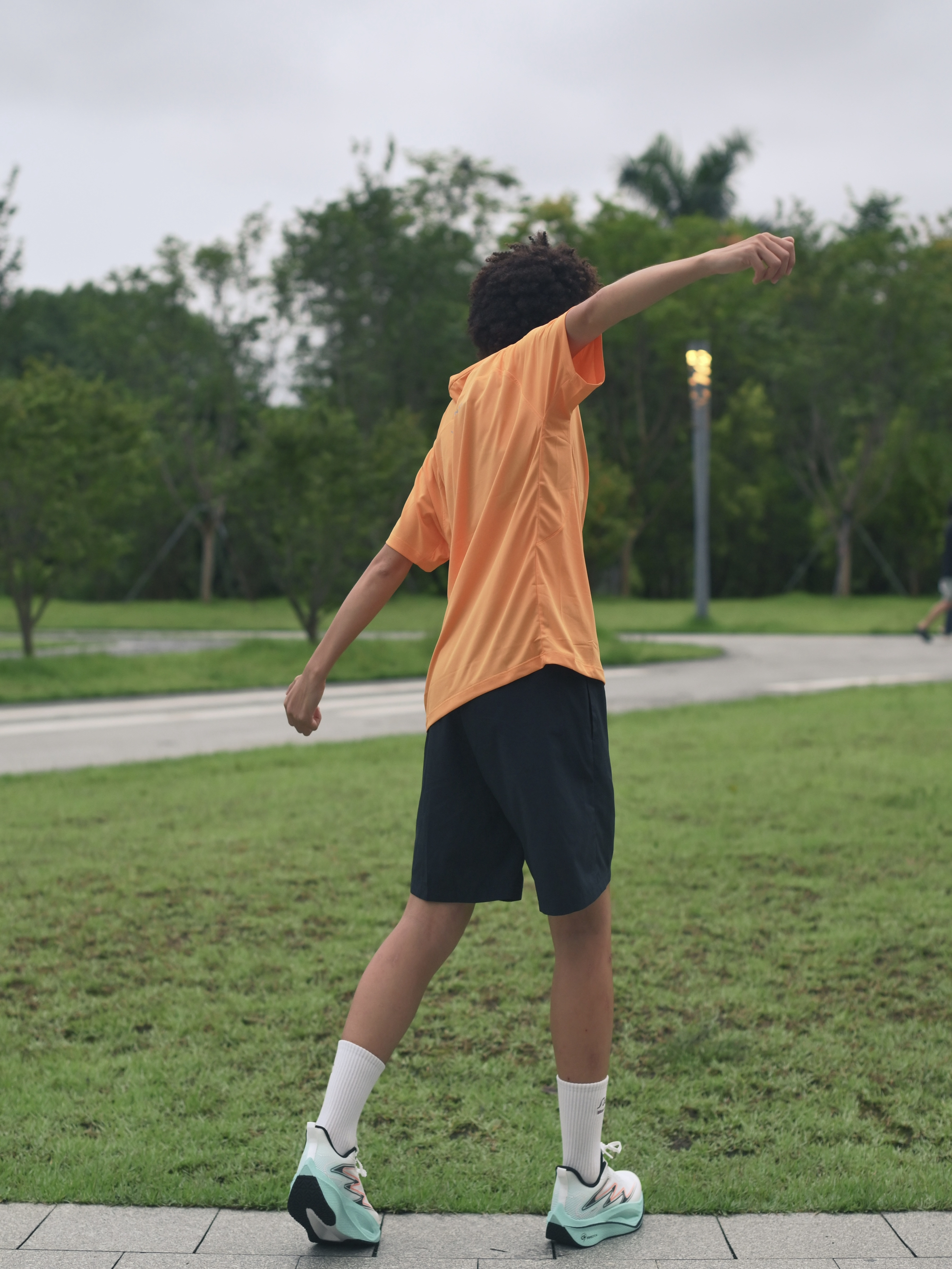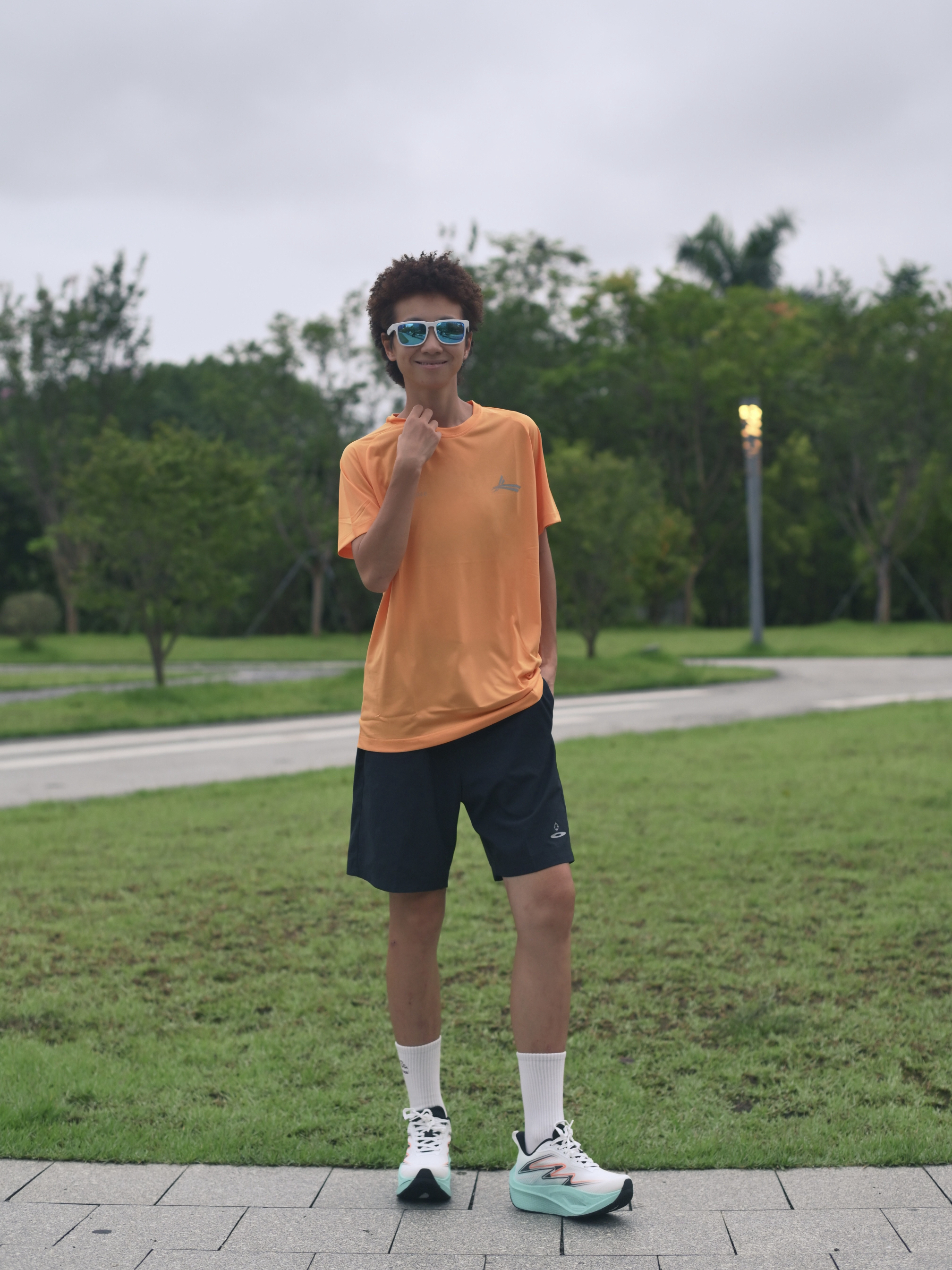 欢迎进入无敌小圆哇子的穿搭分享频道 172CM|55KG 👔:m👖:m|👟:39码 夏日运动也要玩转高能配色! 🧡 上身橙色调凉感T恤上身瞬间提亮肤色,自带活力滤镜。 速干面料实时排汗耶👏 福州高温天贴肤依旧清清爽爽 下身搭配黑色短裤⬛️,穿上跑鞋 Gogogo