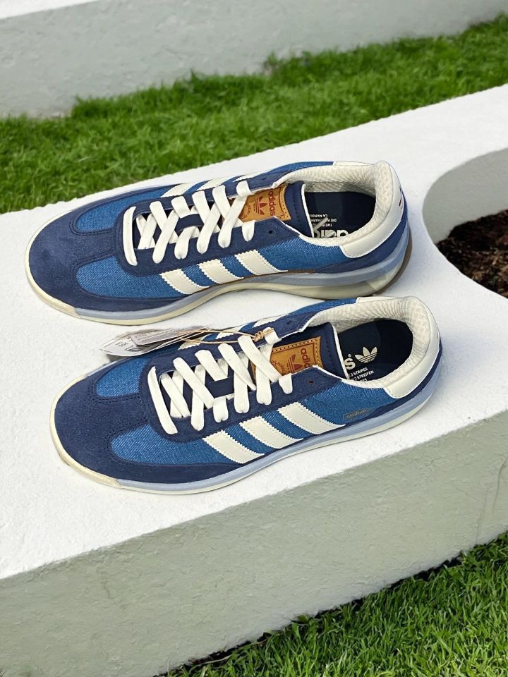 三叶草SL72rs 牛仔蓝 深浅牛仔双拼 鞋舌处牛仔裤边的那种皮革设计