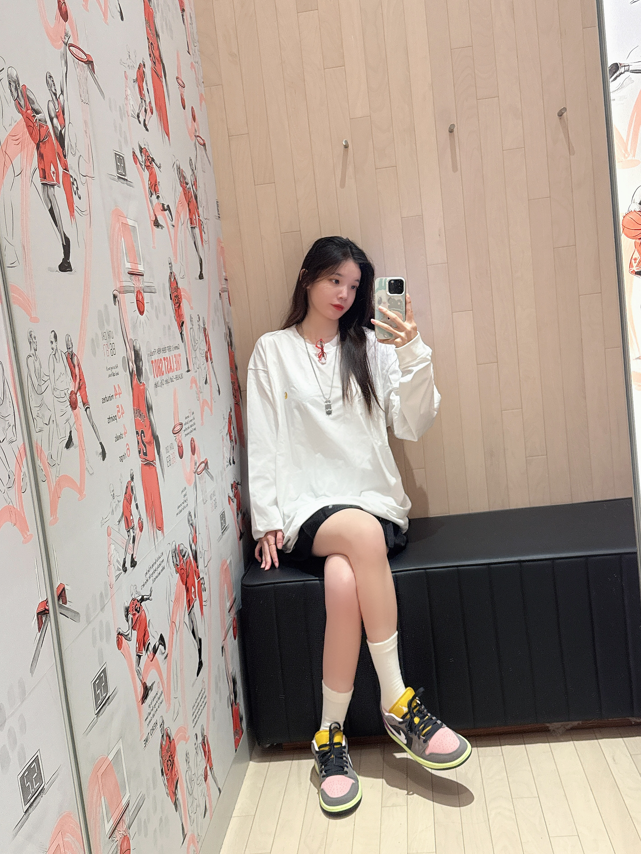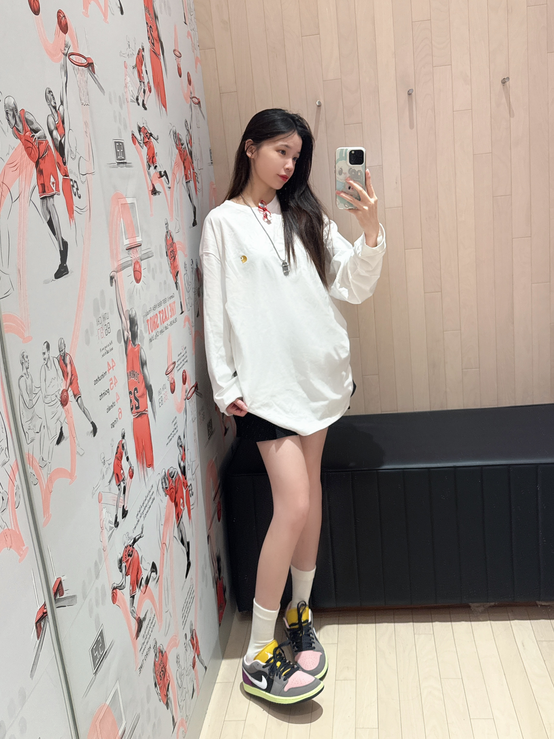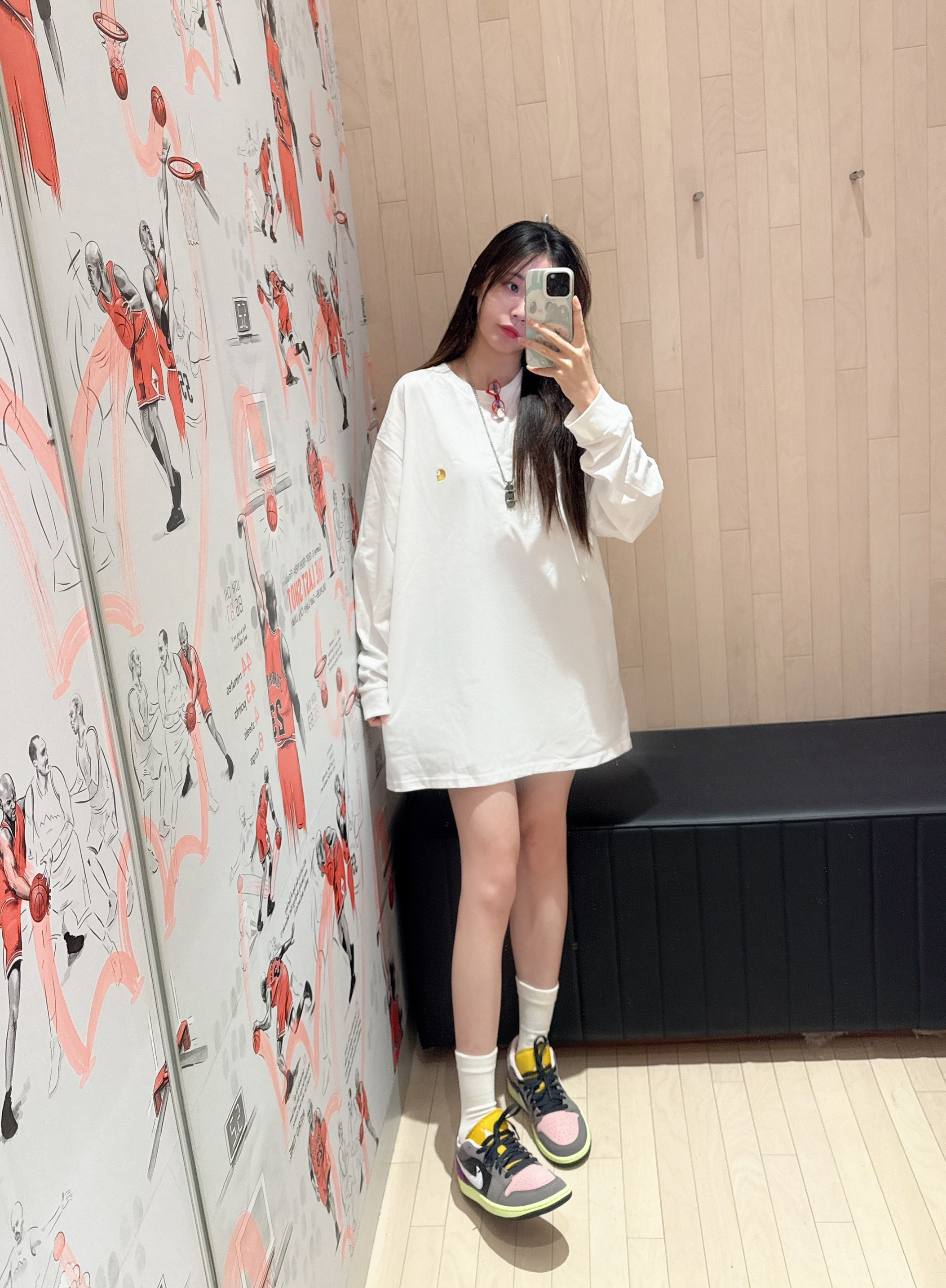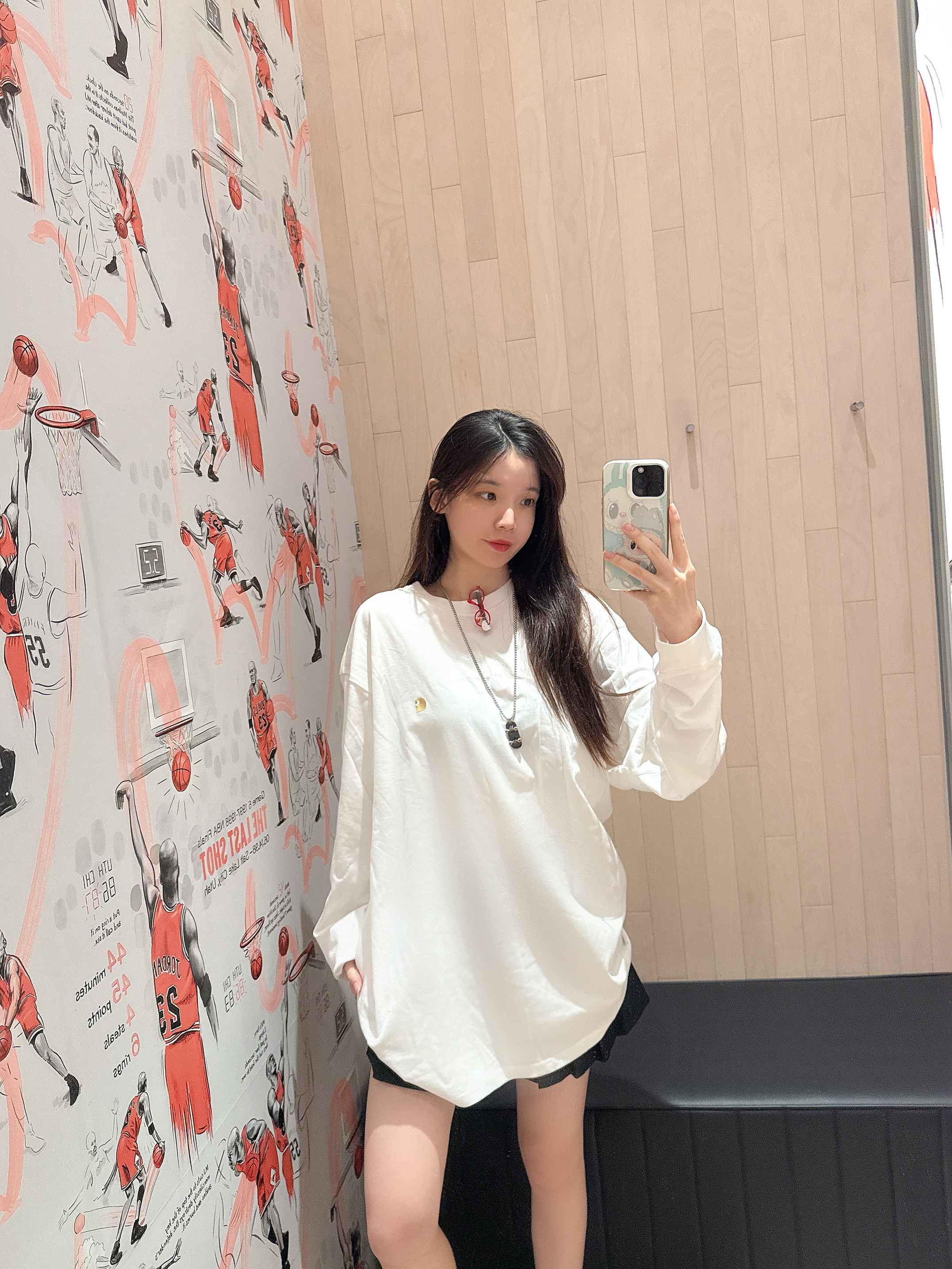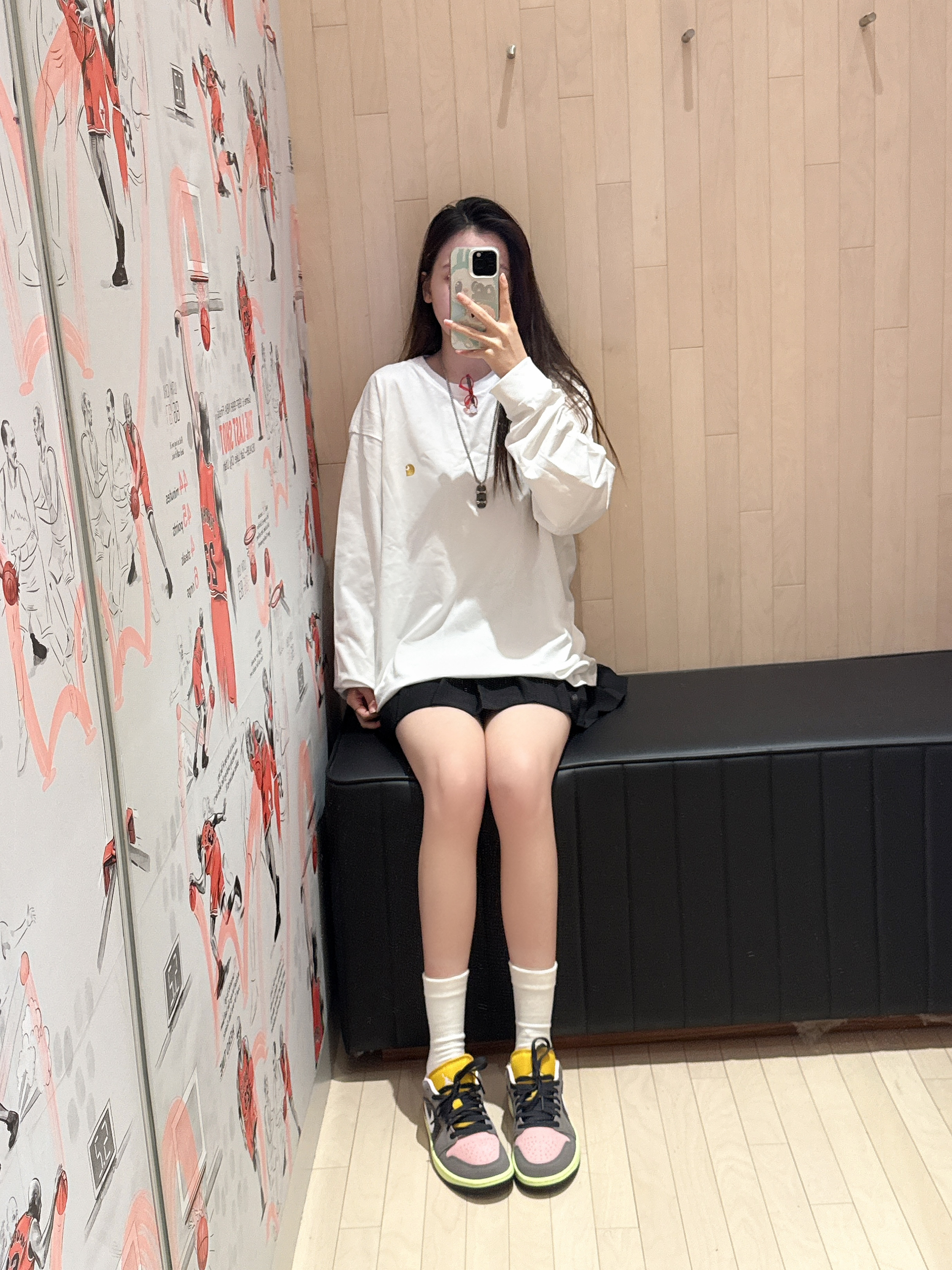 今日穿搭宽松白T➕黑色百褶裙 👕是 Carhartt 🏠的长袖T 宽松版型上身松弛有度👌 厚度刚刚好 单穿或者当内搭都很nice 胸口做了简单logo🪡刺绣 日常搭配牛仔裤或者休闲裤都很不错 👩166/43kg M码 👟是AJ1低帮新配色日常出街百搭神器😎