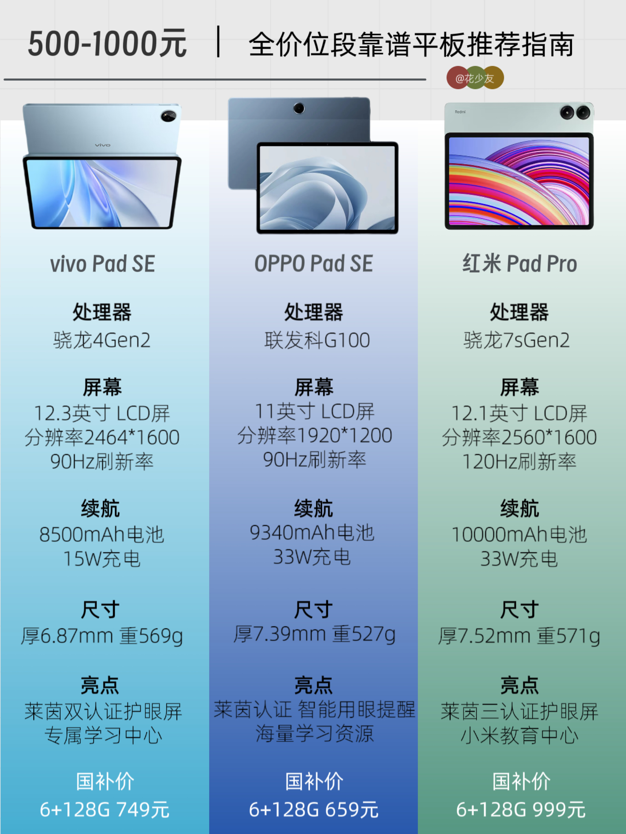vivo Pad SE:12.3英寸护眼柔光屏,护眼高清。骁龙4gen2处理器日常使用流畅。还有专属学习中心,从学前到高中资源都有。