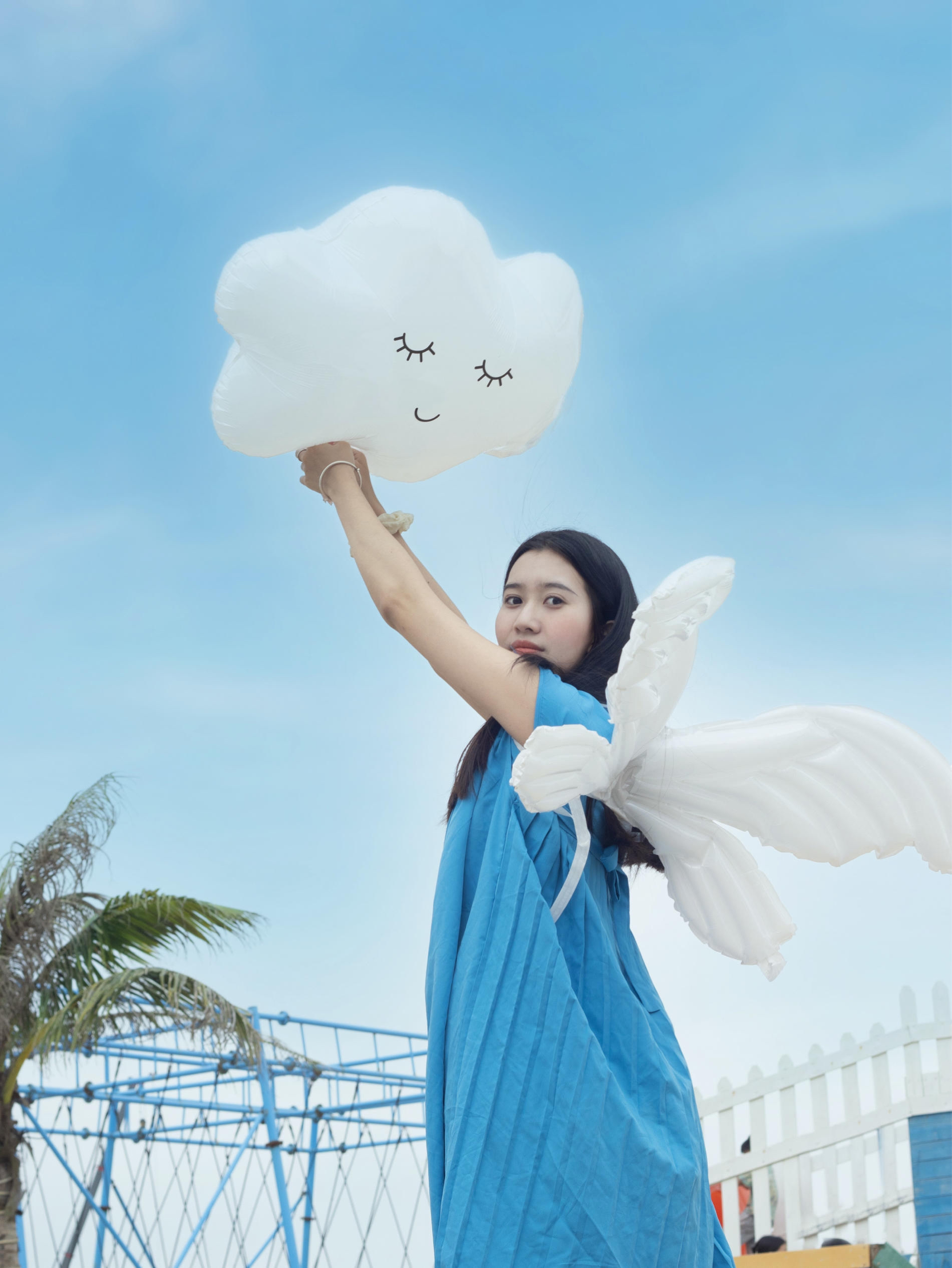 去海边拍照最注意点就是防晒和底妆啦,特别是防晒,不一小心就很容易晒黑,记得做好防晒!而且这套衣服跟海边也很搭配!