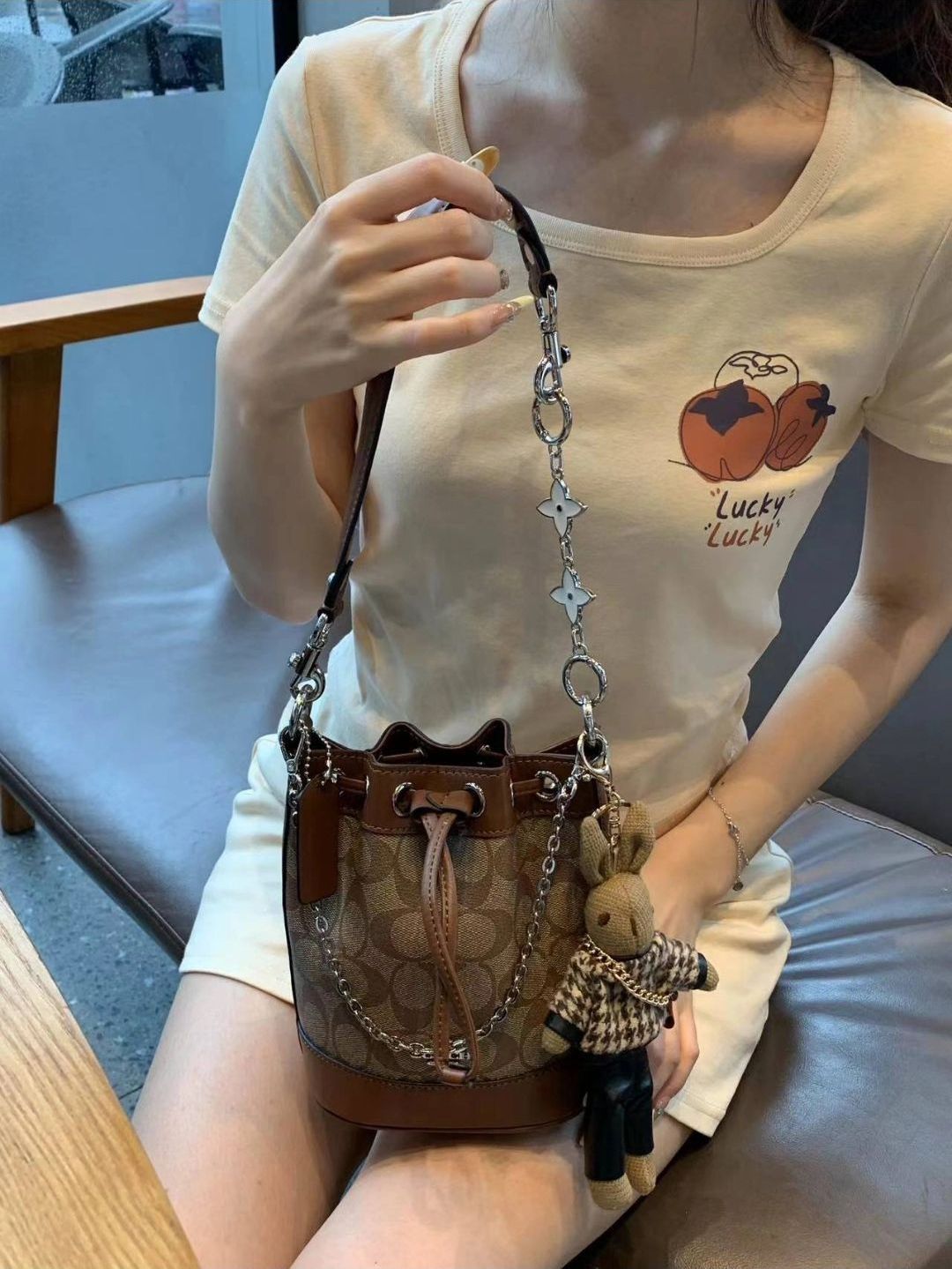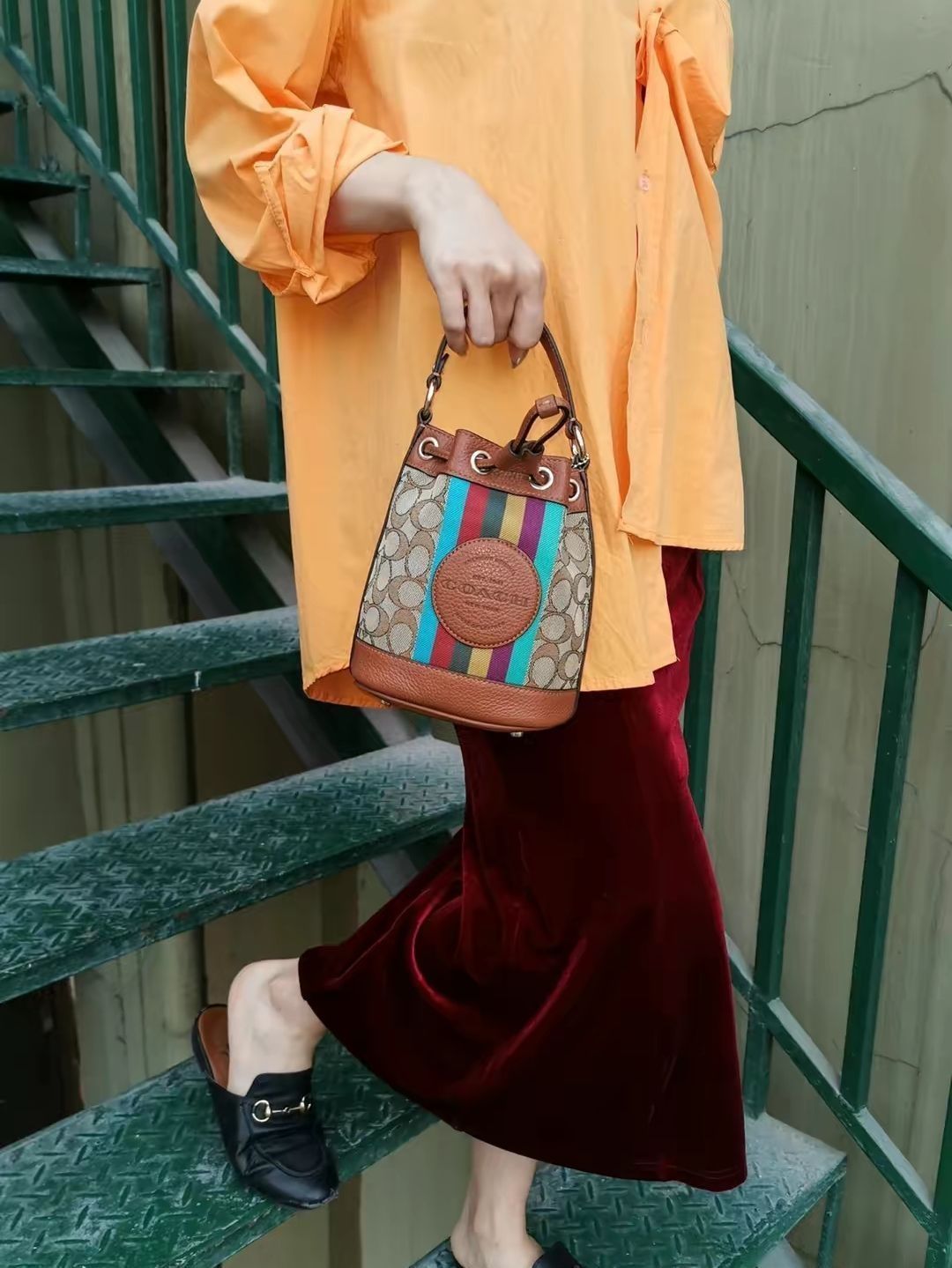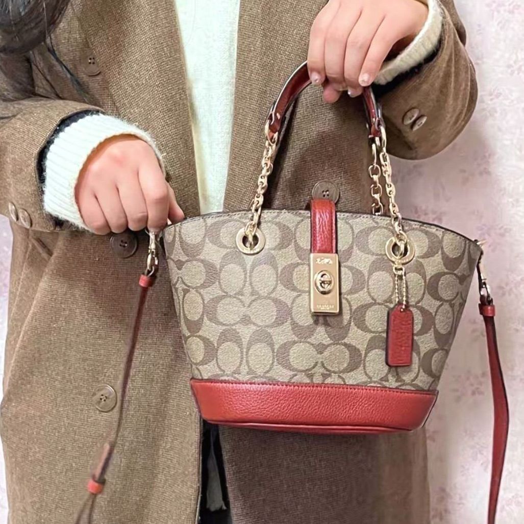 coach新款发财桶Rowan还是太权威了!! 164的我背上美得睡不着[机智_blue] 焦糖色真的很温柔很大气!! 💦水桶包型也好好看! 不开玩笑!!背上身整个人的气质都提升了好多 图源网络,侵删!