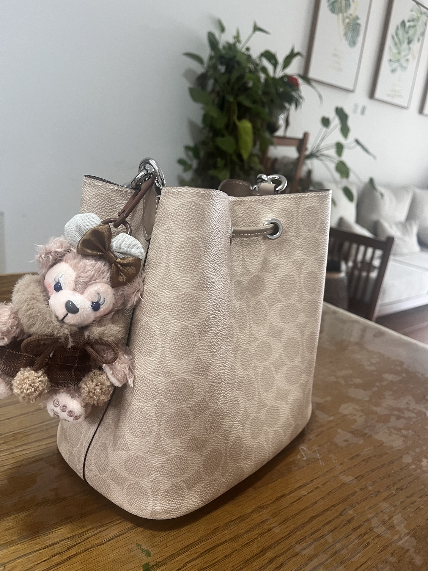 纠结好久奶茶色和棕色🥤,最终入了这个小拎包。 它自重超轻,手提单肩都好看,搭我的娃娃挂件绝美! 这个奶茶色也太适合夏天了,温柔又好搭衣服,不过没有夹层这点算个小缺点~ 总体还是超爱的😍!