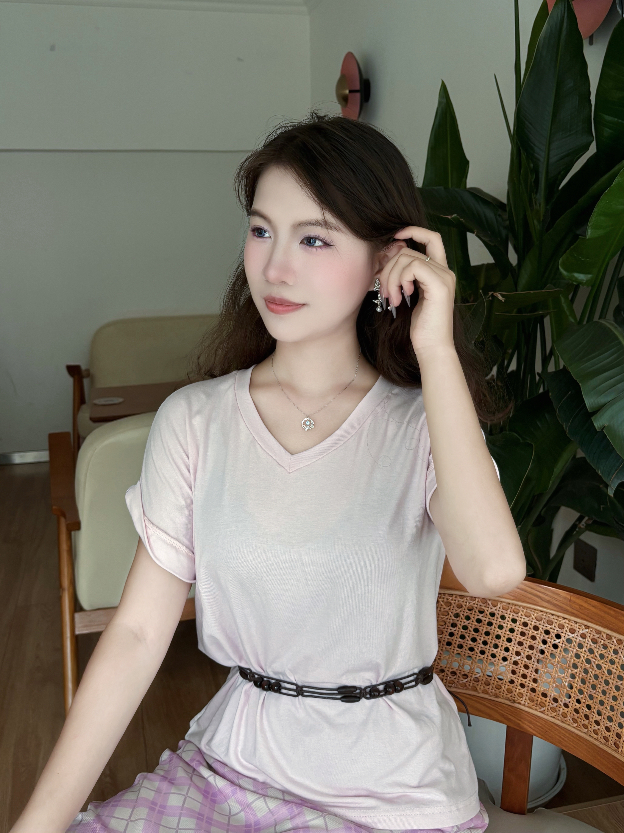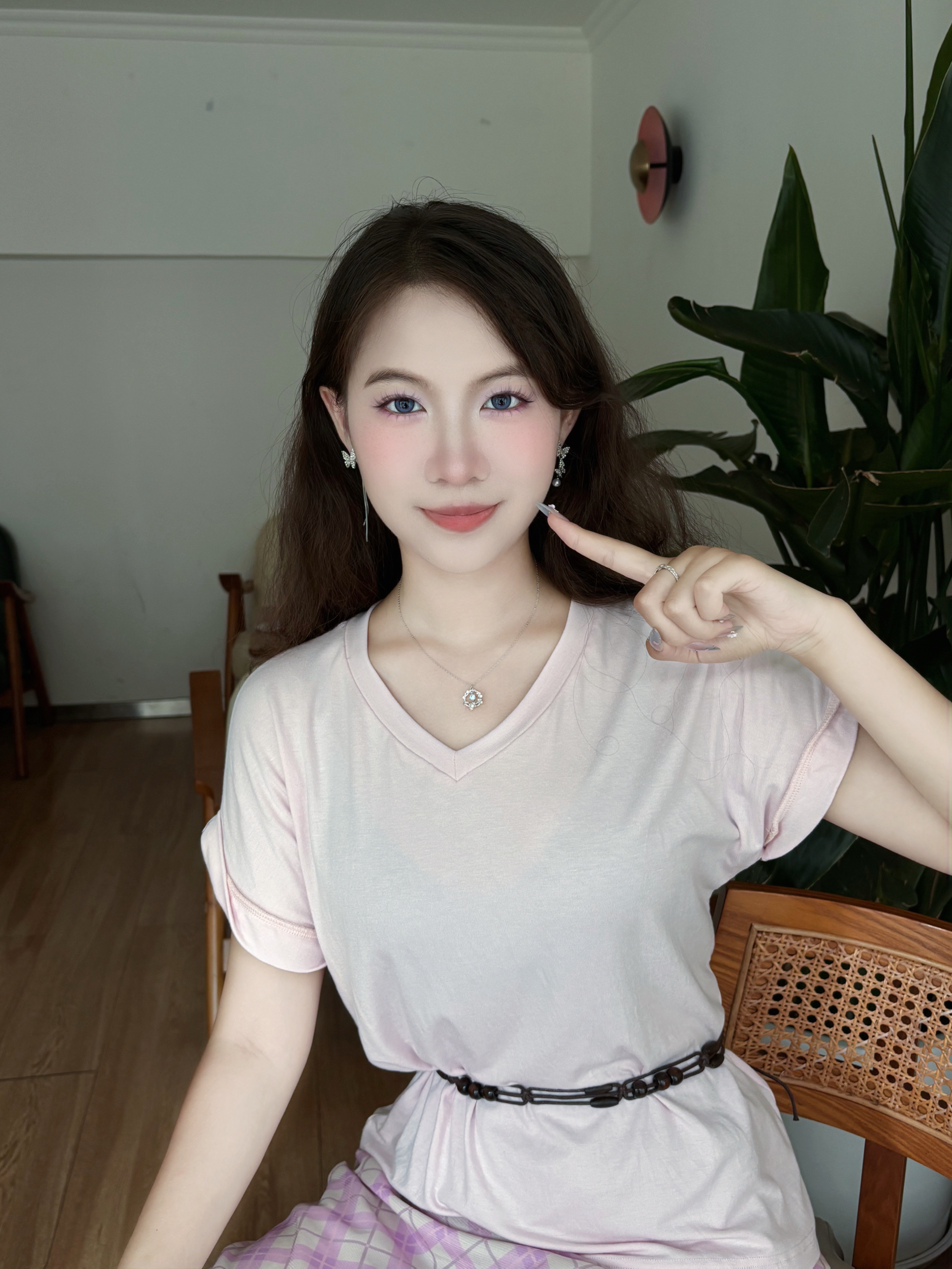 看上了很久 最终还是决定入手 上面是一件粉色V领T恤 下面是一件粉色格子长裙 腰间系一根腰带或者链条 腿粗的宝子有福了 这条裙子绝对不会漏腿 真的很nice我喜欢💕