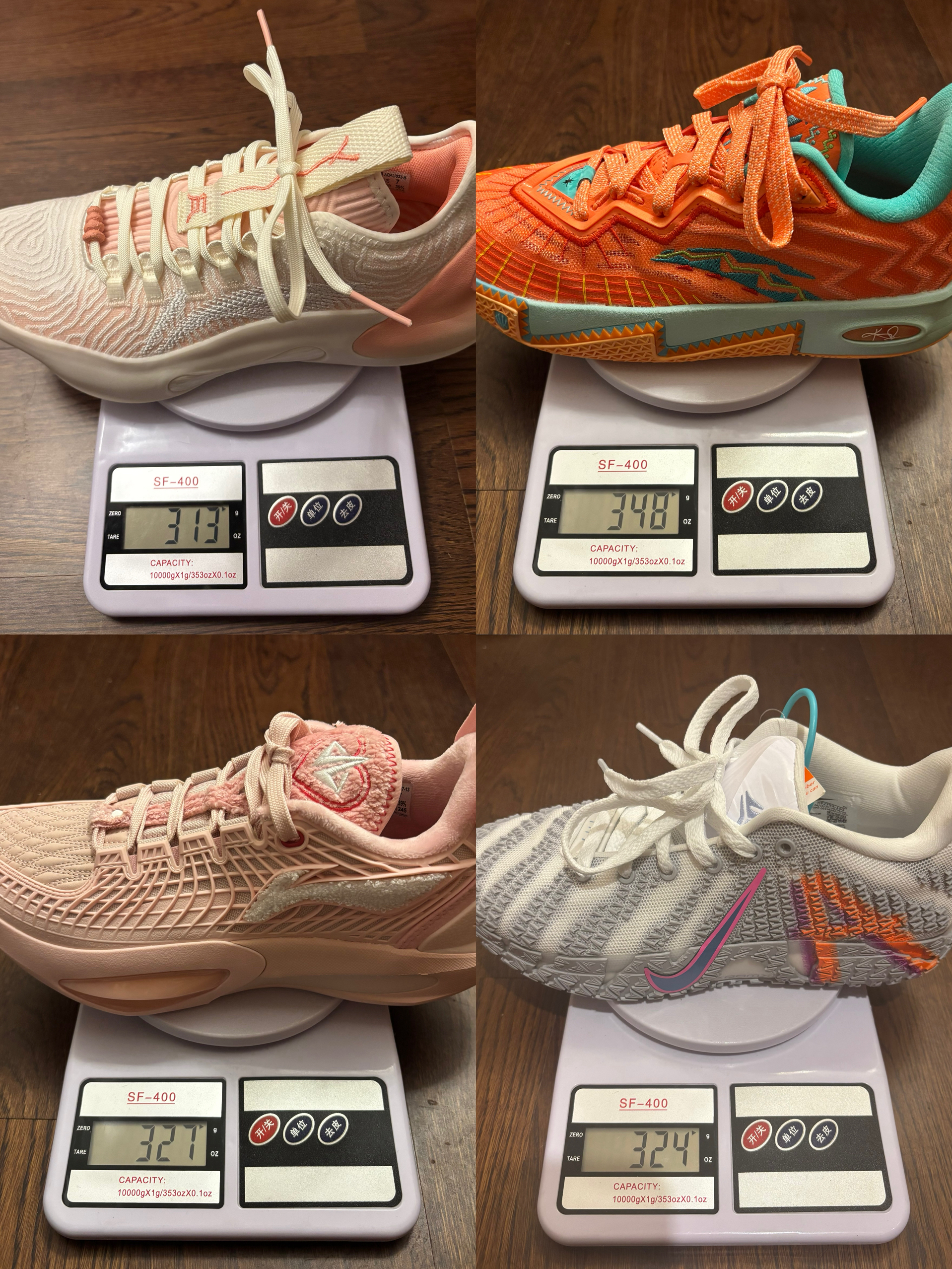 称一下手边的球鞋 三双签名鞋和一双旗舰 驭帅ultra和巴特勒三代是39.5码 Kai2是39码 Ja3是38.5码 大家可以参考一下