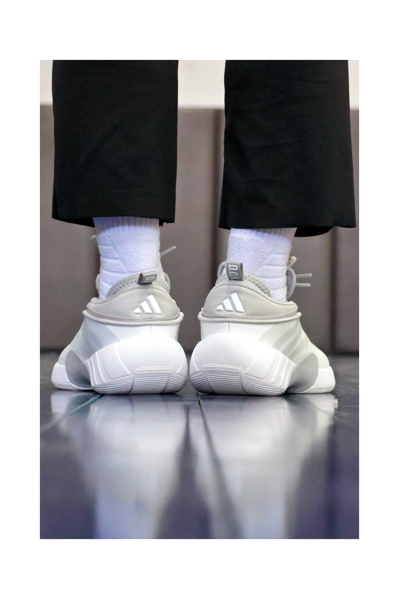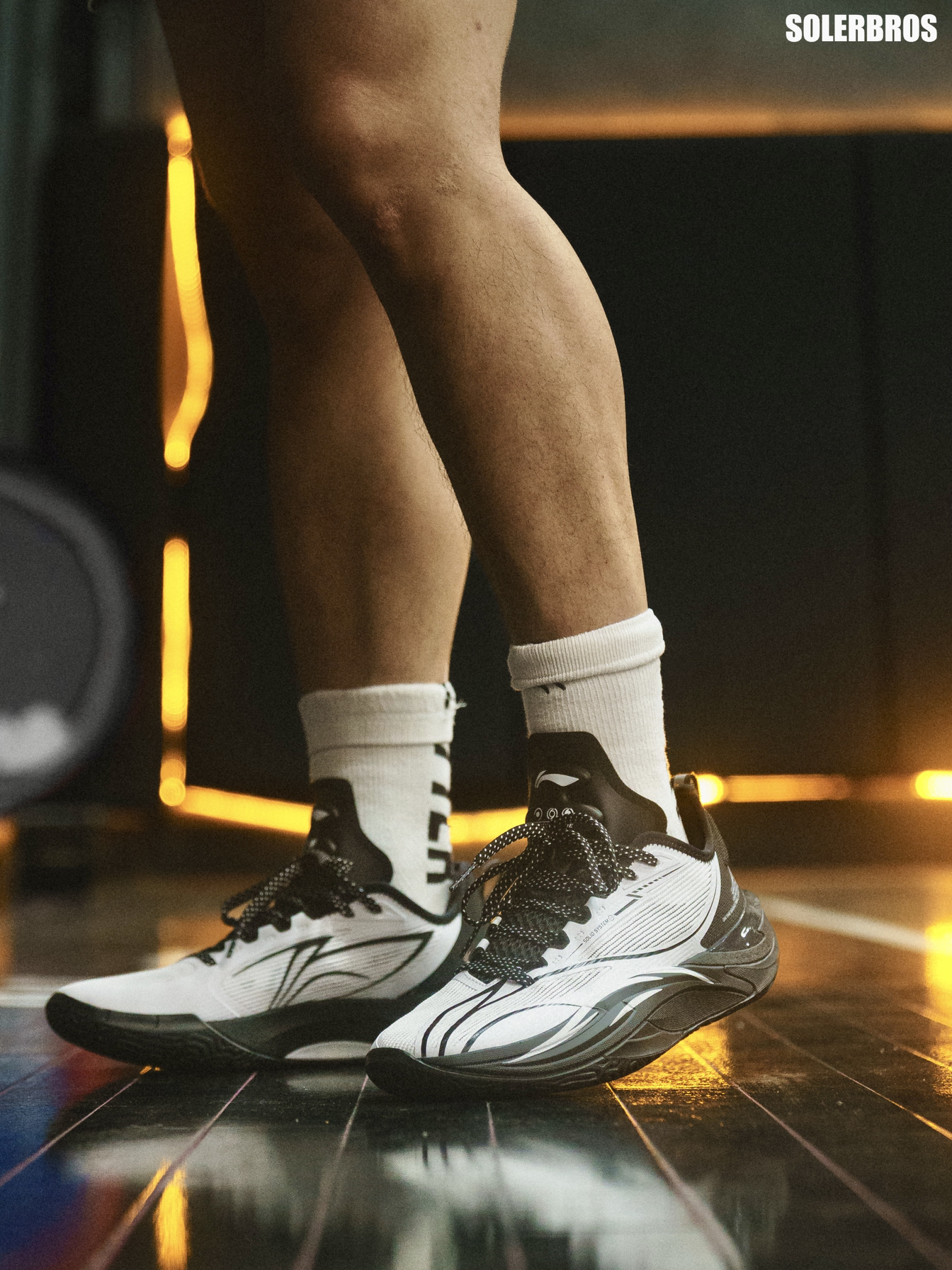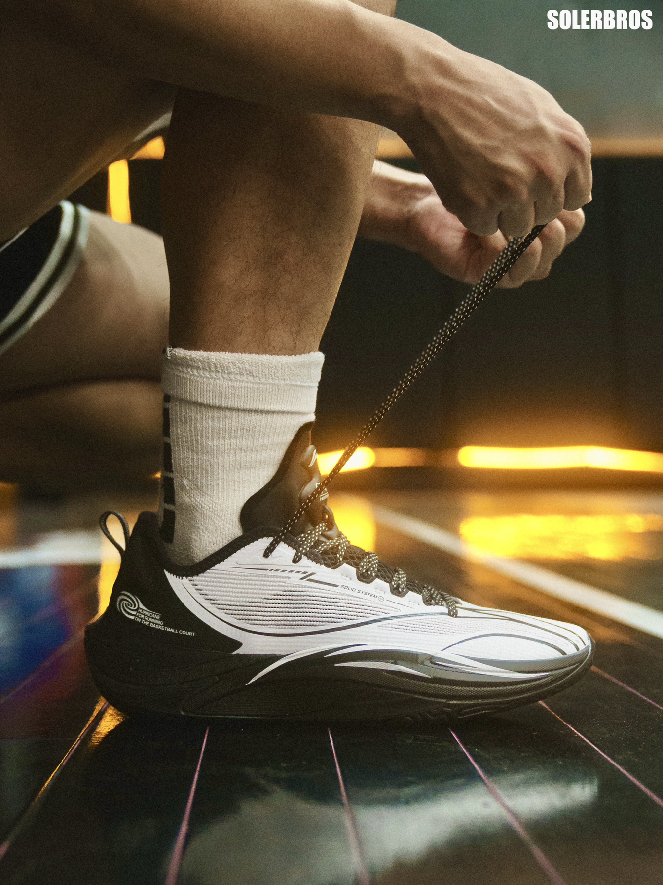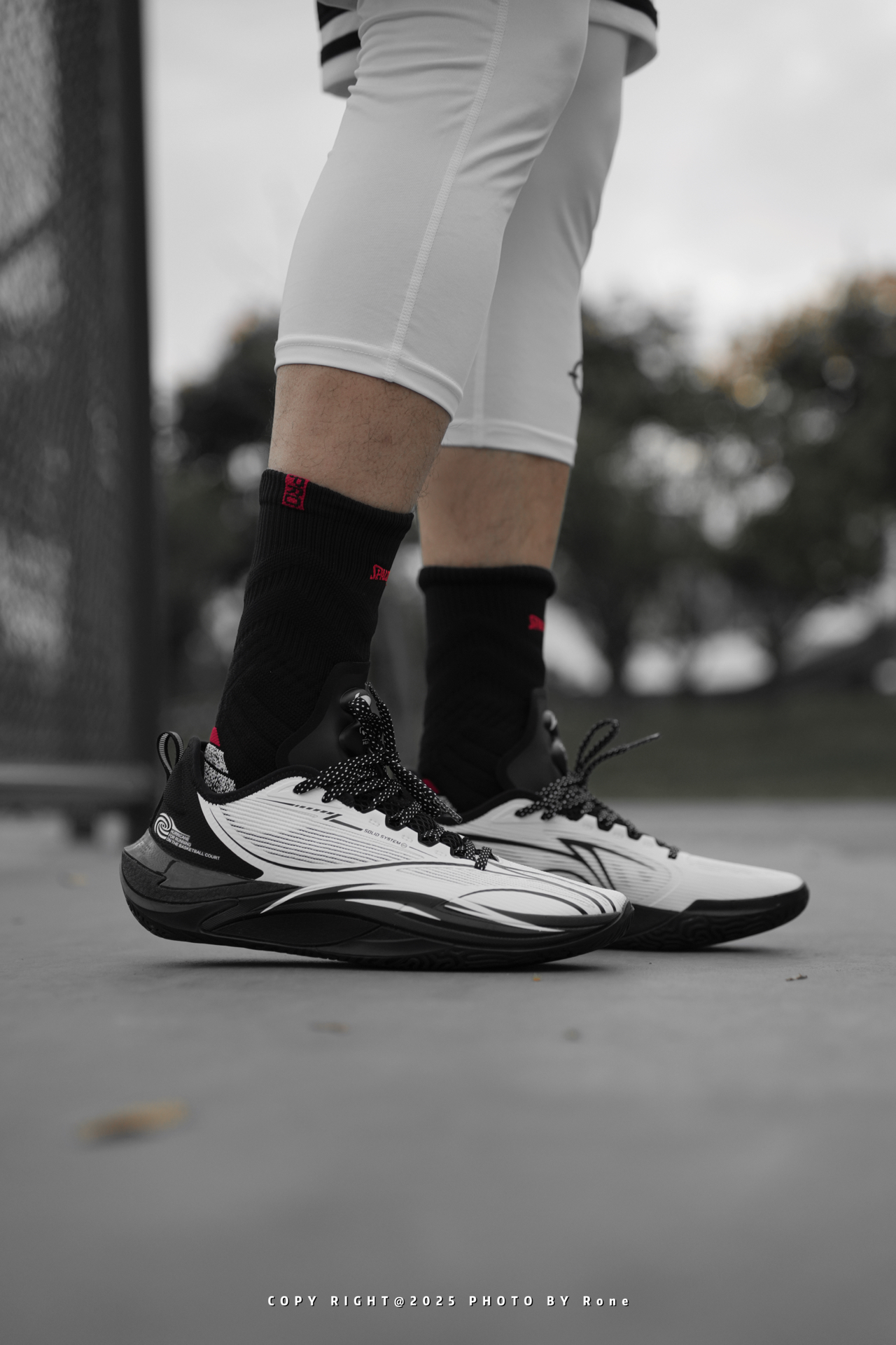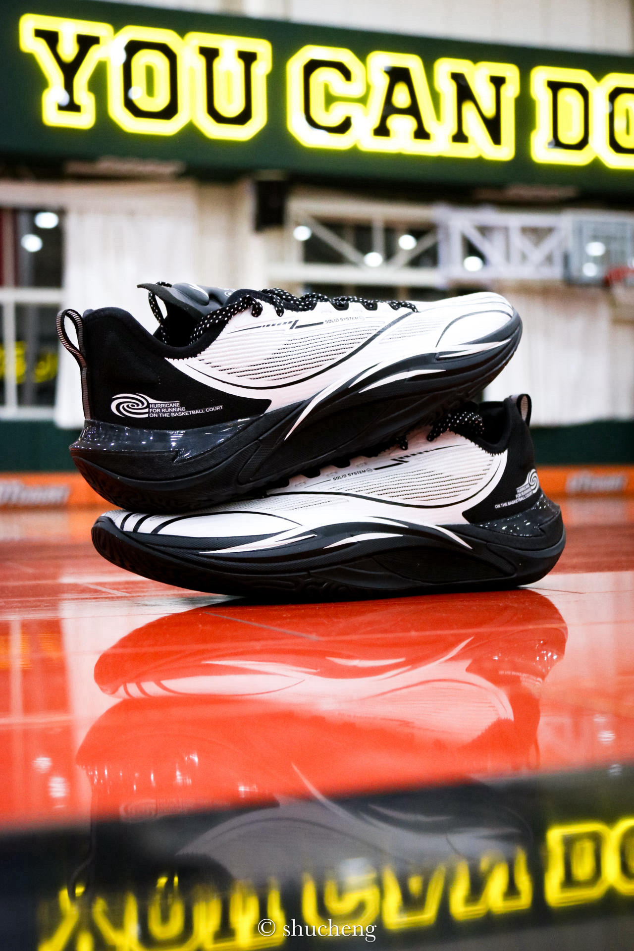 再来一组上脚照~ 这双全新的飓风-风暴眼配色上脚是真的有点东西~ 黑+白色融合的非常恰到好处,上半部分的白色是那种稍暗一点的灰白,穿上黑色长裤可能还带点正装鞋的Feel~ 搭配飓风前后起翘和修长的鞋型,上脚后速度感十足,一眼过去就是战斗预备形态! 搭配全掌䨻和前掌镂空的Pebax板材,以及明显的球形外底和低重心前掌,滚动感和灵活性都很到位~实战表现说它是球场超跑也不会太过夸张 尺码按正常李宁篮球鞋...
