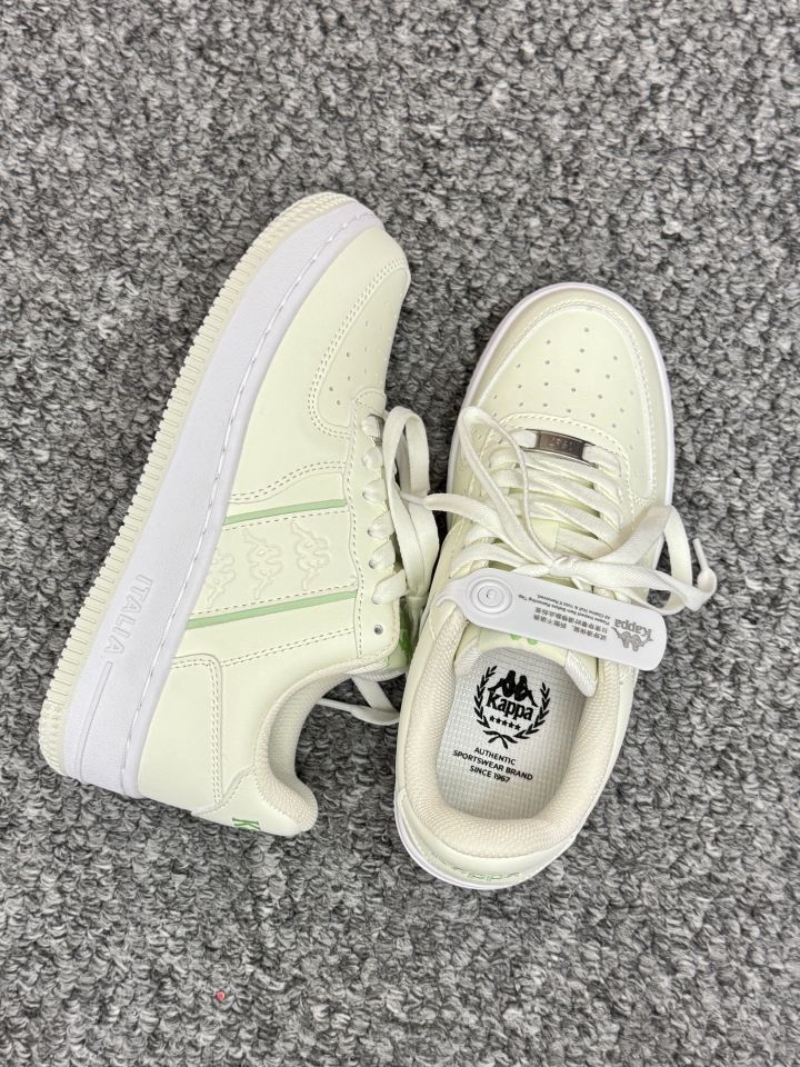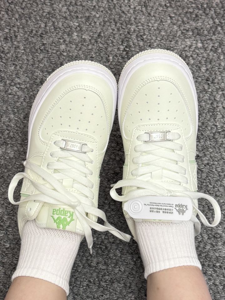 这双Kappa板鞋好有少年感 配色奶呼呼 穿上脚软软的挺轻便 夏天搭配绿色系好清爽