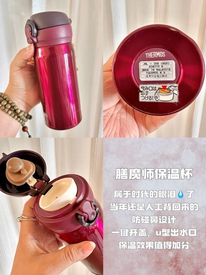 #沉浸式宅家 这两天拍照 把家里的杯子常用的杯子拿出来 哈哈哈,想简单的分享一下 1.纪念杯 老公送的第1⃣️个杯子 放在兜里揣着就走 没什么特别的保温效果 胜在意义特殊 2.膳魔师保温杯 属于时代的眼泪💧了 当年还是人工背回来的 这么多年过去了,质量杠杠的 防碰鼻设计,一键开盖,u型出水口 保温效果值得加分 3.germ山茶花保温杯 永远相信富二代朋友的审美 外出不背包只带水的时候 都会...