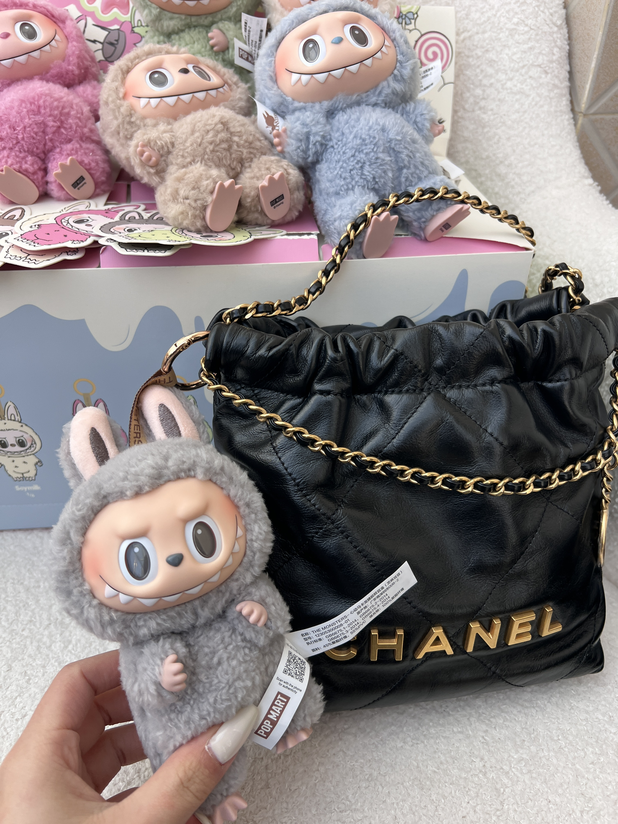 本篇笔记关联了Chanel/香奈儿 22Bag 迷你 字母徽标抽绳开合链条闪亮面小牛皮菱格纹颗粒压花穿链金币菱格皮单肩水桶包斜挎包 黑色、POP MART/泡泡玛特 LABUBU THE MONSTERS 心动马卡龙系列 一代 搪胶脸 盲盒 太妃糖糖、POP MART/泡泡玛特 LABUBU THE MONSTERS 心动马卡龙系列 一代 搪胶脸 盲盒 芝麻豆豆等商品,为用户提供真实的使用体验和购买参考。