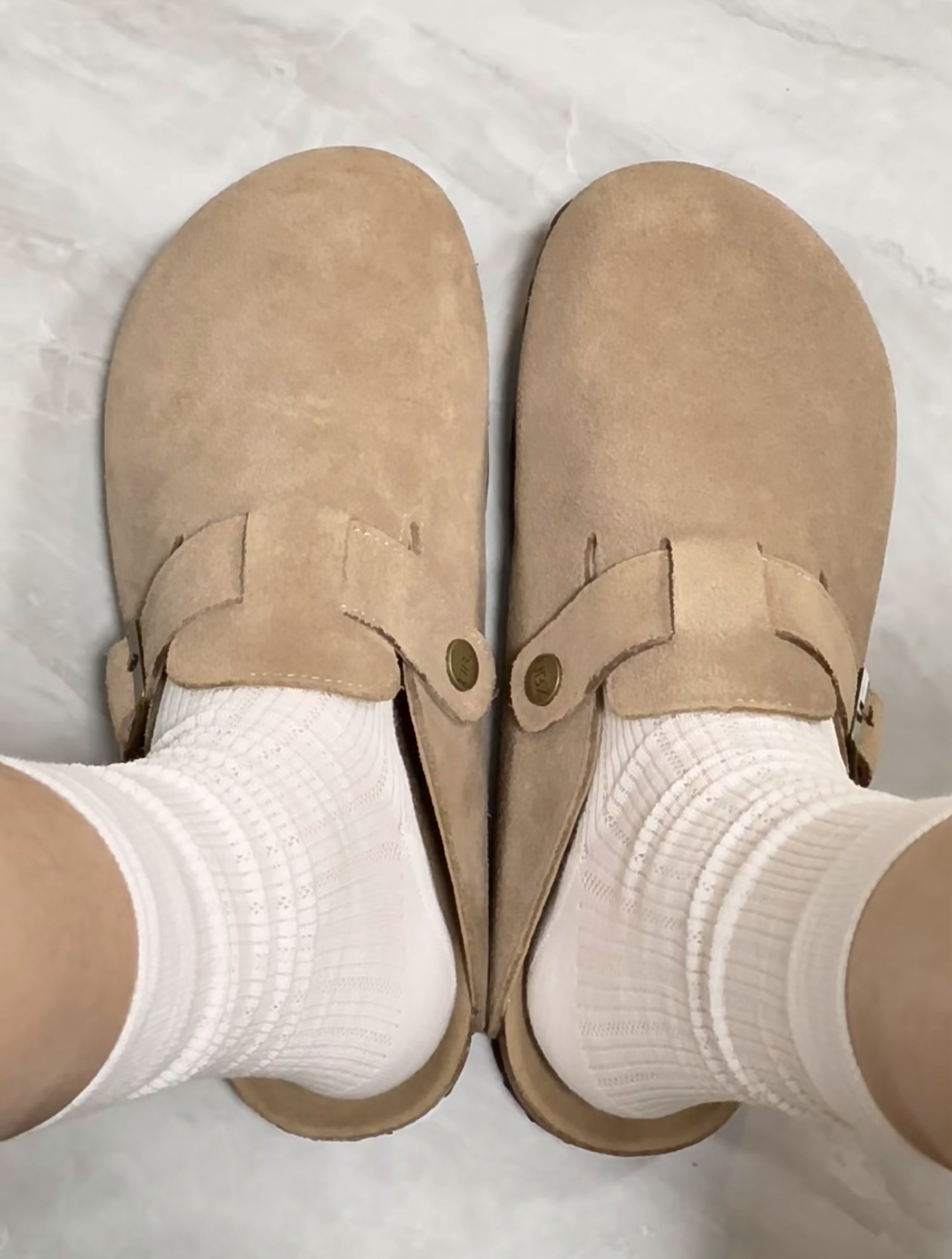 😭之前买过好几次/不是鞋底硬就是鞋型不好 这双满足了我这两点需求👍 穿上尊嘟不想脱下了/嘎嘎百搭~ 出门也敲方便/直接一蹬就ok 鞋面反绒牛皮材质/软乎乎的质感奈斯 阿我真的好喜欢~爱上勃肯鞋只需一秒😍