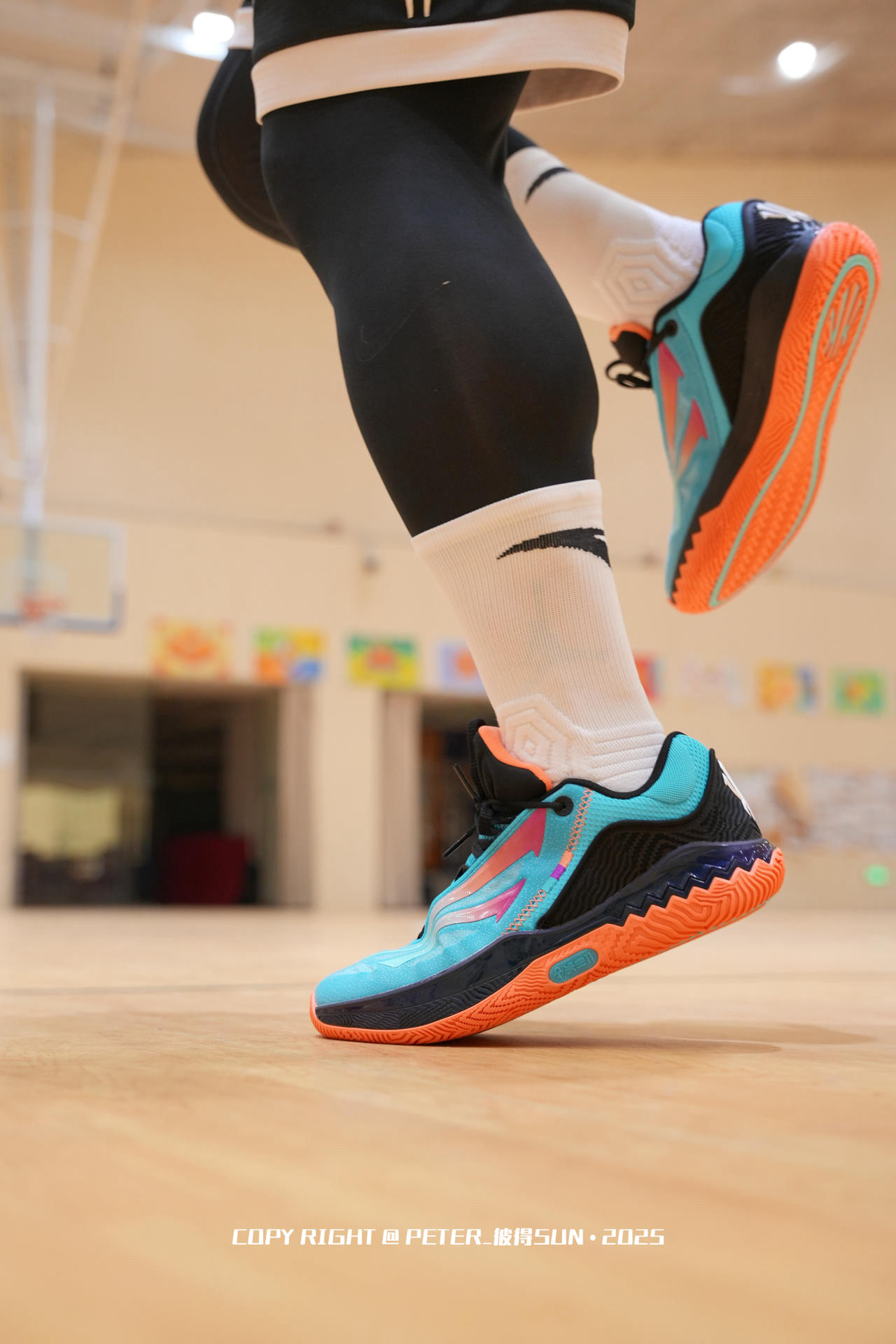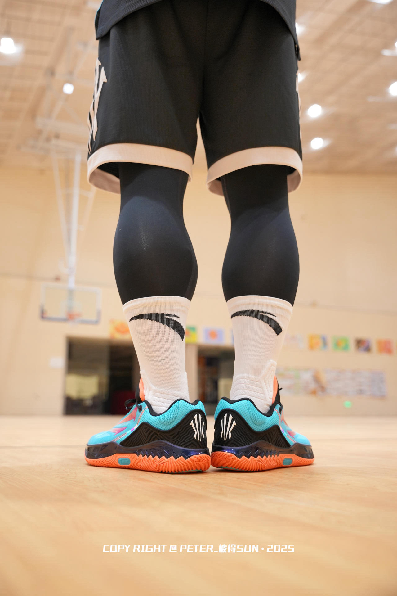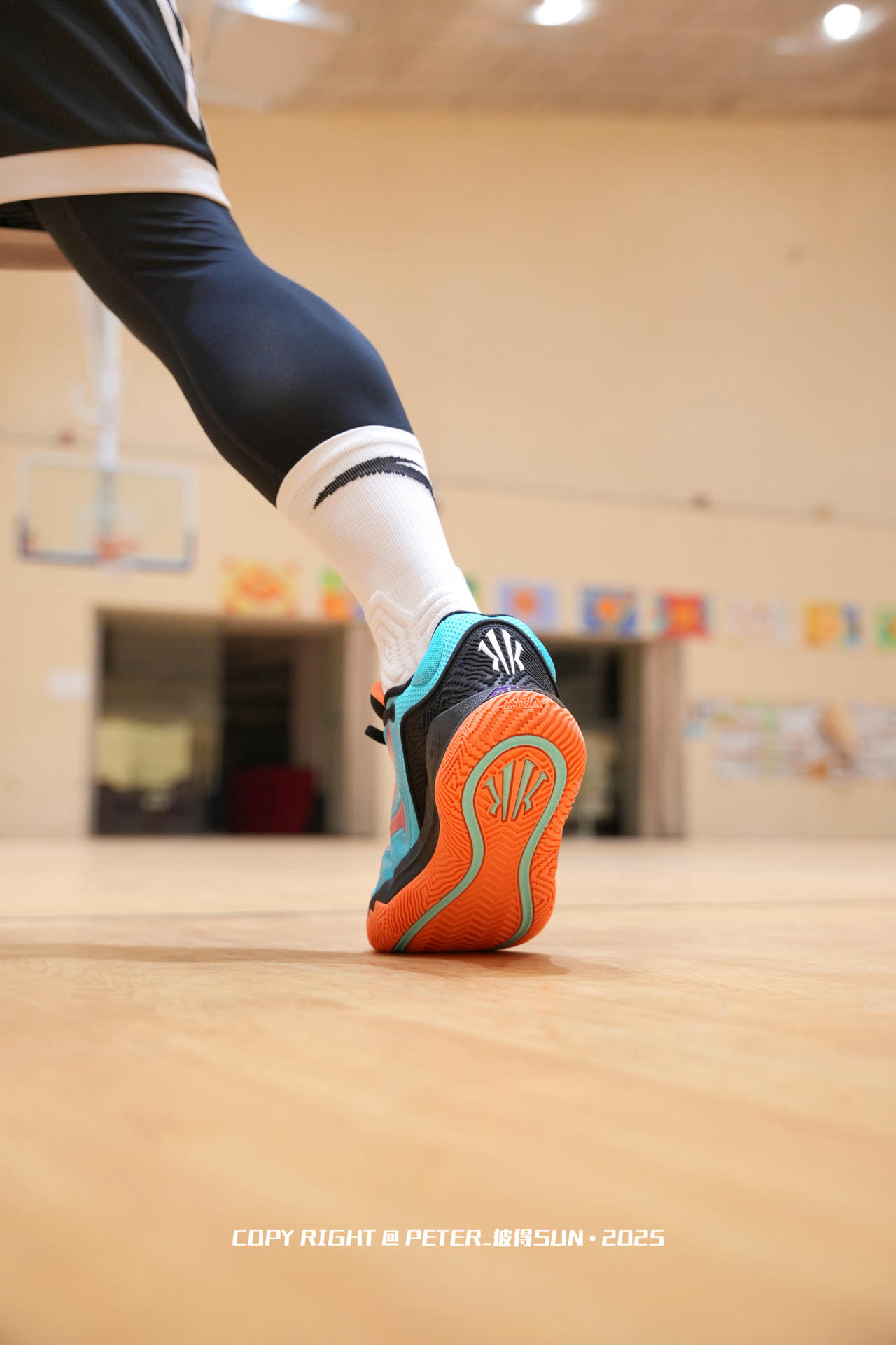 先驱 二 刚出来的时候确实让我眼前一亮,超大的欧文之盾直接覆盖在鞋面。让我一度认为这是欧文正代。 首发的白紫配色对比度很强。今天上脚的晨曦配色我倒是觉得最符合欧文个人特色,这个湖蓝搭配橘色很有印第安部落的风格,而且辨识度也很高。 先驱2是采用了A Shock Pro的中底,原本以为是减配,意外的发现这个材质的韧弹感还是挺不错的。而且后掌的缓震也够用。重心中规中矩,比较适合投射型的打法。 尺码按正常...